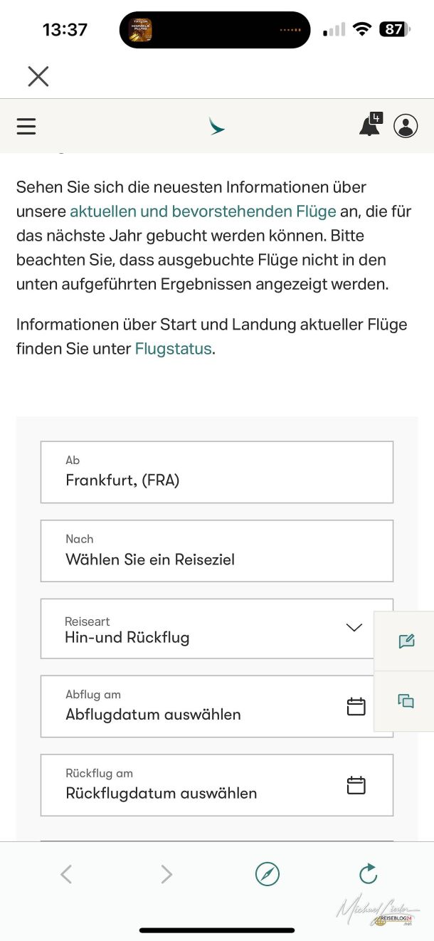 Positiv: Auch Upgrades lassen sich direkt buchen, Meilen verwalten und das Unterhaltungsangebot vorab durchstöbern – Bordkino zum Vormerken.