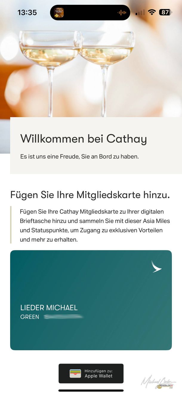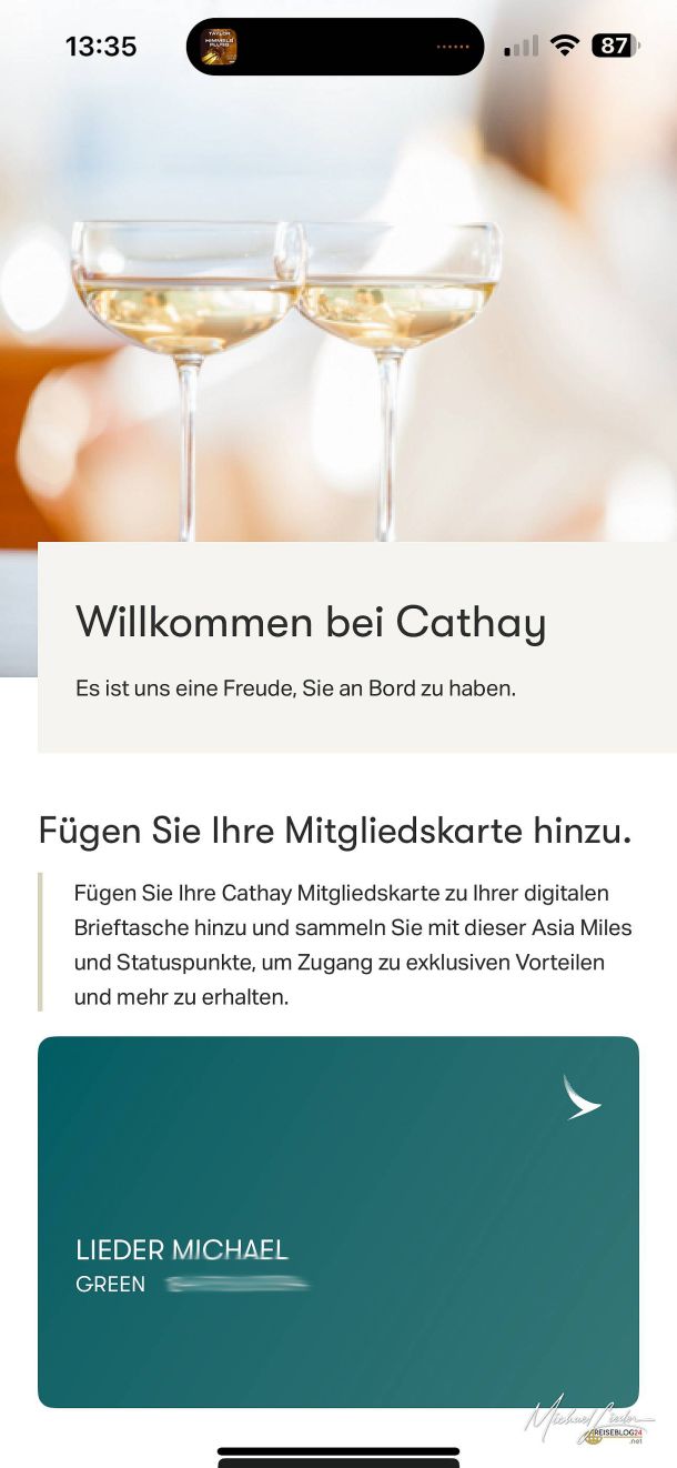 Der Flug beginnt bei Cathay schon vor dem Abheben