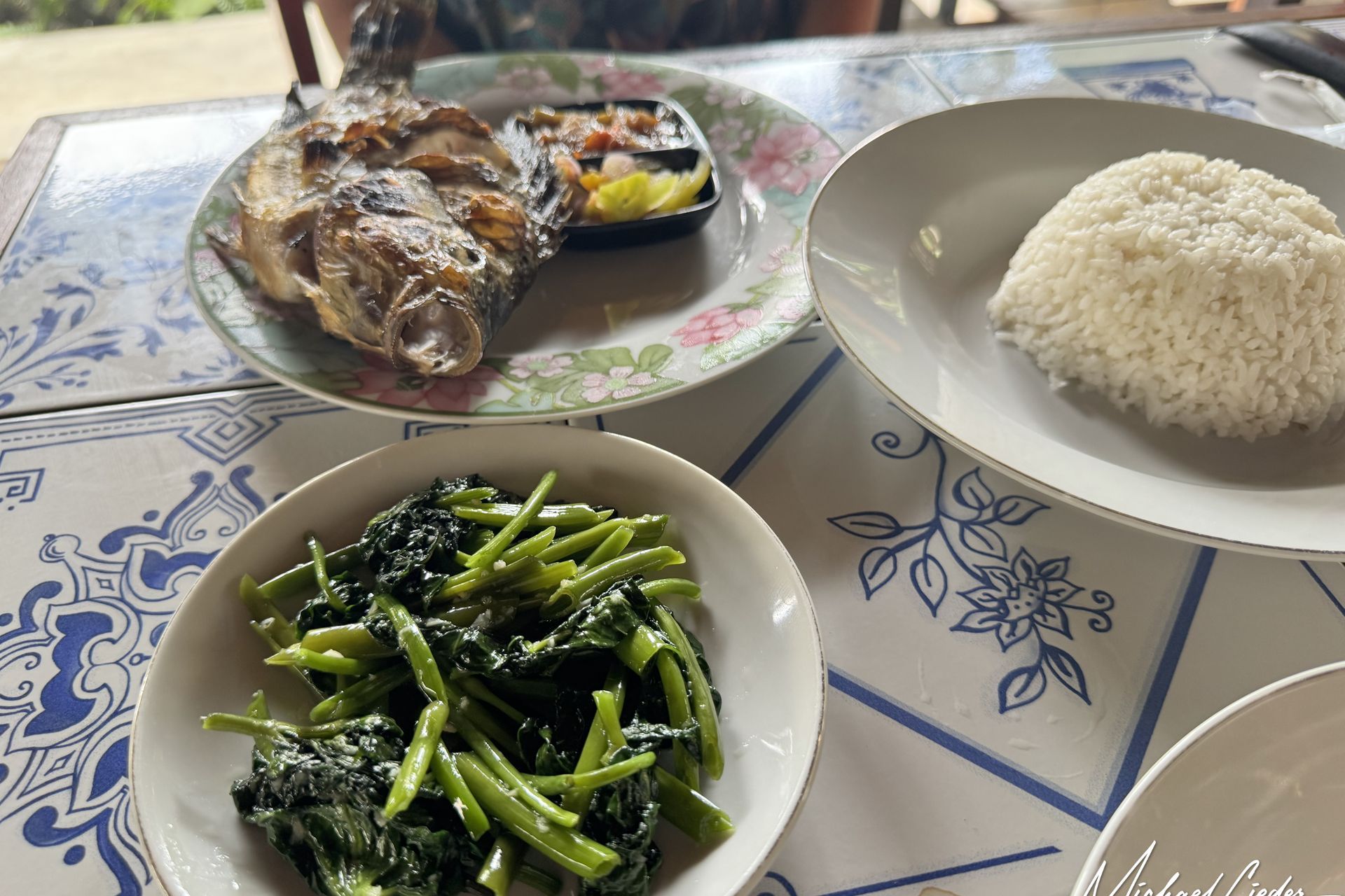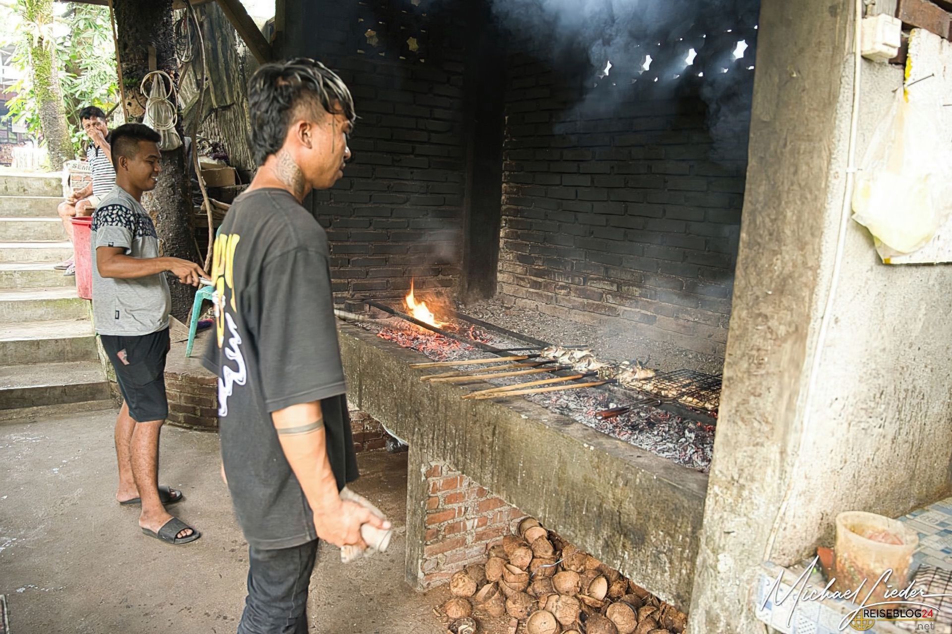 Kulinarisch spielt hier ganz klar frischer Fisch die Hauptrolle. Kein ChiChi, kein Showkochen – sondern ehrliche Küche. Der Fisch kommt frisch auf den Grill und schmeckt genau so, wie man es sich nach einem langen Reisetag wünscht: saftig, aromatisch, auf den Punkt. Wer neugierig ist, wirft einen Blick um die Ecke und kann der Küchen- und Grillcrew bei der Arbeit zusehen. Kein Geheimnis, kein Verstecken. Transparenz auf indonesisch – sehr sympathisch.