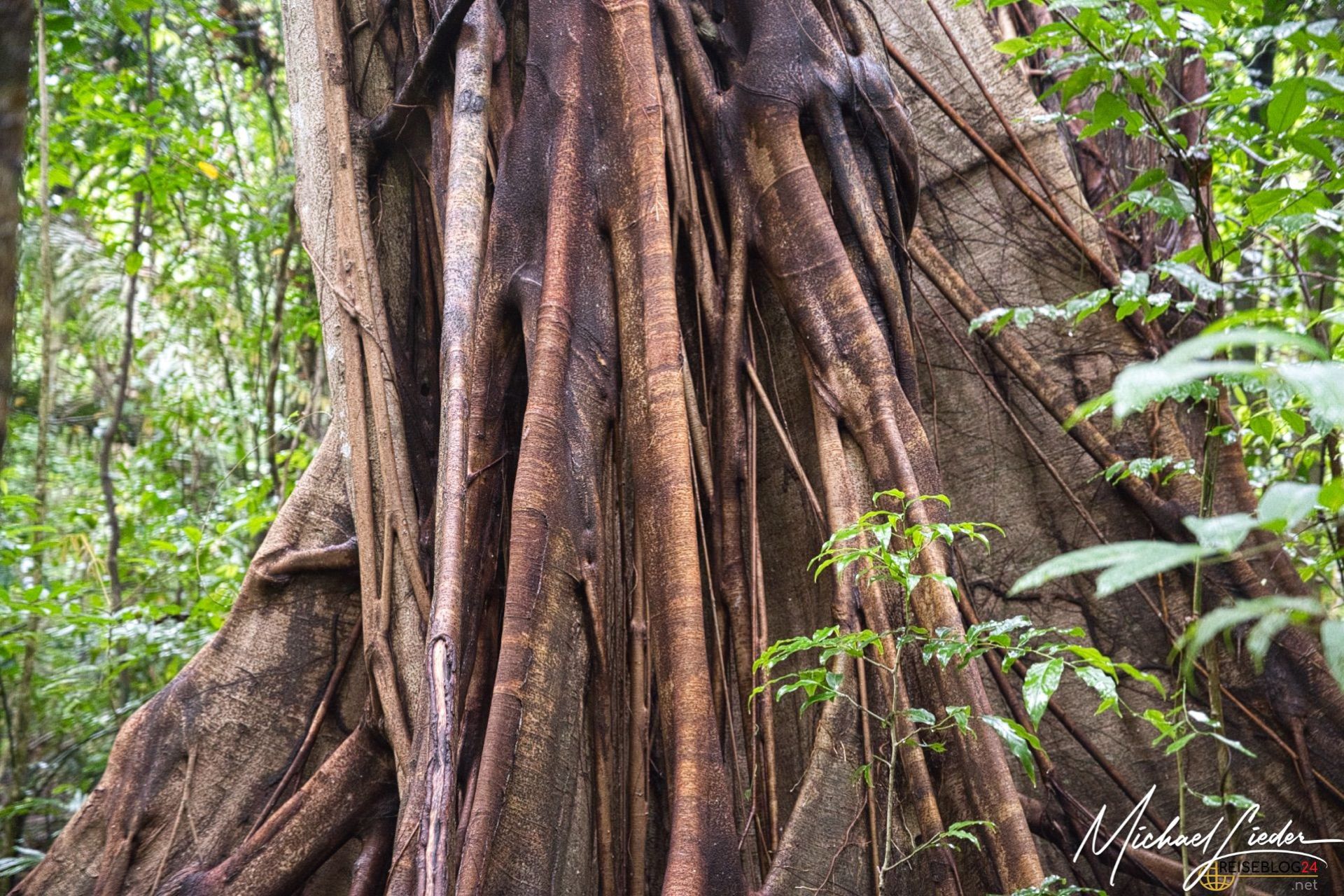 Riesige Urwaldbäume, dichte Farne und verschlungene Lianen machen den Park zu einem echten Regenwaldabenteuer. Besonders beeindruckend sind die gigantischen Banyan-Bäume, deren Wurzeln wie natürliche Skulpturen aussehen.