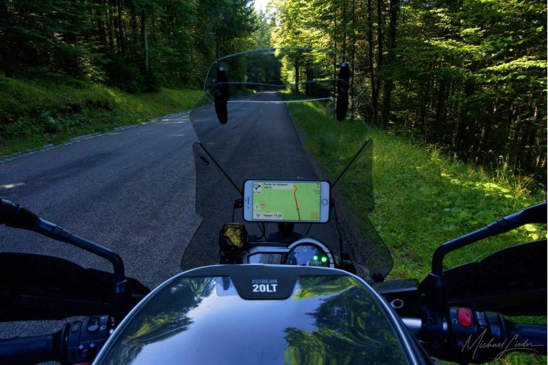 Da habe ich es doch einfacher, mit meinem Tiger merke ich doch schnell, dass der Pass weder besonders lang noch schwierig zu fahren ist. Wir Motorradfahrer haben auf der kurvenreichen Strecke dennoch Spaß: Es ist kurvig auf das auf weniger als mittelmäßigem Straßenbelag. Ein Halt lohnt sich am Scheitel an der Auberge de la Fourmi. Neben lukullischen Stärkungen beeindrucken vorwiegend die traumhaften Aussichten auf die Ausläufer des Elsass und des südlich davon liegenden Burgunds. Wer danach noch Lust auf weitere Kurven hat, nutzt den Col du Hundsruck als Verbindungspass zu dem nordwestlich gelegenen Ballon d Alsace mit der Routes des Crêtes und dem Grand Ballon.