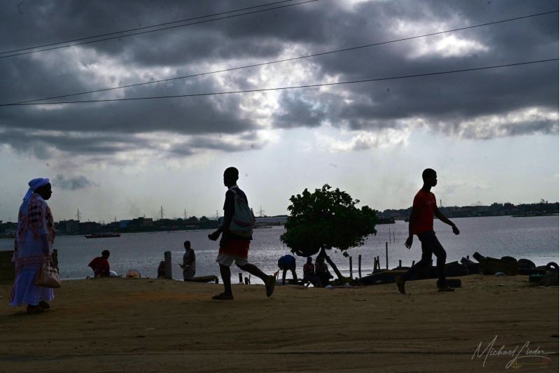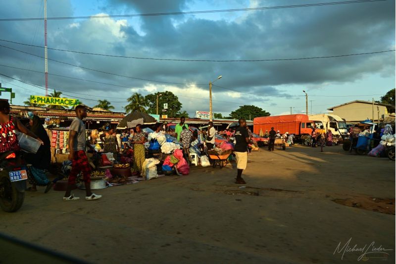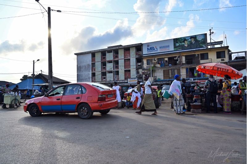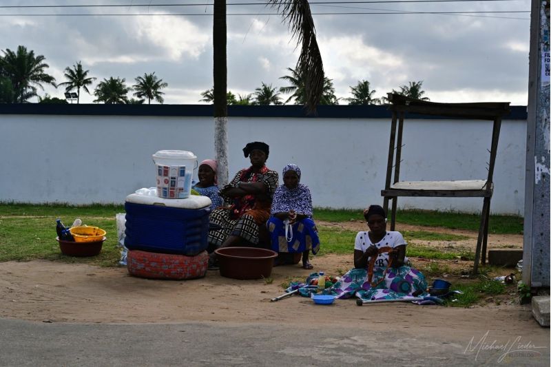 Wir haben Glück – unser Weg führt uns gegen den Strom, hinaus zum Meer, hinaus nach Bassam. Während wir an den aufgewühlten Straßenzügen vorbeiziehen, bleibt der Blick dennoch haften: auf den Marktständen, an denen der Tag beginnt, auf den ersten Kindern, die zur Schule gehen, auf den Gesichtern, die so viel erzählen. Zwischen Chaos und Entschlossenheit, zwischen Last und Lebenswillen entfaltet sich das wahre Gesicht Abidjans – roh, kraftvoll und voller Geschichten, die darauf warten, gehört zu werden.