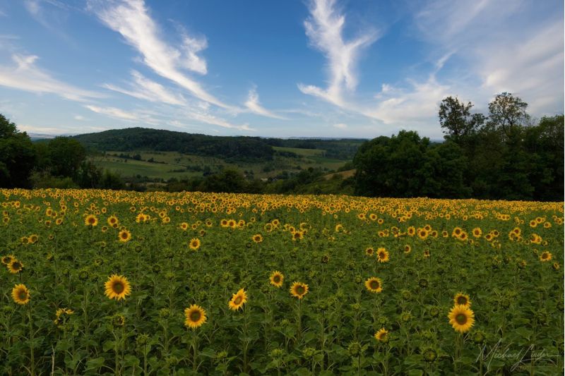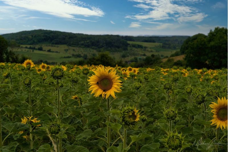 Ich versuche dem industriellen Treiben zu entfliehen und weiter geht es auf der Route. In den Ortsschildern kommt jetzt wieder häufiger der Zusatz sur-Moselle, der bedeutet, dass die betreffende Ortschaft in Fussnähe liegt. Dennoch verliere ich die Moselle (Mosel) immer wieder aus den Augen, die Straßen entfernen sich von ihr, Häuser und Industrieanlagen versperren die Sicht. Später ist sie weg. Doch kurz nach Nancy macht la Moselle einen Bogen nach Westen und umfließt die Stadt weitläufig. Hier komme ich wieder auf Tuchfühlung an sie ran. Und vor Toul zeigt sie so zu sagen als Entschädigung ihr Allerheiligstes: die Mosel Riviera bei Liverdun – ihren einzigen kleinen Sandstrand. Ich schätze ihn auf sieben Meter Länge oder so ähnlich. Ich sehe mir die mittelalterliche Stadt Liverdun mit den markanten Häusern, Stadtmauer und Türmen oberhalb des Flusses genauer an. Eine kleine Pause in einem der Cafés und weiter geht es unter dichten Blätterdach und ich kann die Moselromantik noch und nöcher mitnehmen. Graureiher stehen reglos wie Statuen im Wasser, Fische springen zum Fliegenfang aus dem Wasser. Toul liegt noch auf dem Weg, wenn man mag und ist eine einzige Festung aus dem 17. Jahrhundert, umgeben von meterdicken Wehrmauern und tiefen Gräben. In den alten Gassen des Städtchens wird der letzte Südfrankreich-Urlaub wieder gegenwärtig. Überall blüht es, die Wäsche hängt auf den Balkonen, und es riecht förmlich nach Sommer. Die Getreideernte auf den großen Feldern links und rechts der Straße ist im vollen Gange und viele Sonnenblumen drehen wie Soldaten im Gleichschritt ihre Köpfe in Richtung unseres zentralen Sterns. Heute hat sich der Licht- und Wärmespender allerdings oft hinter Wolken versteckt, aber es bleibt trocken.