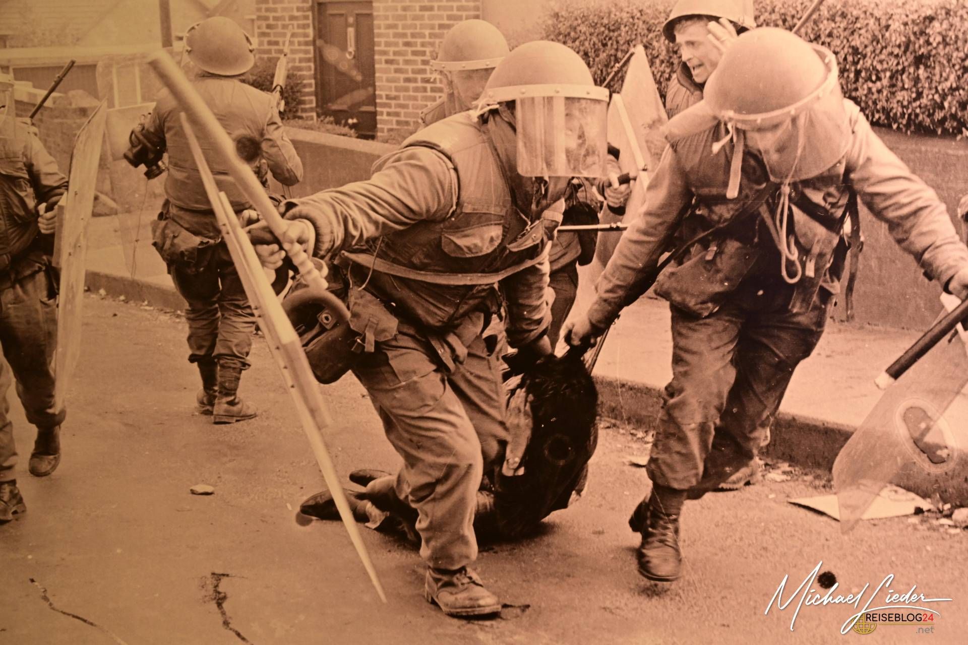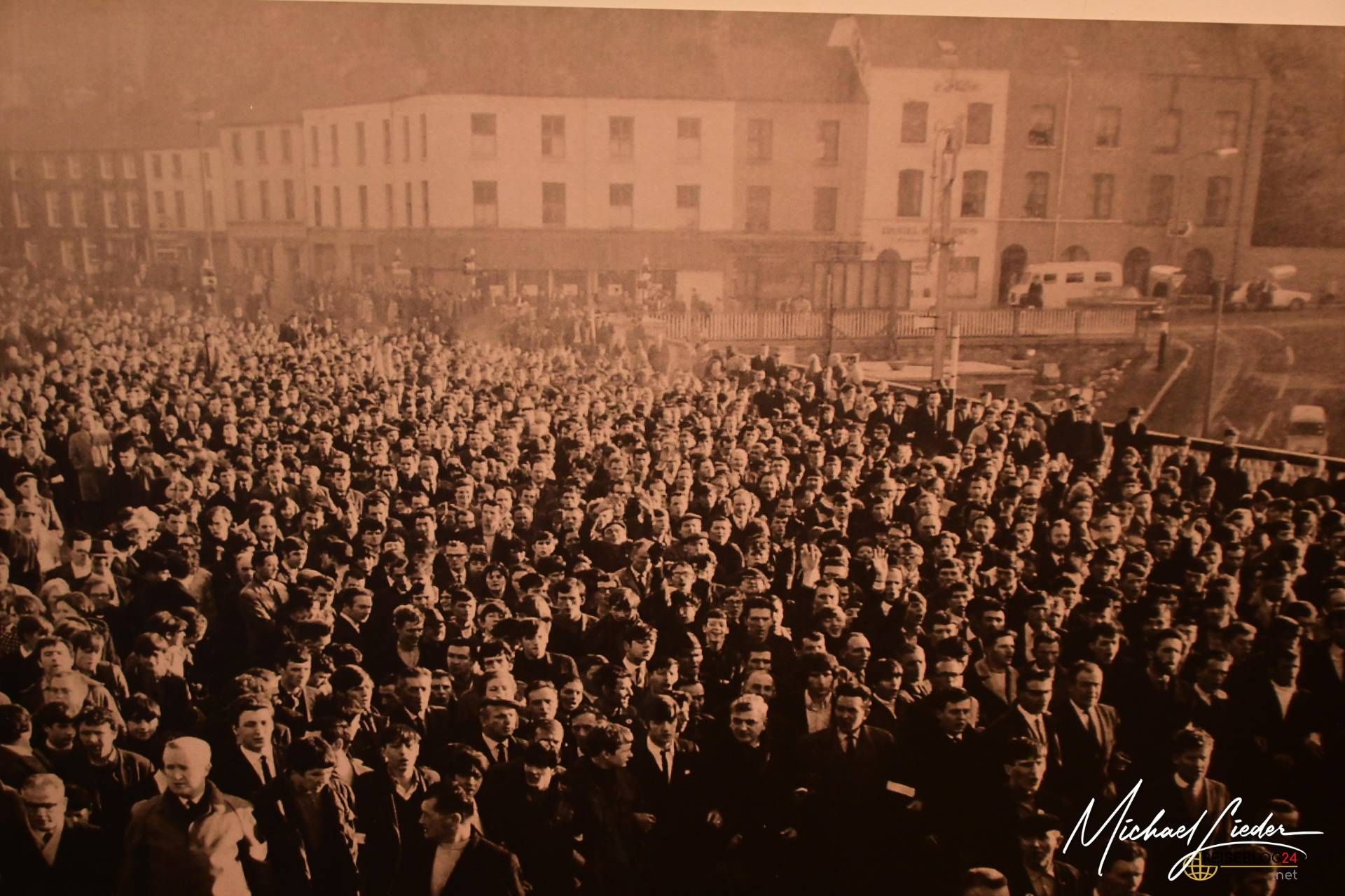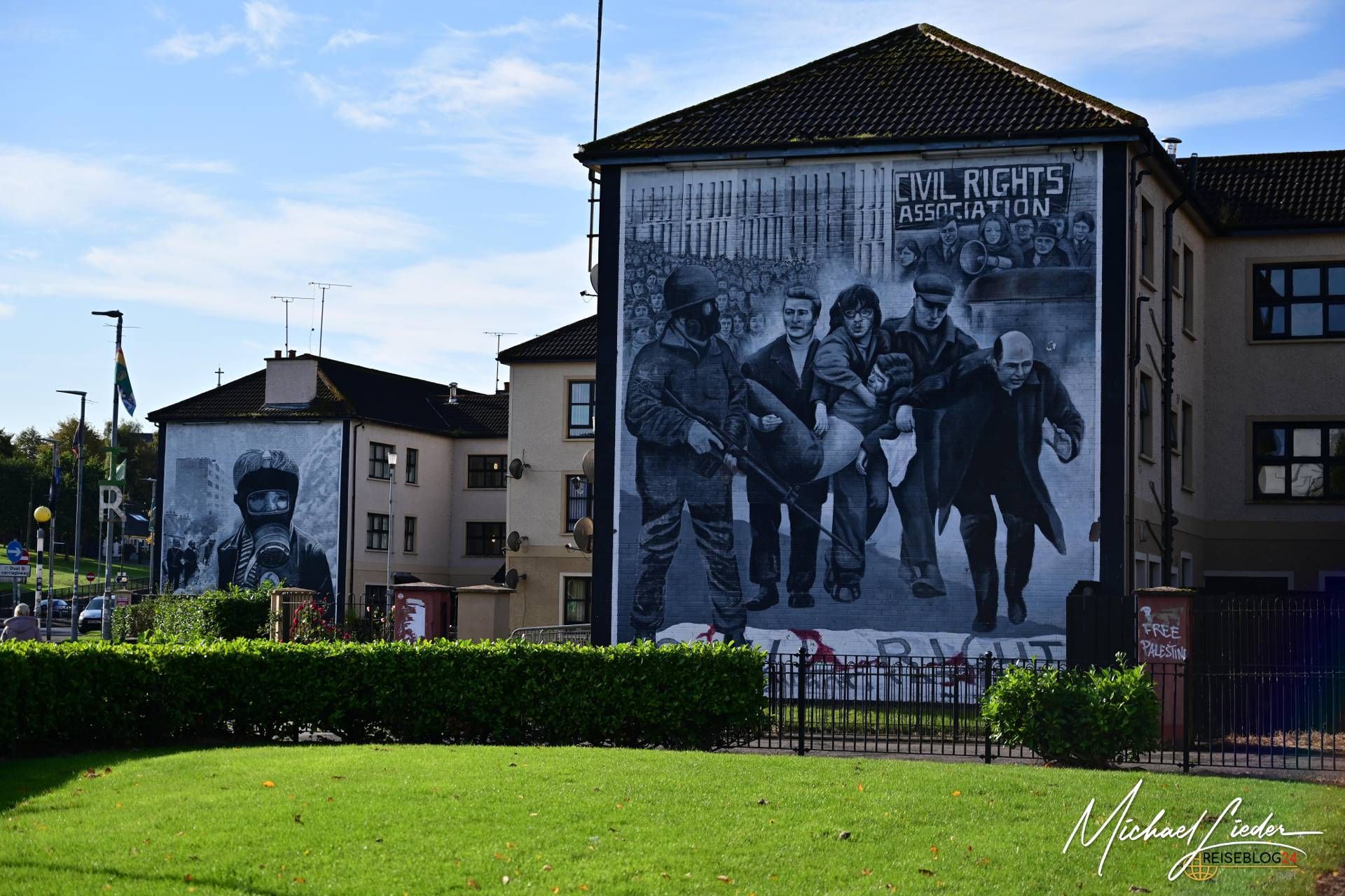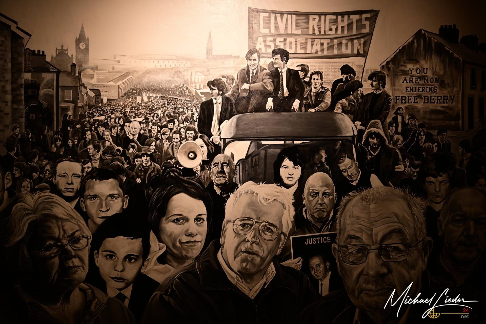 Am 30. Januar 1972 kam es in Derry zu einem der tragischsten Ereignisse in der Geschichte Nordirlands: dem Bloody Sunday. An diesem Tag veranstaltete die Bürgerrechtsbewegung einen friedlichen Protestmarsch gegen Internierungen ohne Gerichtsverfahren. Diese willkürlichen Inhaftierungen, die vor allem gegen katholische Nationalisten gerichtet waren, hatten in der Bevölkerung großen Unmut ausgelöst. Der Protestmarsch sollte friedlich bleiben und verlief durch das Bogside-Viertel, einem Viertel mit starker katholischer Bevölkerung, das heute noch für seine politischen Wandmalereien bekannt ist.