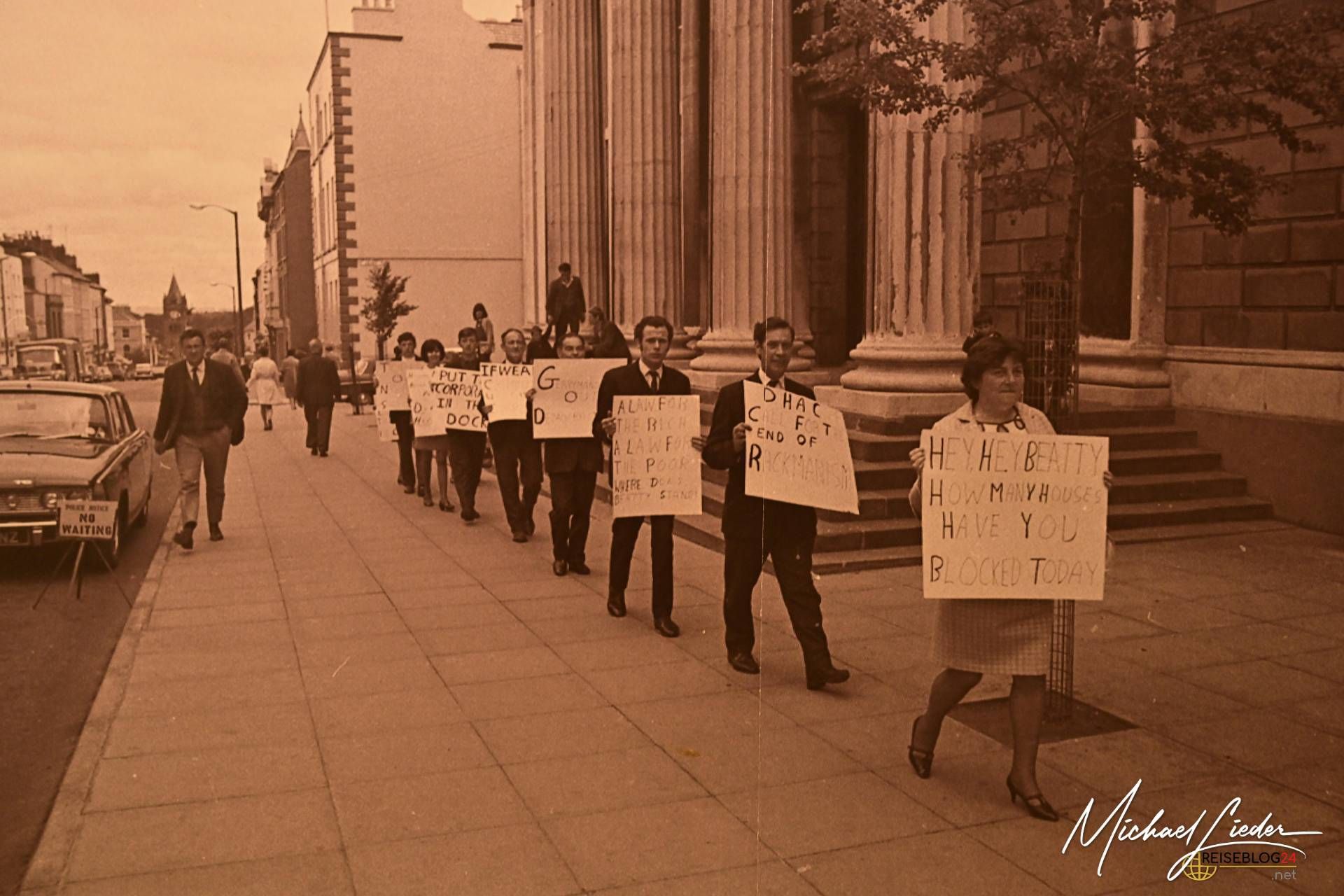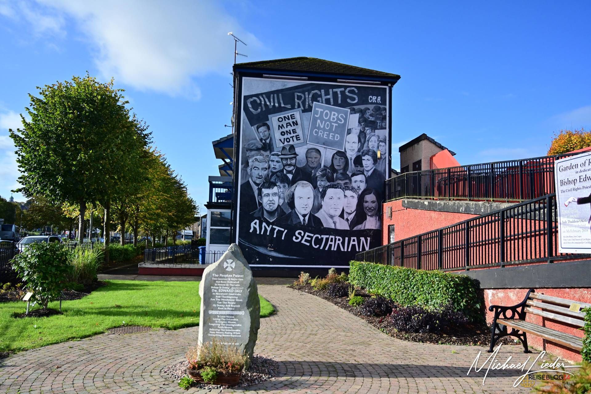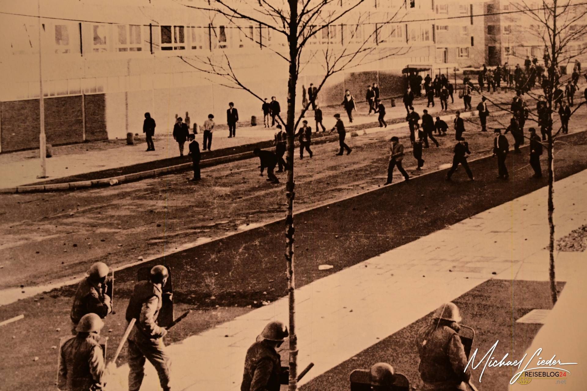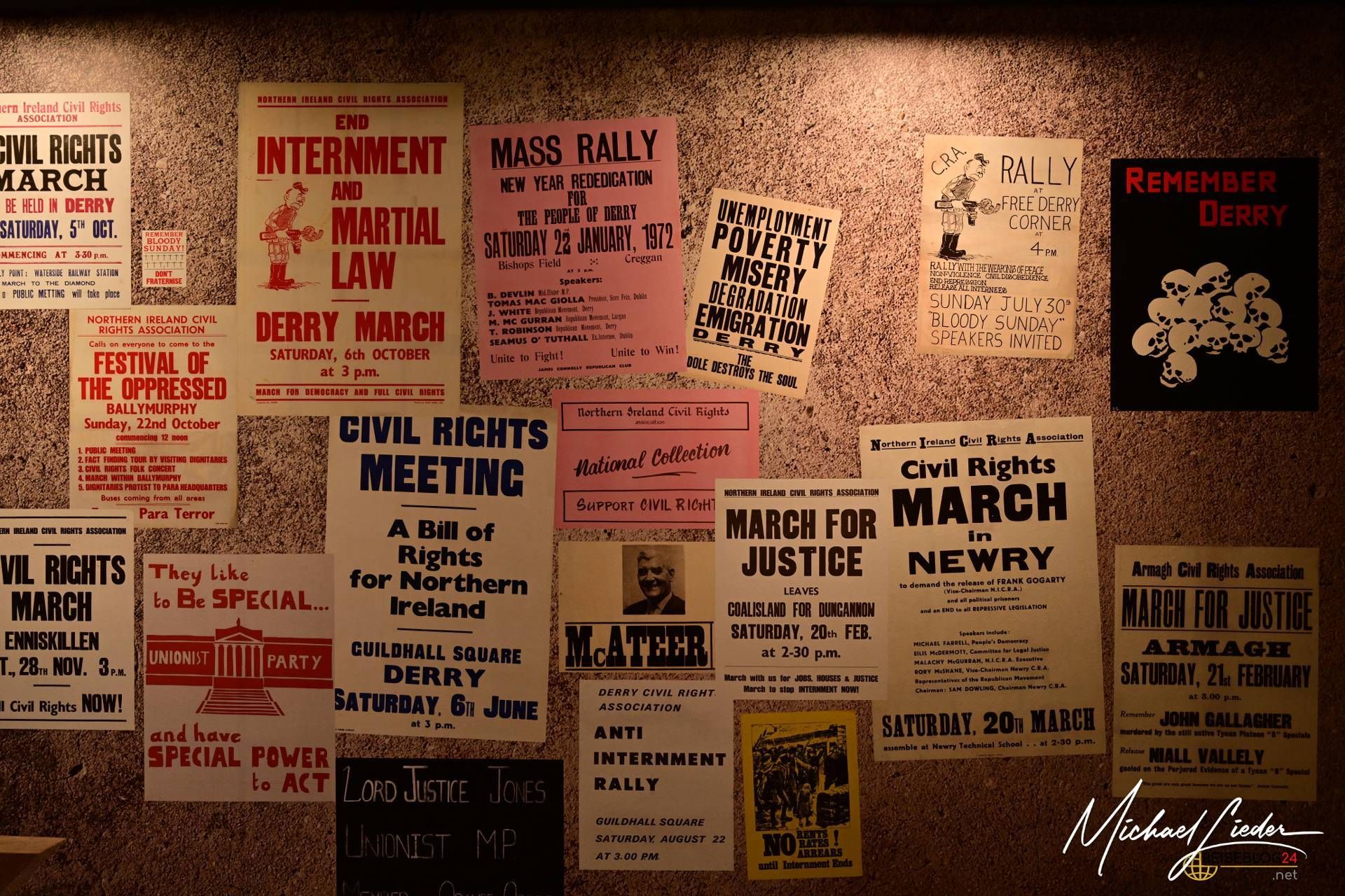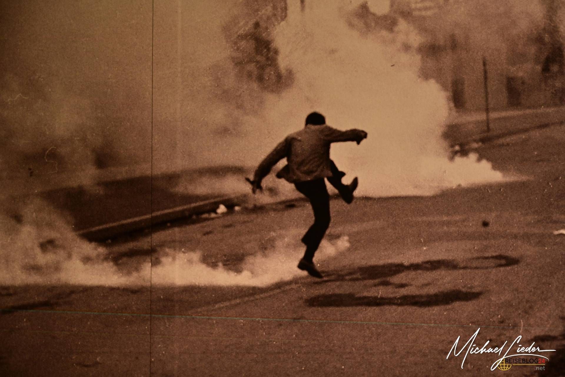 Am 30. Januar 1972 kam es in Derry zu einem der tragischsten Ereignisse in der Geschichte Nordirlands: dem Bloody Sunday. An diesem Tag veranstaltete die Bürgerrechtsbewegung einen friedlichen Protestmarsch gegen Internierungen ohne Gerichtsverfahren. Diese willkürlichen Inhaftierungen, die vor allem gegen katholische Nationalisten gerichtet waren, hatten in der Bevölkerung großen Unmut ausgelöst. Der Protestmarsch sollte friedlich bleiben und verlief durch das Bogside-Viertel, einem Viertel mit starker katholischer Bevölkerung, das heute noch für seine politischen Wandmalereien bekannt ist.