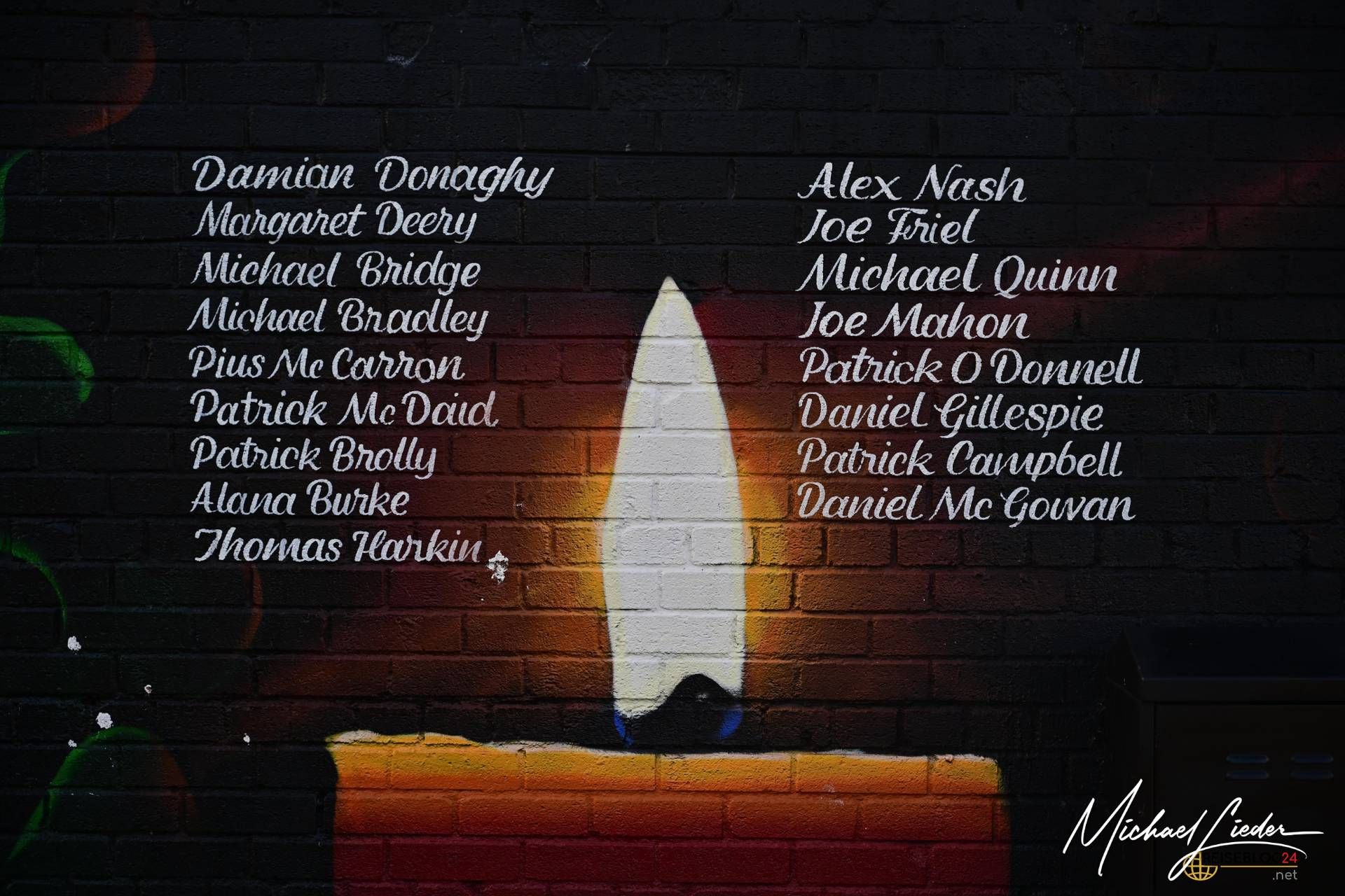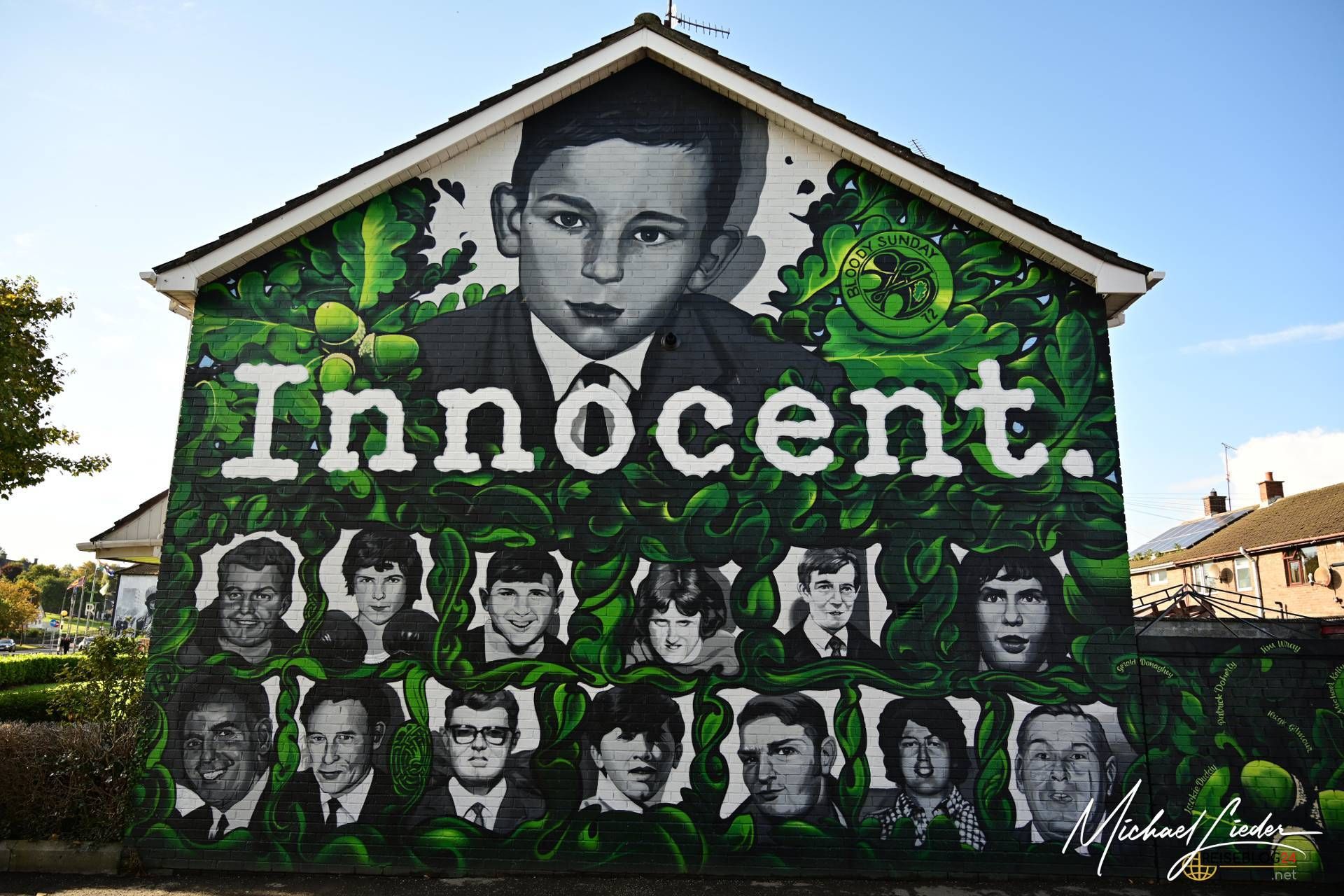 Heute ist Bloody Sunday ein wichtiger Teil der Erinnerungskultur in Derry, und die Stadt hat sich zu einem Ort des Gedenkens und des Friedens entwickelt. Im Bogside-Viertel erinnern Murals an die Opfer des Bloody Sunday und die Kämpfe der Bürgerrechtsbewegung. Besonders eindrucksvoll ist das Wandgemälde “The Bloody Sunday Mural” der Bogside Artists, das den getöteten Zivilisten gedenkt und die Erinnerung an die blutige Geschichte wachhält.
