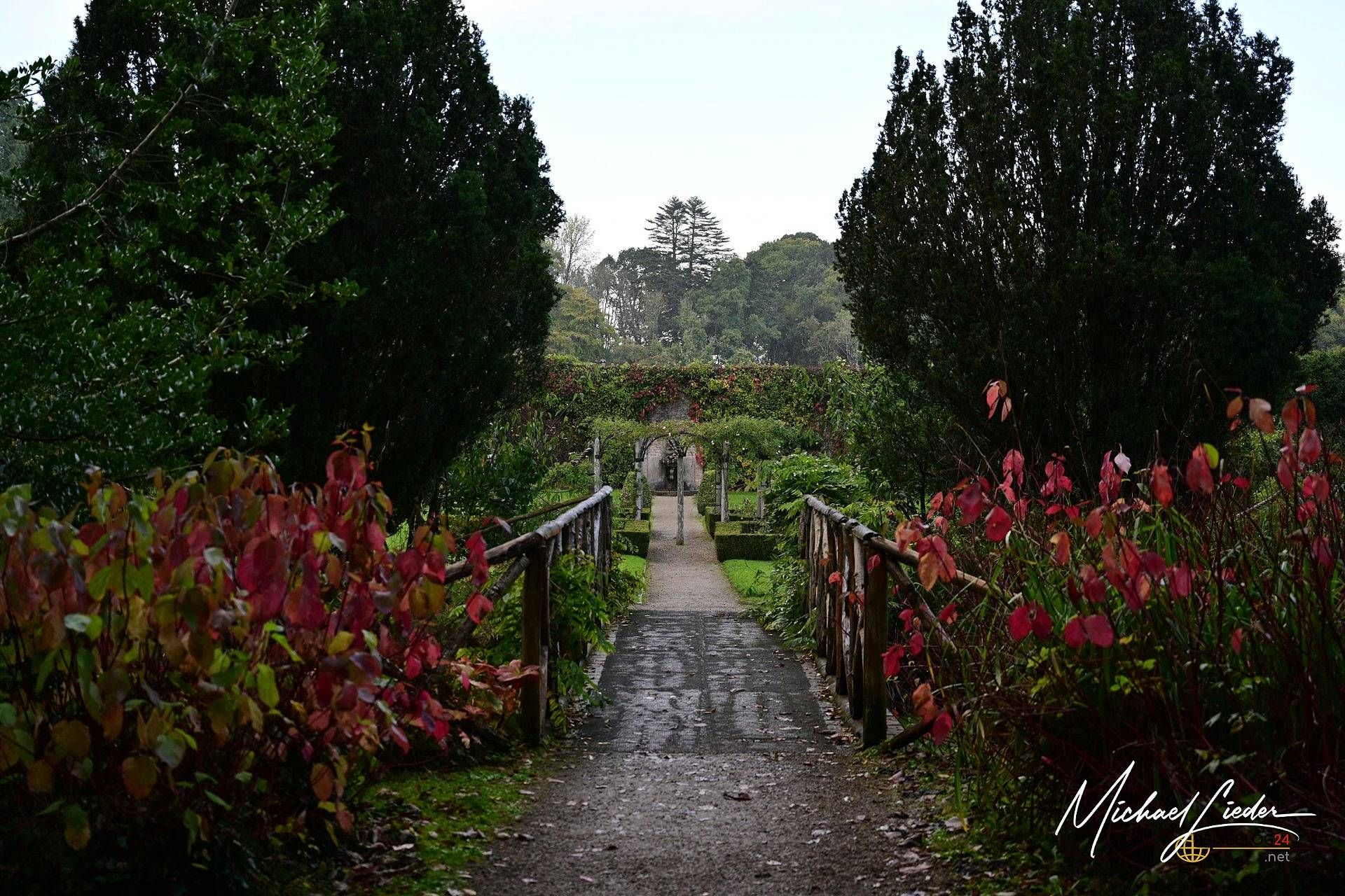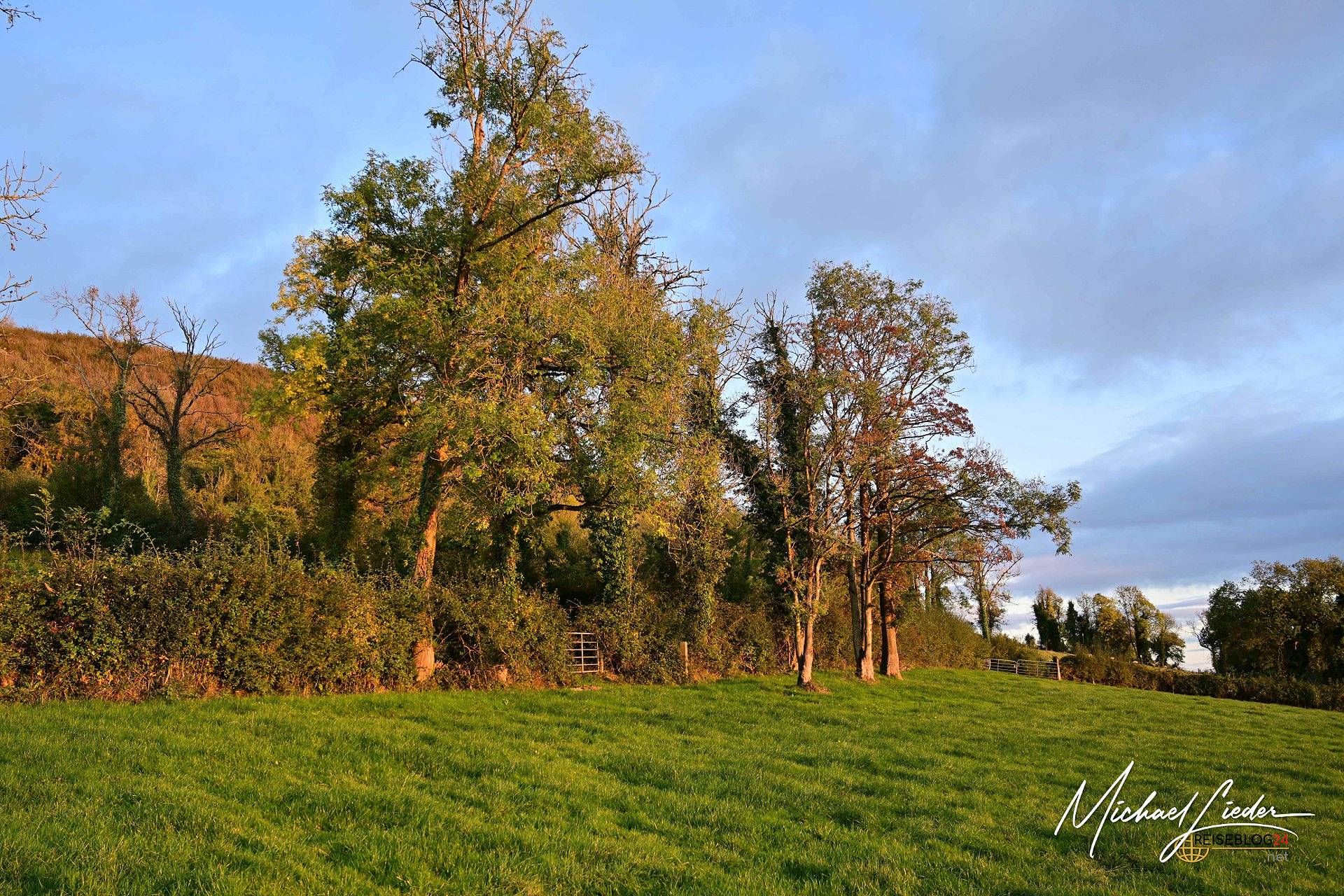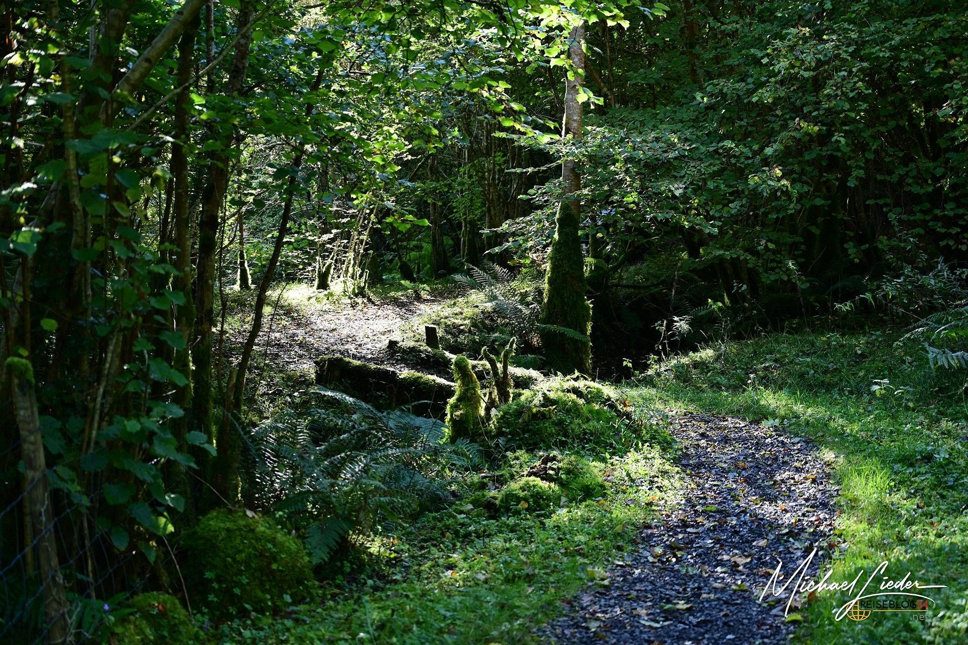Besonders hängen geblieben ist mir der Yew Tree Walk. Der Weg führt an einer der ältesten Eiben Irlands vorbei, über 250 Jahre alt, knorrig, still, ein bisschen mystisch. Man läuft vorbei und denkt unweigerlich: Diese Eibe hat mehr gesehen als wir alle zusammen. Der Pfad schlängelt sich weiter durch Wiesen und kleine Waldstücke, vorbei an Bächen und feuchtem Moos – nach einem Regenschauer ein echtes Fest für die Sinne.