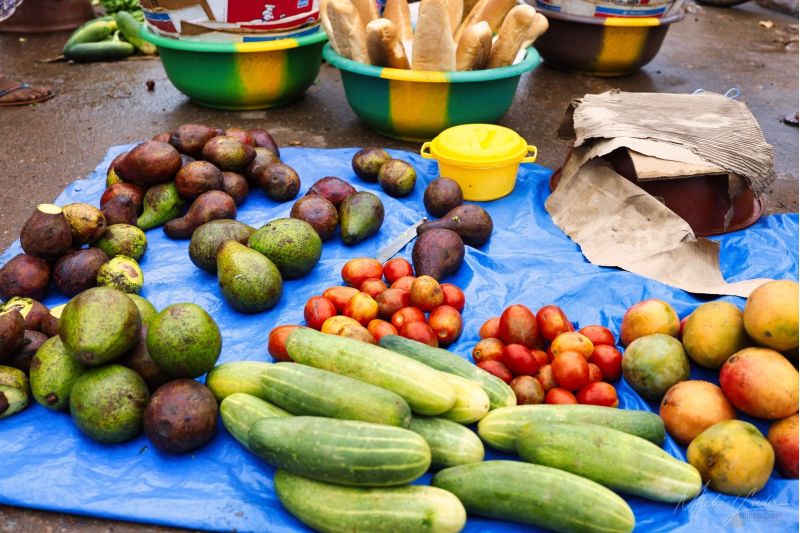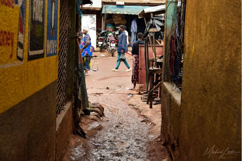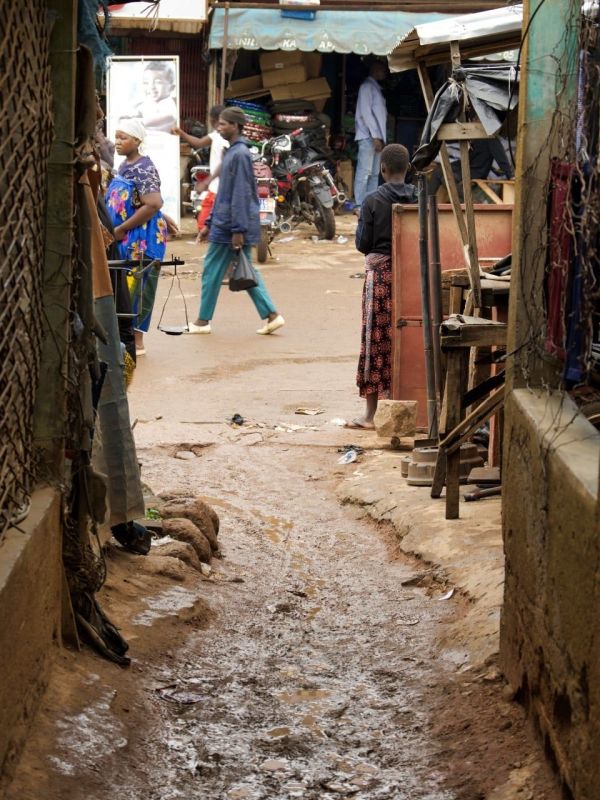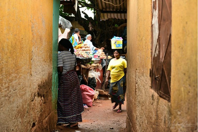 Trotz der Herausforderung ließen Roland und ich uns nicht abschrecken und tauchten ein in das geschäftige Treiben des Marktes. Doch an diesem Tag zeigte er sich nicht von seiner lebendigsten Seite – eine durchregnete Monsun-Nacht hatte ihre Spuren hinterlassen. Statt leuchtender Stoffe, duftender Gewürze und geschäftigem Stimmengewirr erwarteten uns graue Tristesse, tiefe Pfützen und schmieriger Schlamm, der das Fortkommen mühsam machte. Romantische Afrika-Vorstellungen? Sie lösen sich hier schnell auf.