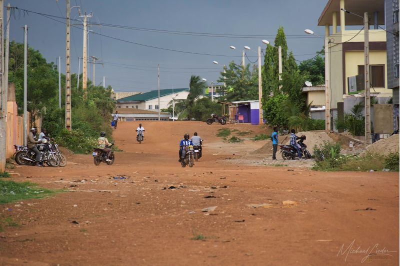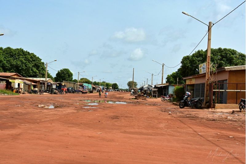 Von diesem geschäftigen Zentrum führt die Hauptstraße Richtung Süden zum einzigen Kreisverkehr der Stadt. Rund um diesen verteilen sich die meisten Verwaltungsgebäude, die das administrative Herz Korhogos bilden. Folgt man der Straße weiter, gelangt man ins Viertel “Residential”, das überwiegend von mittleren Angestellten und der wohlhabenderen Oberschicht bewohnt wird. Im Gegensatz zu den ärmeren Vierteln sind hier einige Straßen asphaltiert, doch die Nebenstraßen der Stadt bleiben größtenteils unbefestigt. Besonders in der Regenzeit stellt das eine große Herausforderung dar, da viele Wege unpassierbar werden. Auffällig ist auch, dass die Straßen Korhogos oft namenlos sind. Im Navigationssystem erscheint lediglich ein wirres Netz aus Linien ohne jegliche Bezeichnung, was die Orientierung erschwert.