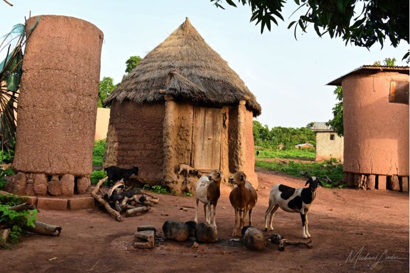 Gleich nebenan steht ein weiteres zentrales Gebäude: die Kafounda, oft auch „Baum des Wortes“ genannt. Hier, unter seinem schützenden Dach, kommen die Dorfbewohner zusammen, um Konflikte zu besprechen und Lösungen zu finden. Nur wenige Schritte entfernt befindet sich ein Haus, dessen Eingang streng abgeschirmt ist. Es ist ein Ort der Geheimgesellschaft, zu dem nur die Honoratioren Zutritt haben. Unser Begleiter spricht leise, als er es erwähnt – ein Hauch von Ehrfurcht in seiner Stimme. Hier sollen Tieropfer dargebracht werden, doch er geht nicht weiter ins Detail. Vielleicht aus Respekt, vielleicht, weil es Dinge gibt, die Außenstehenden verborgen bleiben sollen.