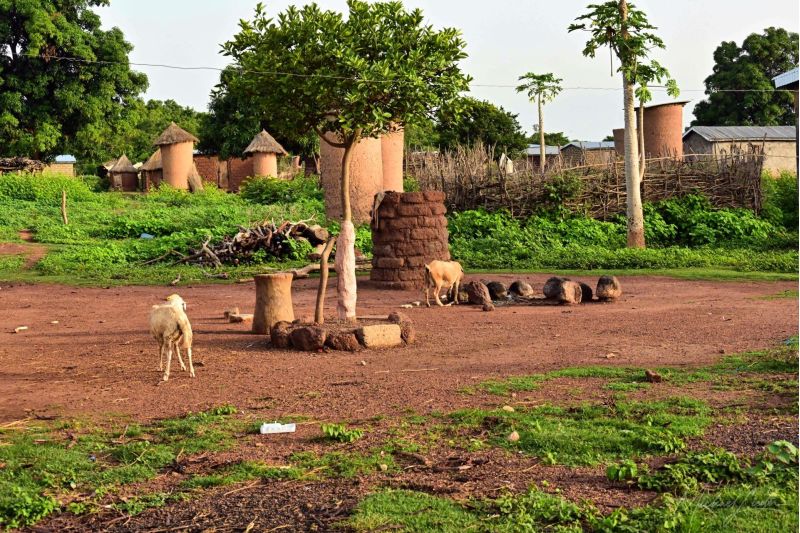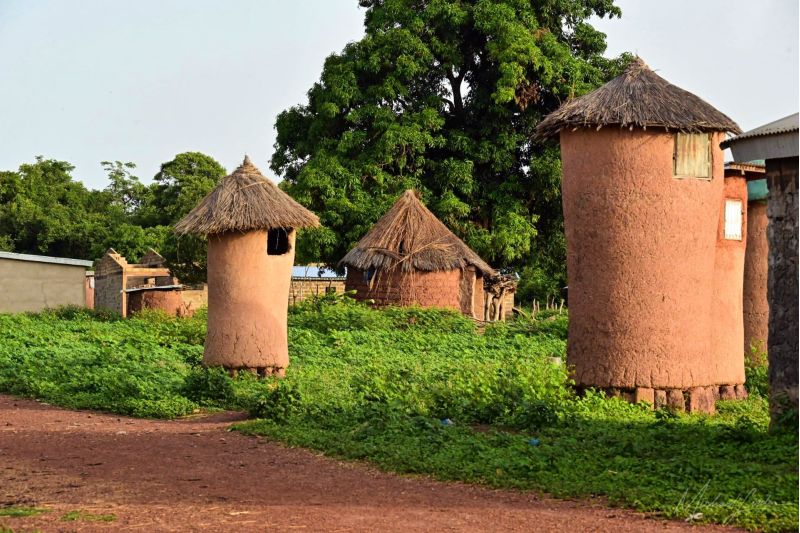 neben den Fetischhütten sind auch die Wohnhäuser in Niofoin architektonisch spannend. Sie bestehen oft aus Lehm und haben kunstvolle Verzierungen, die soziale und spirituelle Bedeutung haben. Die Dachform ist oft kegelförmig – ein traditionelles Erkennungsmerkmal der Senoufo.