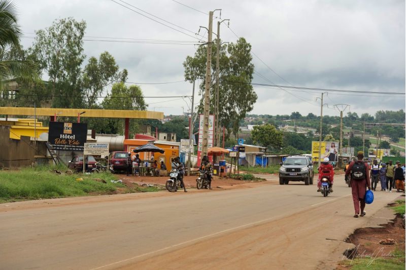 Die rund 80 Kilometer zwischen Korhogo und Niofoin sind weit mehr als nur eine Autofahrt – sie sind eine Reise durch das ländliche Herz der Elfenbeinküste. Zunächst geht es auf einer noch recht gut ausgebauten Straße voran, doch spätestens beim Abbiegen auf die Piste beginnt das eigentliche Abenteuer. Die Wege sind holprig, Staub wirbelt auf, und immer wieder tauchen tiefe Schlaglöcher auf, die umfahren werden wollen. Doch genau das ist Teil des Erlebnisses.