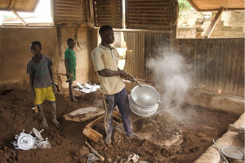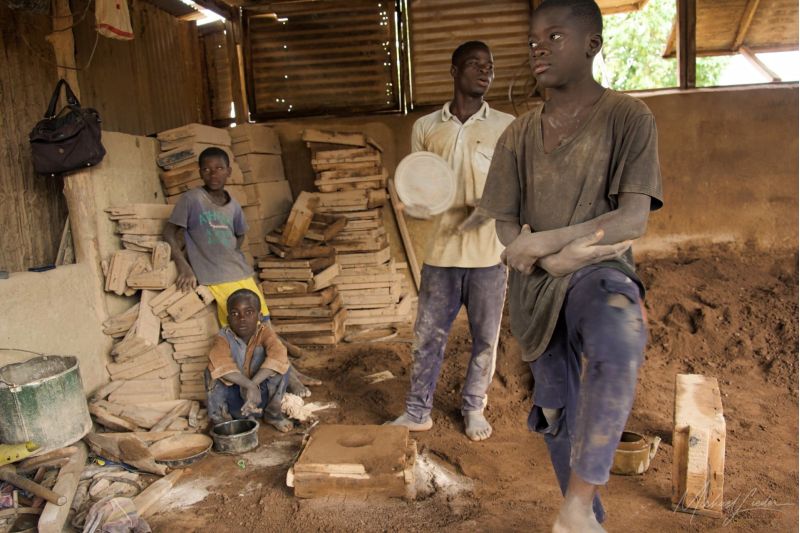 In Korhogo ist Kinderarbeit kein Schreckgespenst, das man selten sieht – sie ist Teil des täglichen Überlebens. Schon Grundschulkinder lernen, wie man Ton formt und im Feuer härtet. Sie schleppen schwere Gefäße, sitzen stundenlang in gebückter Haltung und atmen Rauch, der in der Kehle kratzt.
