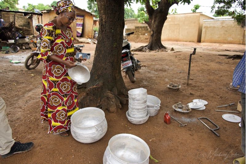Eigentlich begann alles harmlos: Roland, unser passionierter Gourmet und hauseigener Meister am Herd, hatte sich in einen simplen Aluminiumtopf verliebt – robust, glänzend, perfekt für das nächste Curry. Also machten wir uns auf den Weg zum Markt von Korhogo, in der Hoffnung, dort ein ähnliches Exemplar zu finden. Ein Abenteuer in Hitze, Lärm und Leben – so dachten wir. Doch das, was wir fanden, war mehr als nur Handwerk. Es war eine Wahrheit, die unter die Haut ging. Zwischen Werkbänken, glühender Kohle und dampfenden Tonhaufen sahen wir sie: kleine Hände, die den Lehm kneteten, Formen drückten, Schalen trugen – viel zu kleine Hände für so große Arbeit. Kinder, die an den offenen Feuerstellen schwitzten, konzentriert und still.