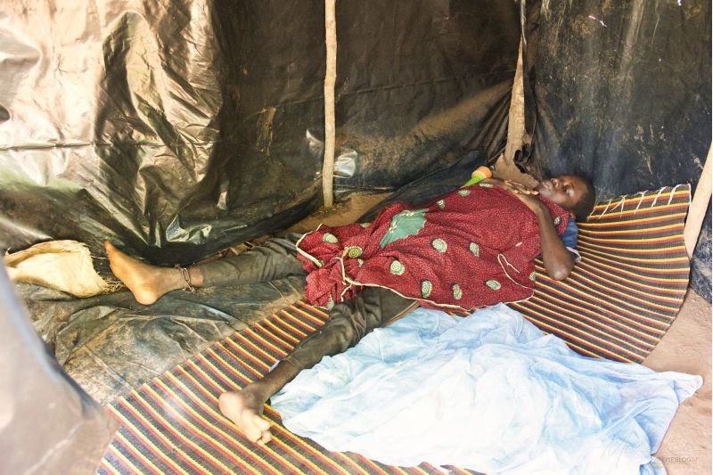 Nach ausführlichen Erklärungen und der Versicherung, dass wir „gute Absichten“ verfolgten, durften wir das Dorf in seiner Begleitung betreten. Was wir dort sahen, traf uns tief. Die Kranken lagen auf dem kalten Boden, in winzigen, provisorischen Hütten aus Plastikplanen, die häufig um einen Baum herum errichtet waren. Dieser spartanische Lebensraum war das Einzige, was der sogenannte Prophet seinen Schützlingen gewährt. Medizinische Versorgung oder Medikamente suchte man vergebens. Stattdessen verspricht er Heilung allein durch Gebete – ein „Rezept“, das er überzeugend als weitaus überlegen gegenüber der modernen Medizin darstellt.