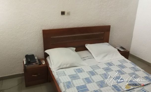 Die Zimmer haben ein Bett und ein paar Möbelstücke, die zweckmäßig sind und durchaus in die Umgebung des einfachen Hotel passen. Die Schränke schließen nicht richtig und sind stark verzogen. Das Badezimmer hat funktionierendes fließendes Wasser und sogar eine warme Dusche, die Hygienestandards sind jedoch sehr weit unten angesetzt und man sollte auf jeden Fall Badeschuhe und eigene Handtücher dabei haben. Die Bettdecke hat den Anschein, als ob Motten damit versucht haben zu klöppeln, zwischen den Löschern gab es noch ein paar Stofffetzen, die alles zusammengehalten haben.