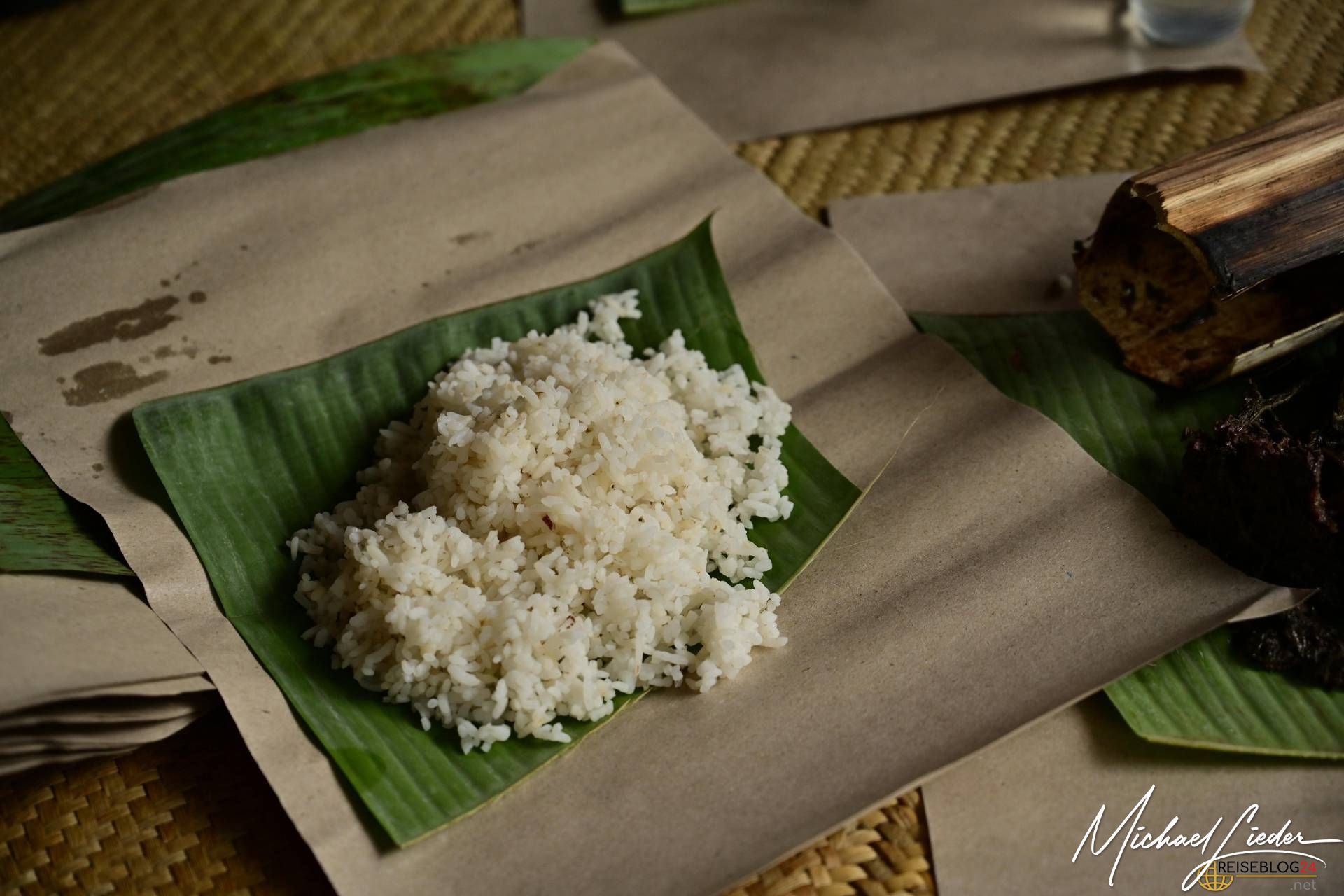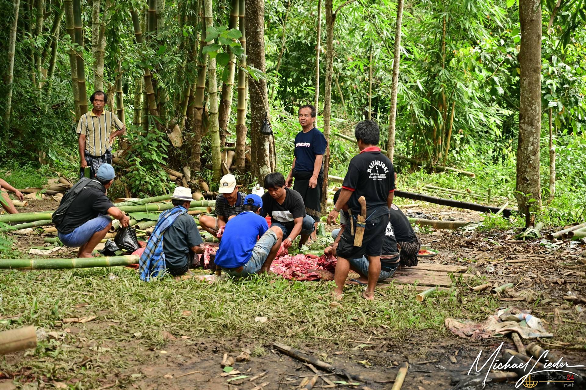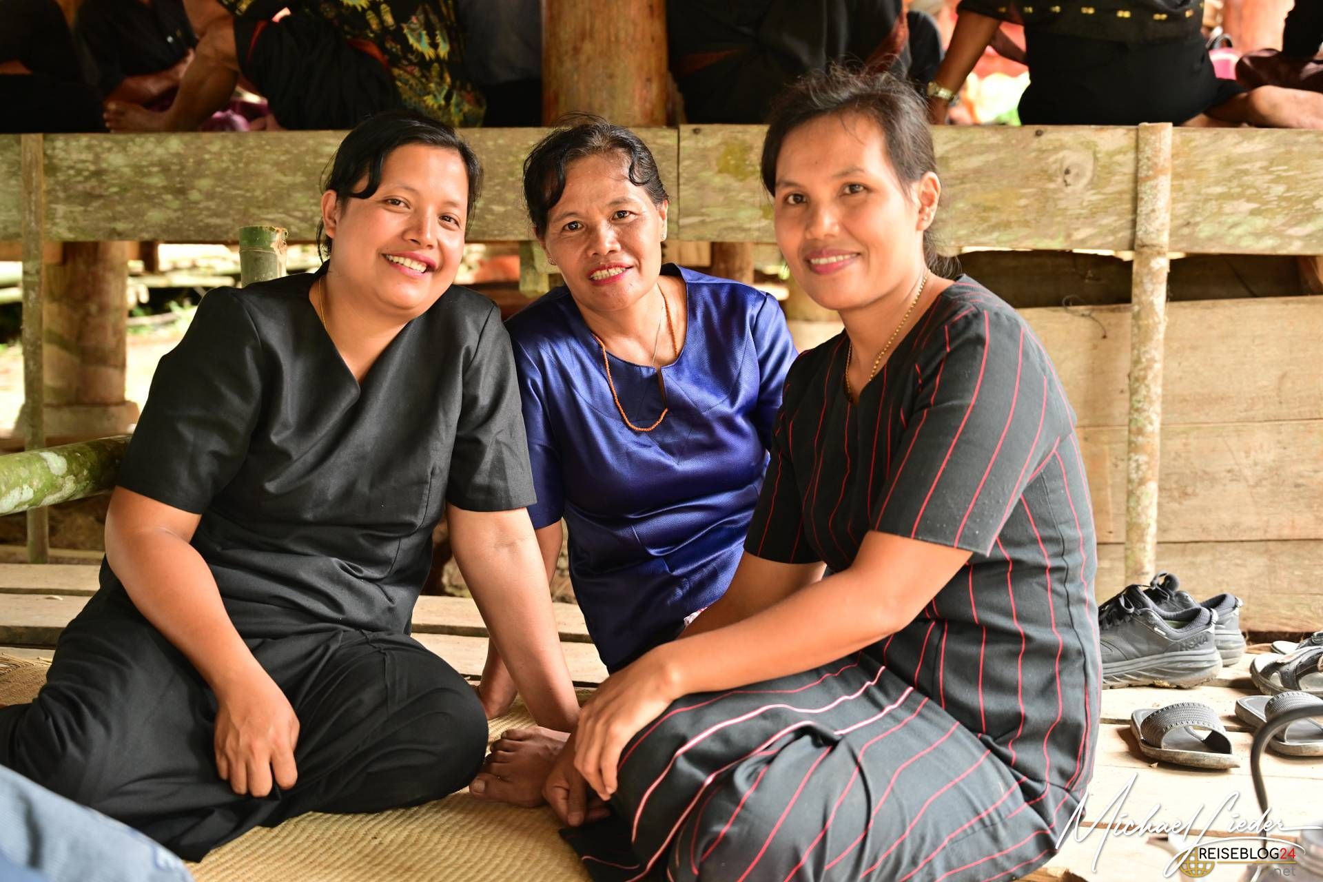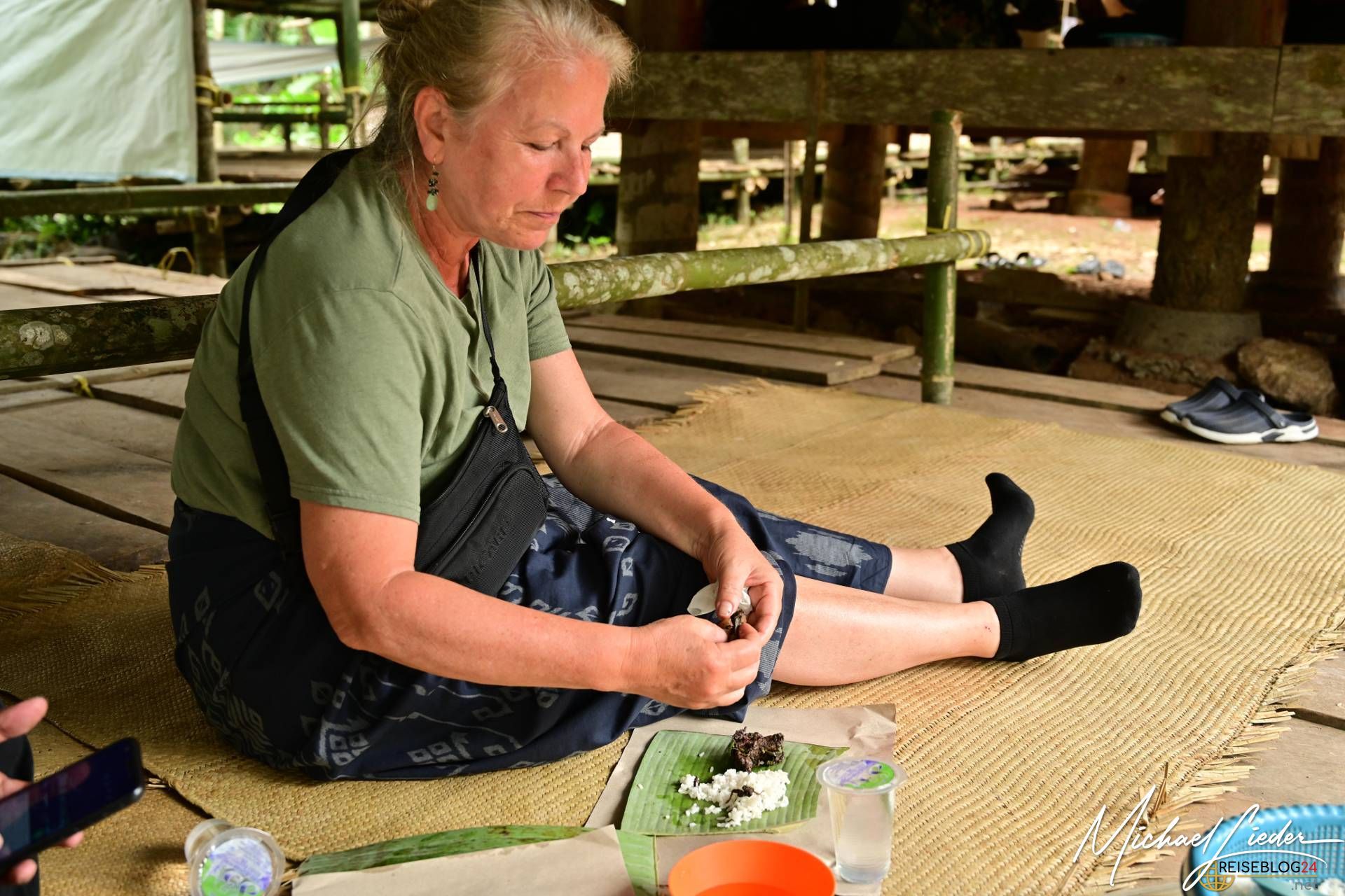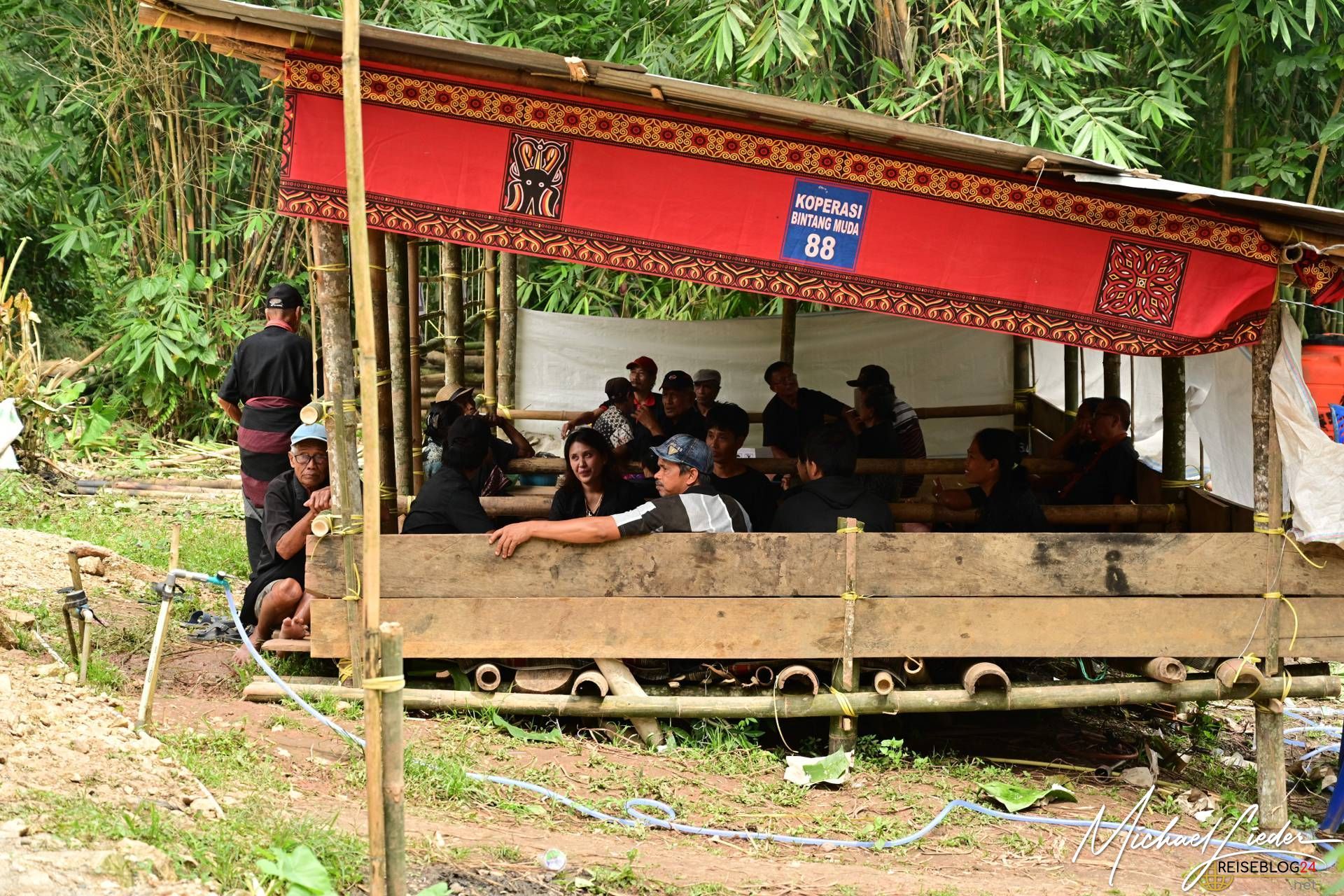 Doch trotz der Tragik des Abschieds ist die Atmosphäre keineswegs nur von Trauer geprägt. Die Familie, Freunde und die gesamte Gemeinschaft kommen zusammen, um Erinnerungen zu teilen, gemeinsam zu essen, zu singen und das Leben des Verstorbenen zu feiern. Auch wir durften an einer solchen Zeremonie teilnehmen und wurden mit offenen Armen empfangen. Wir probierten das traditionelle Totenmahl: Schweinefleisch, eingelegt und mit Gewürzen und Kräutern in Bambusrohren gegart, serviert mit Reis und heißem Tee. Gegessen wurde, wie in der Region üblich, mit den Fingern. Als Zeichen des Respekts erhielten wir Sarongs, um uns in die Gemeinschaft einzufügen.