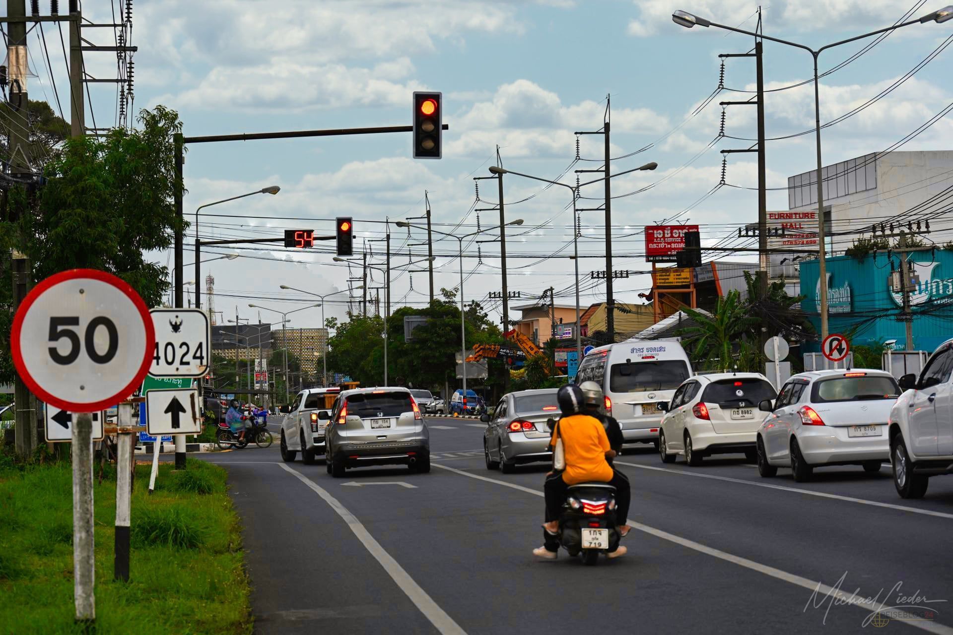 Und dann sind da diese kleinen Alltagsdetails, die einen schmunzeln lassen. Zum Beispiel die Verkehrsampeln. Eine echte Innovation, die ich mir zu Hause sofort wünschen würde: An großen Kreuzungen gibt es eine Sekundenanzeige, die gnadenlos ehrlich herunterzählt, wie lange die Rotphase noch dauert. Keine Spekulation, kein nervöses Vorrücken – einfach Klarheit. Fußgängerampeln fehlen zwar oft, aber mit einem Blick auf die wartenden Autos und Roller weiß man ziemlich genau, wann Bewegung ins Spiel kommt. Pragmatisch. Funktional. Irgendwie sehr Thailand.