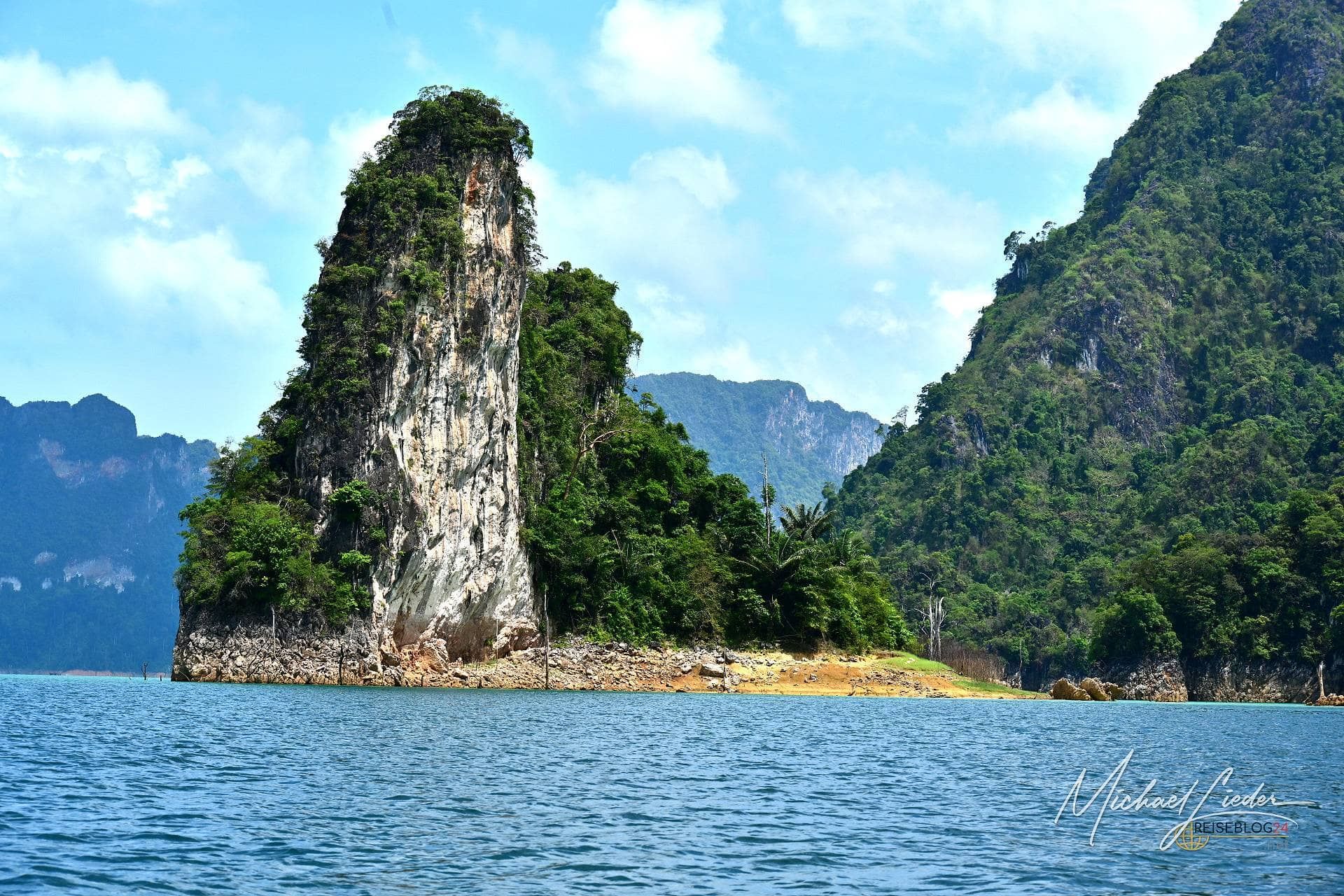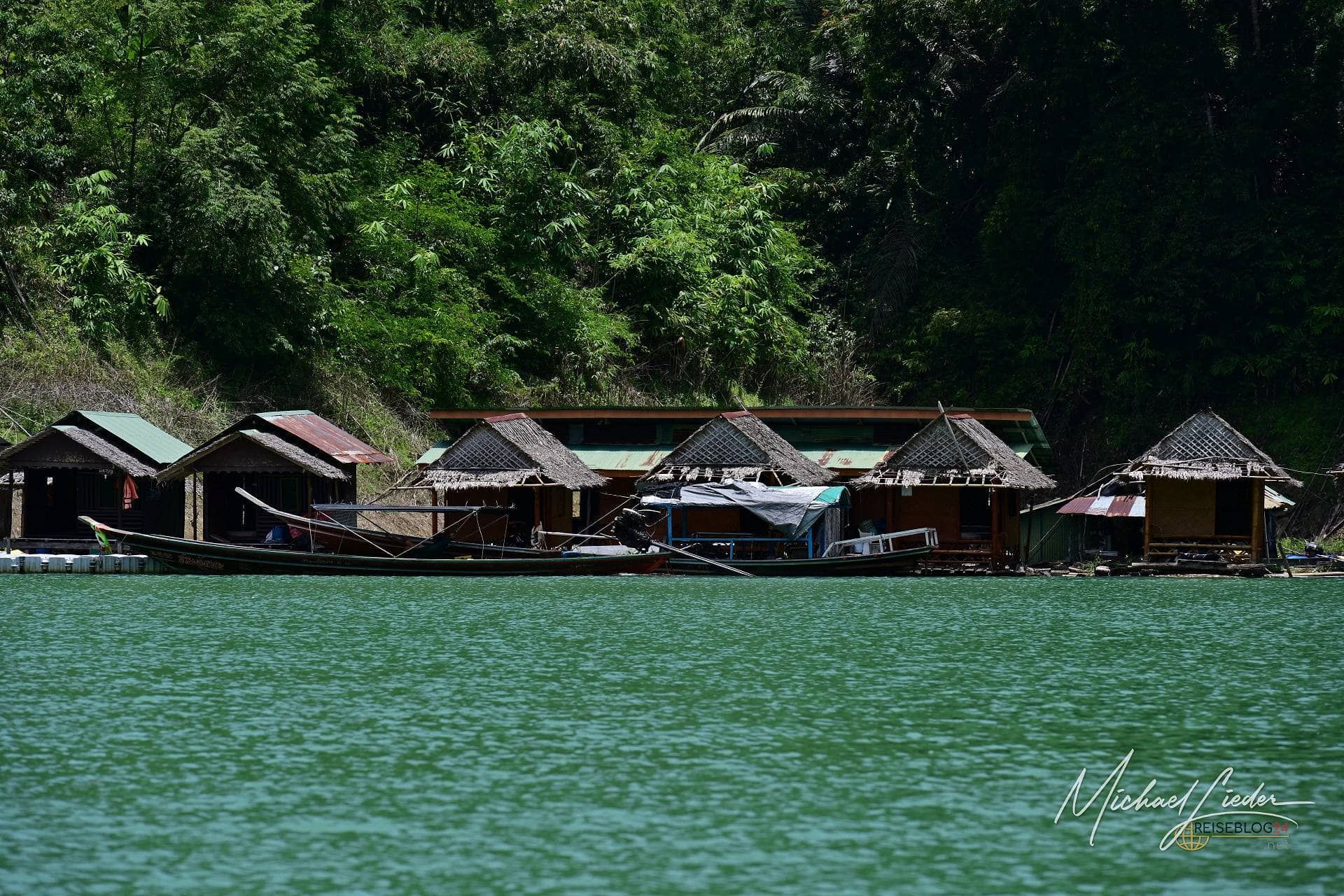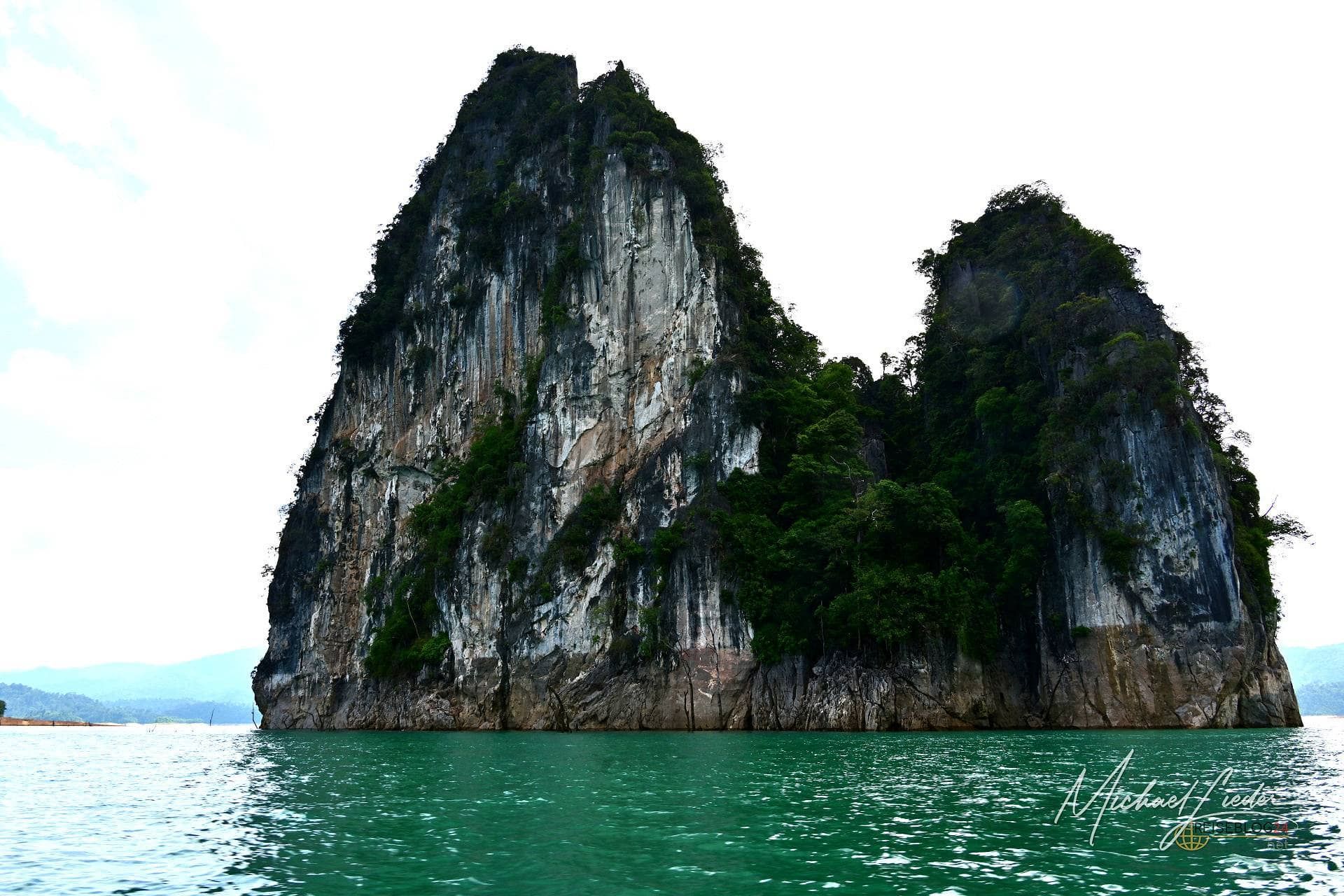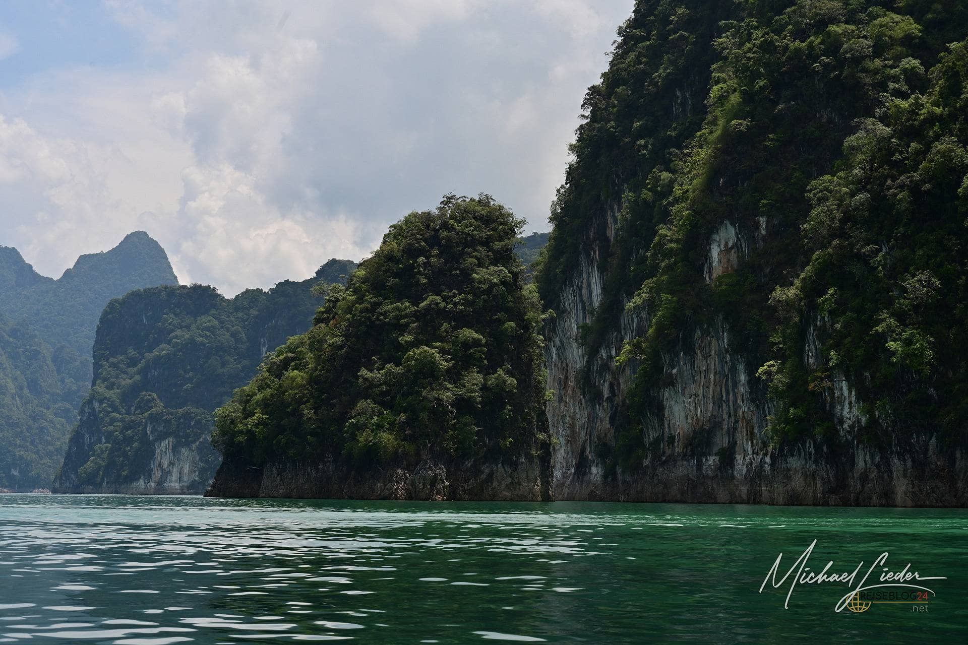 Die Tour habe ich direkt über meine Unterkunft gebucht. Abfahrt war um 8:30 Uhr – und tatsächlich: Der Guide stand pünktlicher vor der Tür als jede deutsche Regionalbahn. Ein extrem gut gelaunter Thai, der mit viel Humor, kleinen Faxen und erstaunlich viel Fachwissen unsere zehnköpfige Gruppe durch den Tag begleitet. Allein dafür hätte man ihm eigentlich schon Trinkgeld geben müssen. Geplant ist eine etwa anderthalbstündige Bootsfahrt zu einem schwimmenden Camp mitten auf dem See. Dort gibt es Mittagessen, Zeit zum Baden und optional eine Cave Tour. Die eigentlich angebotene Alternative – eine Wanderung zu einem Wasserfall – fällt heute leider aus. Kein Drama. Bei dieser Kulisse vermisst man wenig. Mit dröhnendem Motor und ordentlich Spritzwasser geht es quer über den See. Vorbei an mächtigen Felsen, die bis in die Spitzen bewaldet sind und wirken, als hätten sie sich einfach aus dem Wasser geschoben. Diese Formationen sind legendär. Jeder, der sich schon einmal mit Thailand beschäftigt hat, hat sie irgendwo gesehen – in Prospekten, auf Webseiten oder als kitschiges Hintergrundbild. Und trotzdem: In echt sind sie noch einmal eine ganz andere Hausnummer.