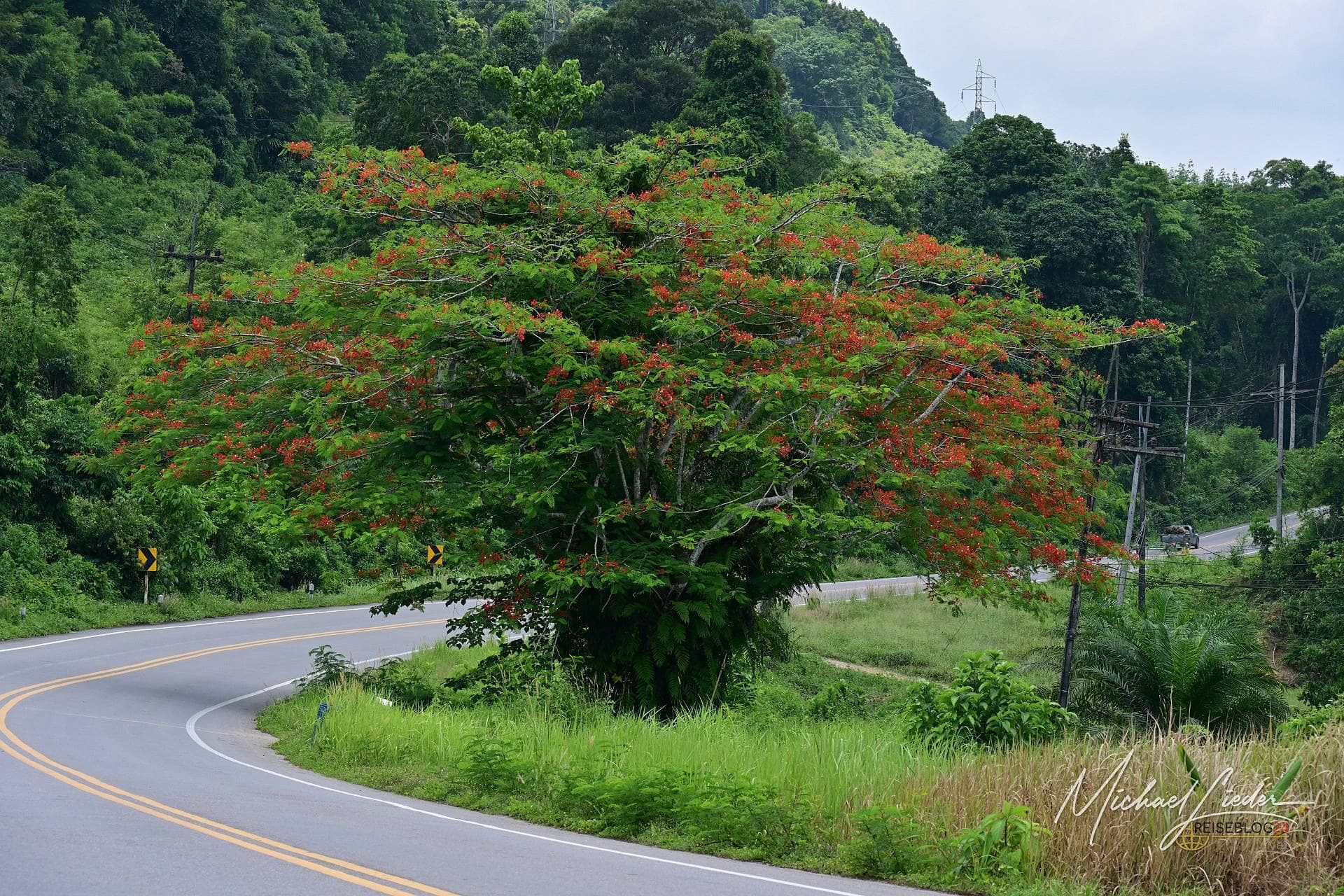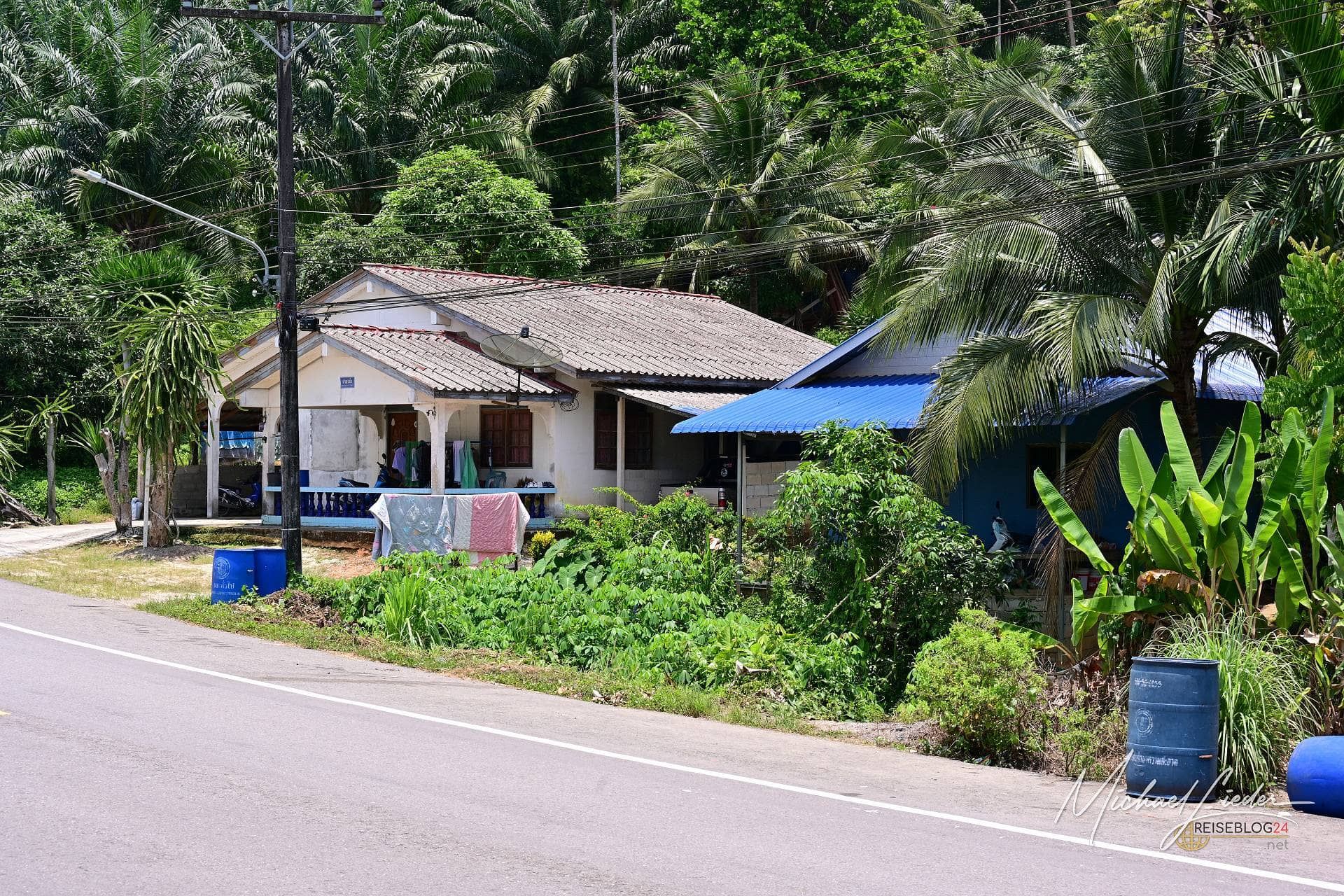 Und dann diese Landschaft. Hinter jeder Kurve wartet etwas Neues. Endloses Grün, Wälder, die wirken, als hätten sie keinen Anfang und kein Ende. Palmenhaine, blühende Hecken, vereinzelte Bäume, die aussehen, als hätten sie ihren Platz ganz bewusst gewählt. Und immer wieder, fast beiläufig, ein Blick auf das Meer im Hintergrund – als wollte es sagen: Ich bin auch noch da. In den Ortschaften am Straßenrand wird das Bild komplett. Spielende Kinder, streunende Hunde, kleine Läden, einfache Restaurants, aus denen es verführerisch duftet. Nichts wirkt inszeniert, nichts bemüht. Es ist einfach da. Echt, lebendig, manchmal ein wenig chaotisch – aber genau das macht diesen Roadtrip so besonders.