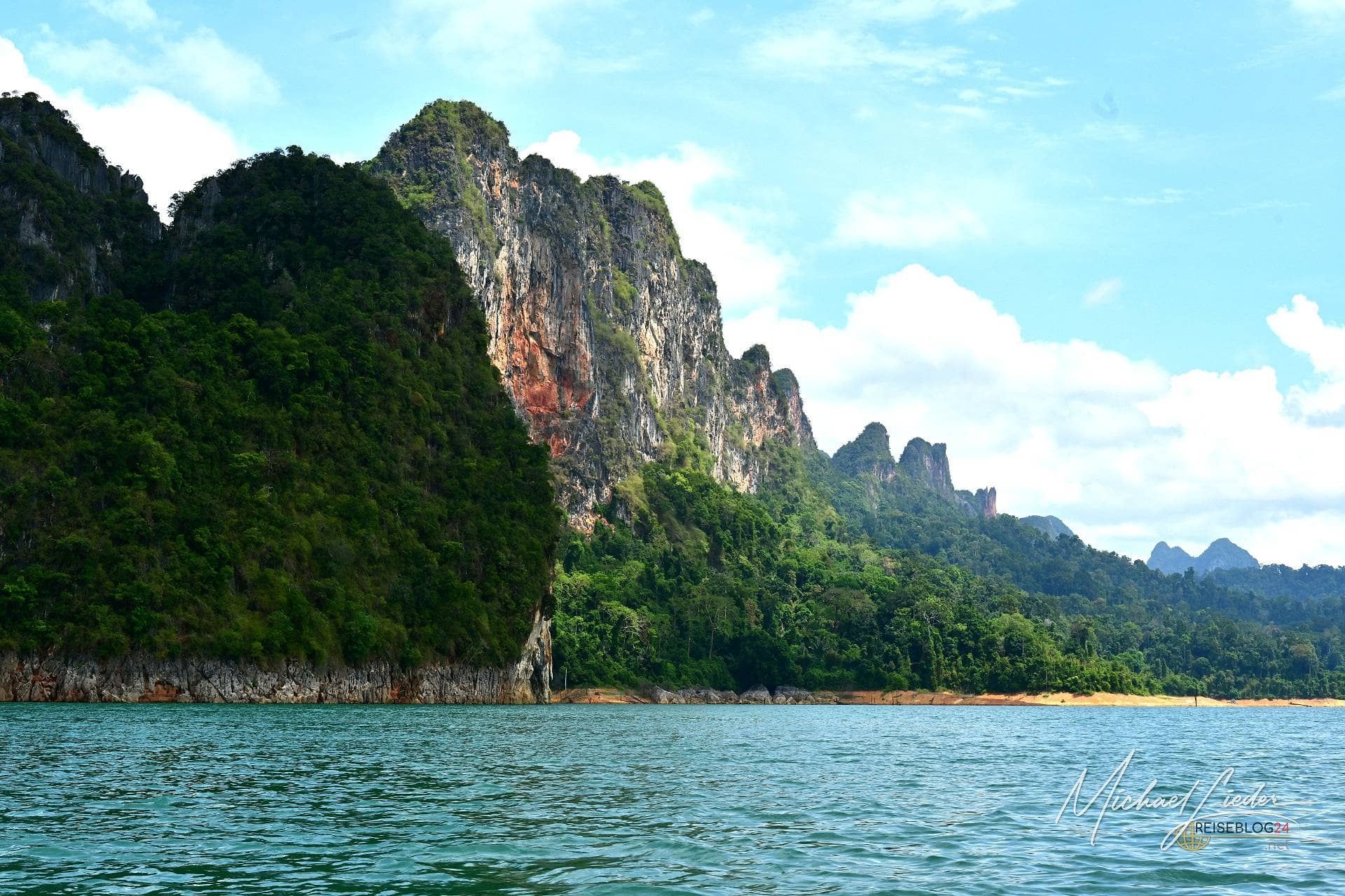 Aber statt mich darüber zu ärgern, entscheide ich mich für etwas sehr Menschliches: Ich genieße den Moment. Die Straße ist gut ausgebaut, der Verkehr überschaubar, der Fahrtwind warm, die Klimaanlage tut, was sie soll. Mein Ziel heißt Khao Sok – ein Nationalpark, der weniger besucht wird als er verdient hätte. Dichter, fast schon ehrfürchtiger Urwald, dramatisch aufragende Kalksteinfelsen und dieses eine Highlight, das alles überstrahlt: der Chiao-Lan Staudamm. Ein Ort, der nicht laut ruft, sondern leise zieht. Und genau deshalb wirkt.