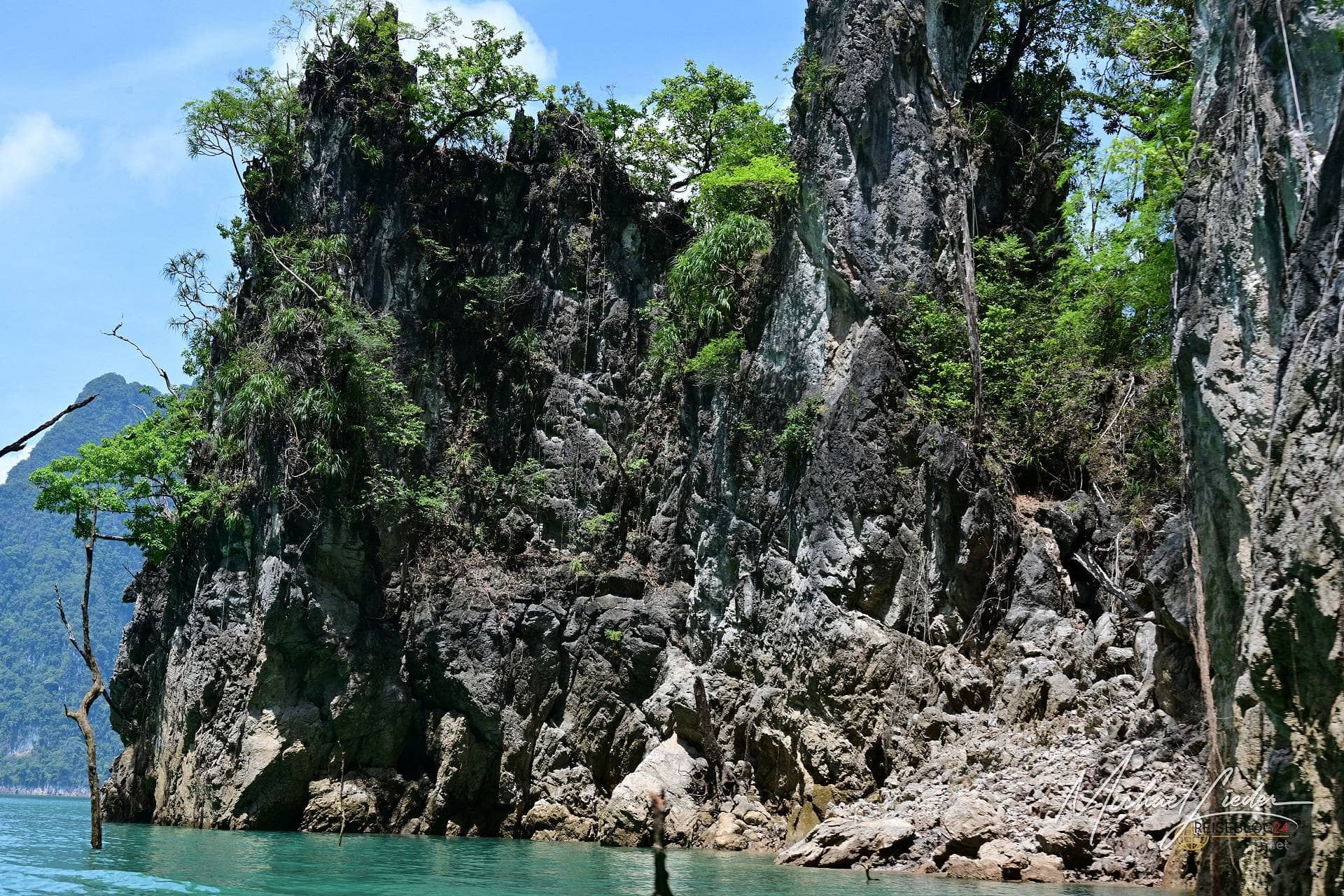 Als 1982 der Ratchaprabha-Damm gebaut wurde, entstand der Cheow-Lan-See. Große Teile des ursprünglichen Nationalparks wurden geflutet, um Platz für dieses riesige Gewässer zu schaffen. Heute umfasst der See – je nach Wasserstand – rund 162 Quadratkilometer. Eingebettet in eine Landschaft aus monumentalen Kalksteinfelsen wirkt er fast surreal, wie ein überdimensionales Naturkunstwerk.