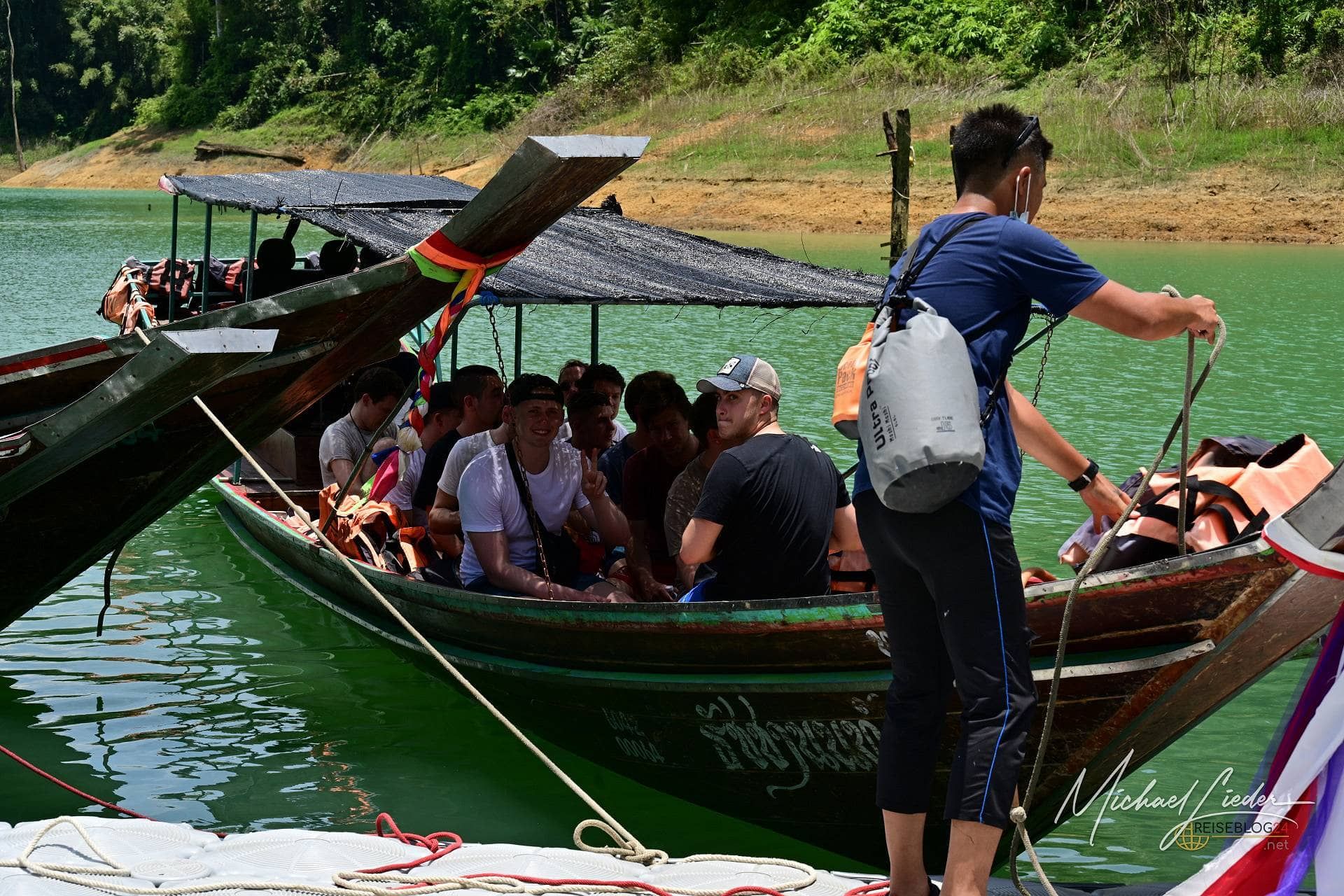 Heute steht eines der absoluten Highlights im Khao Sok Nationalpark an: die Fahrt mit einem Longtailboot hinaus auf den Stausee. Schon beim Einsteigen ist klar, das hier wird kein stilles Dahingleiten, sondern ein echtes Erlebnis – laut, lebendig und genau richtig.