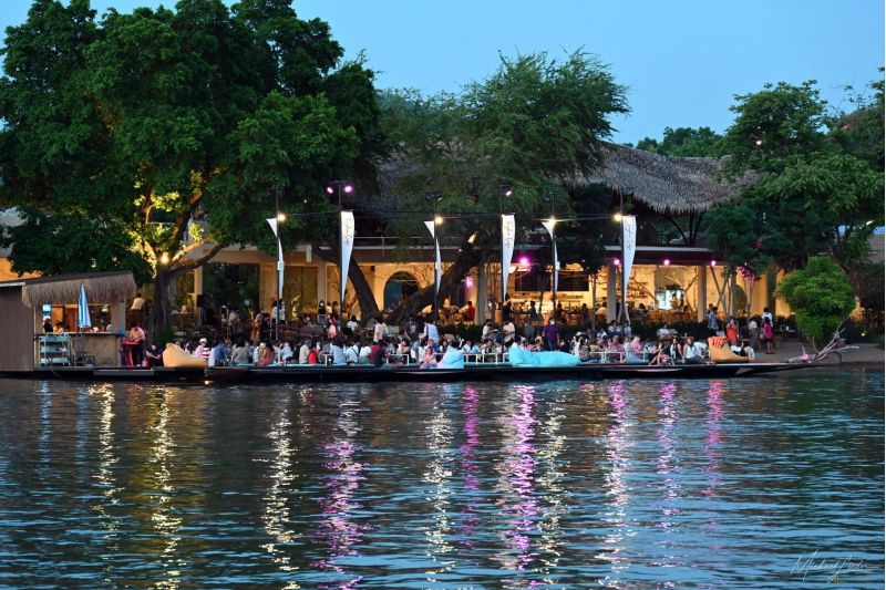 Das Felix River Kwai Resort bietet einmal pro Woche dieses kleine Abenteuer an: ein schwimmendes Restaurant, sanft vom Strom getragen, während der Abend langsam in Gold und Blau versinkt. Die Luft roch nach Wasser, Reisfeldern und einem Hauch Fernweh. Normalerweise meide ich organisierte Ausflüge – zu viel Choreografie, zu wenig Seele. Doch dieser Abend war anders. Langsam glitt das schwere Floß dahin. Lichter spiegelten sich in den Wellen, irgendwo bellte ein Hund am Ufer, und vom Deck aus konnte man beobachten, wie das Leben am Fluss einfach weiterlief – gelassen, echt, unaufgeregt. Das Buffet war überraschend gut, die Gerichte liebevoll zubereitet. Und während ich mit einem kühlen Drink in der Hand sah, wie die Lichter von Kanchanaburi am Horizont verschwammen, dachte ich: Genau so fühlt sich Reisen an. Ein bisschen Luxus. Ein bisschen Zufall. Und ganz viel Leben dazwischen.