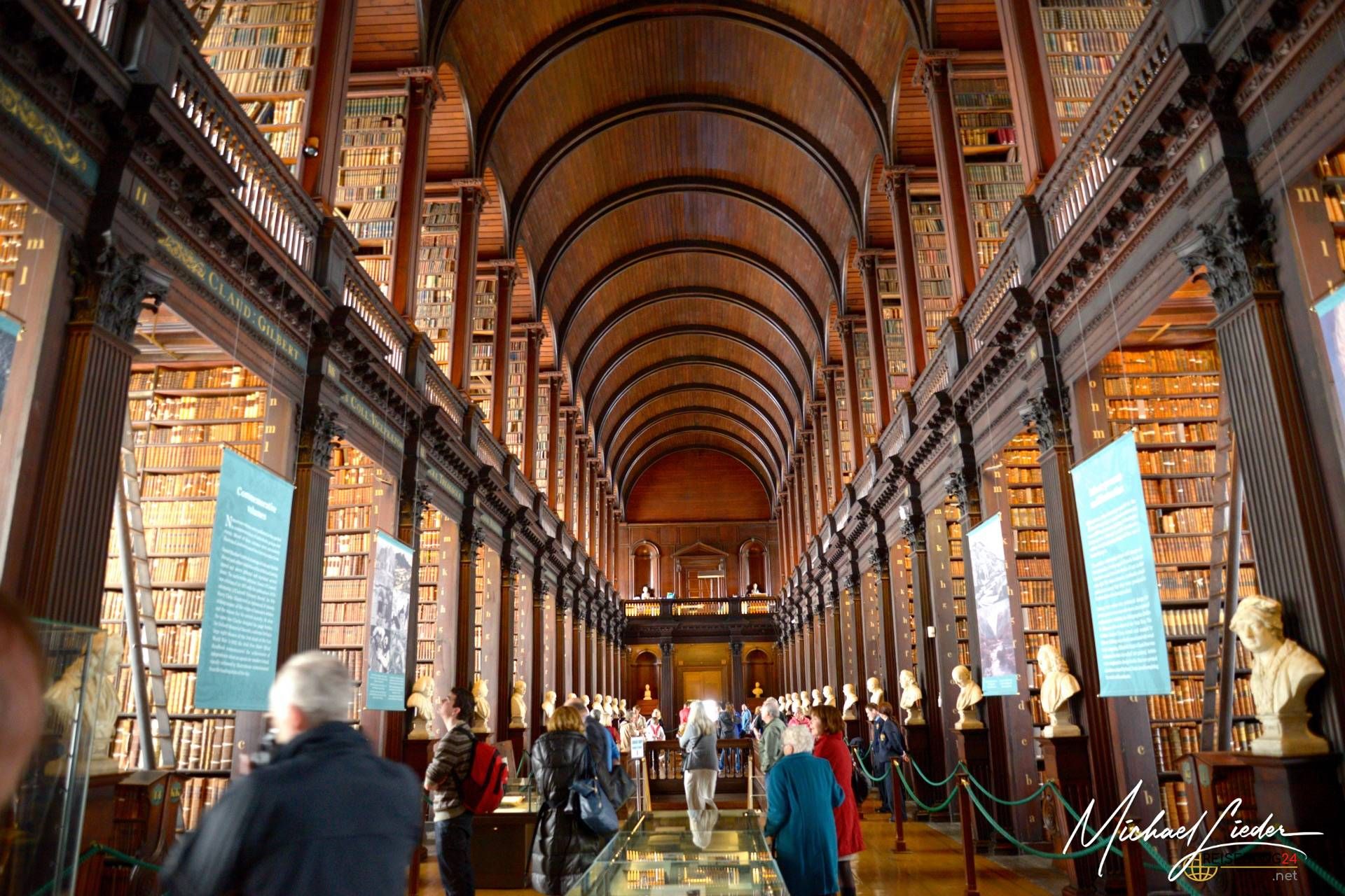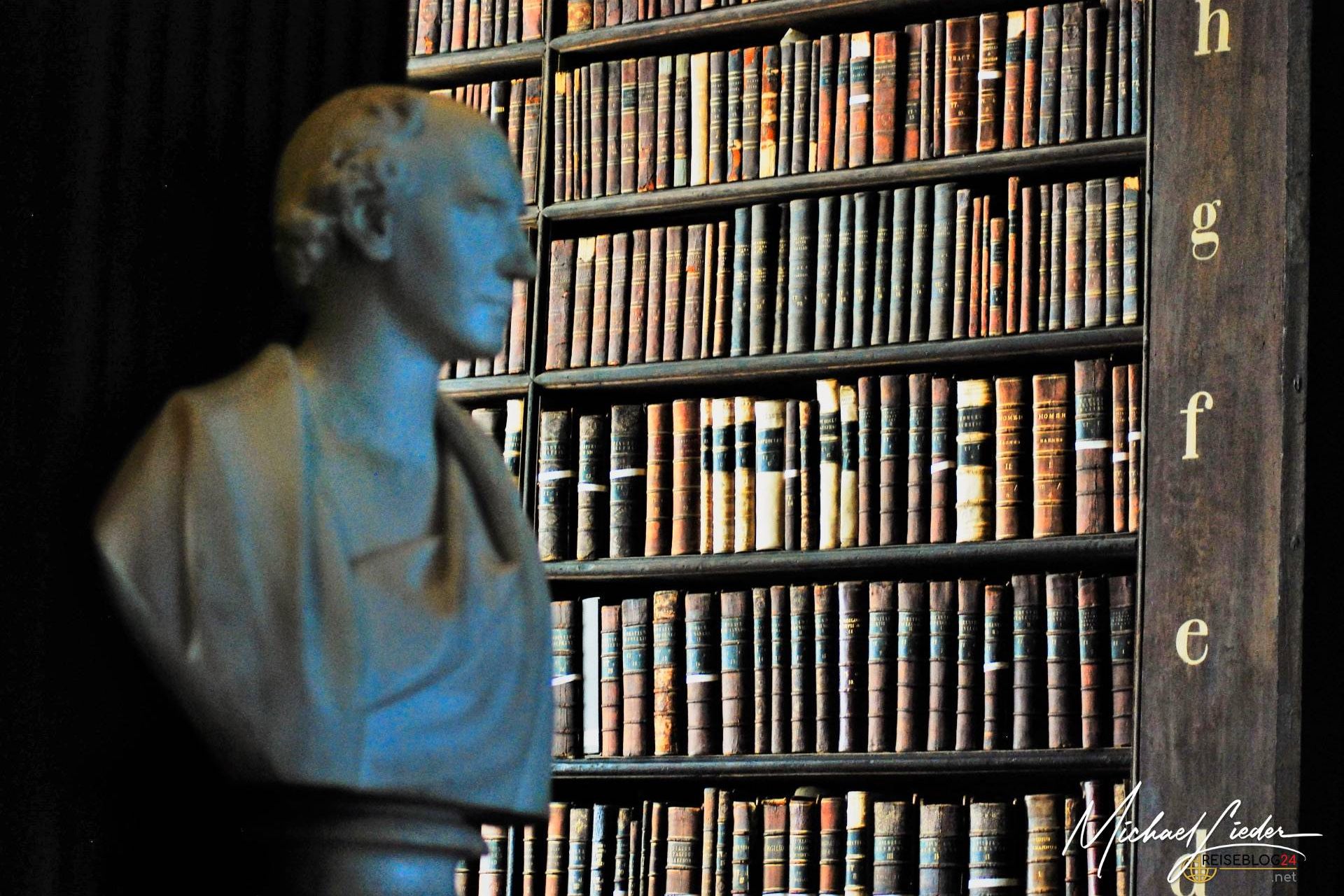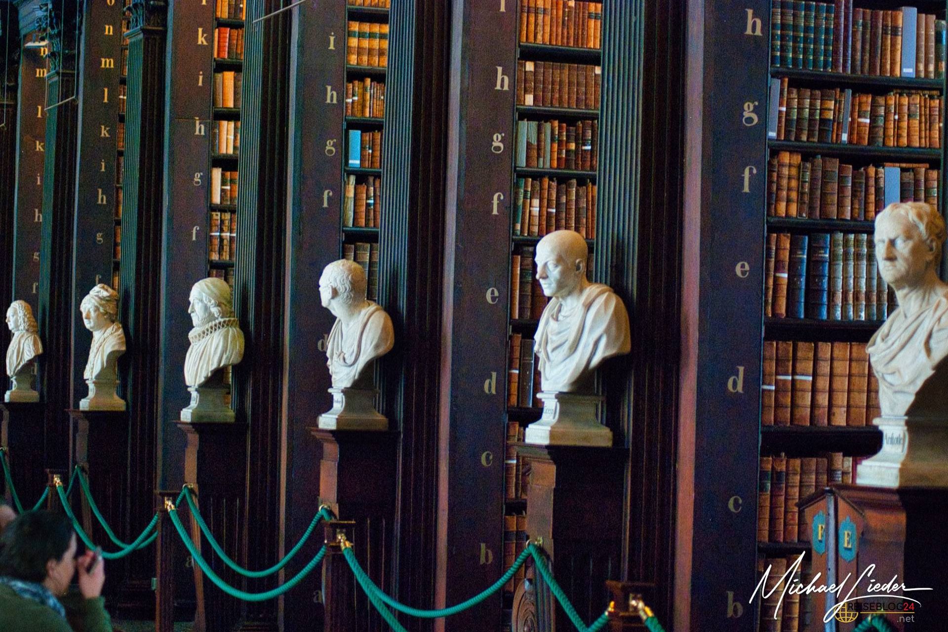 Nach dem Book of Kells führt der Weg weiter in den Long Room der Bibliothek – und hier verliert man endgültig jedes Zeitgefühl. Eine hohe Halle, Regale bis zur Decke, über 200.000 der ältesten Bücher Irlands. Der Geruch von altem Papier liegt in der Luft, diese Mischung aus Staub, Geschichte und stiller Konzentration. Man spricht automatisch leiser. Manche Orte verlangen das einfach.