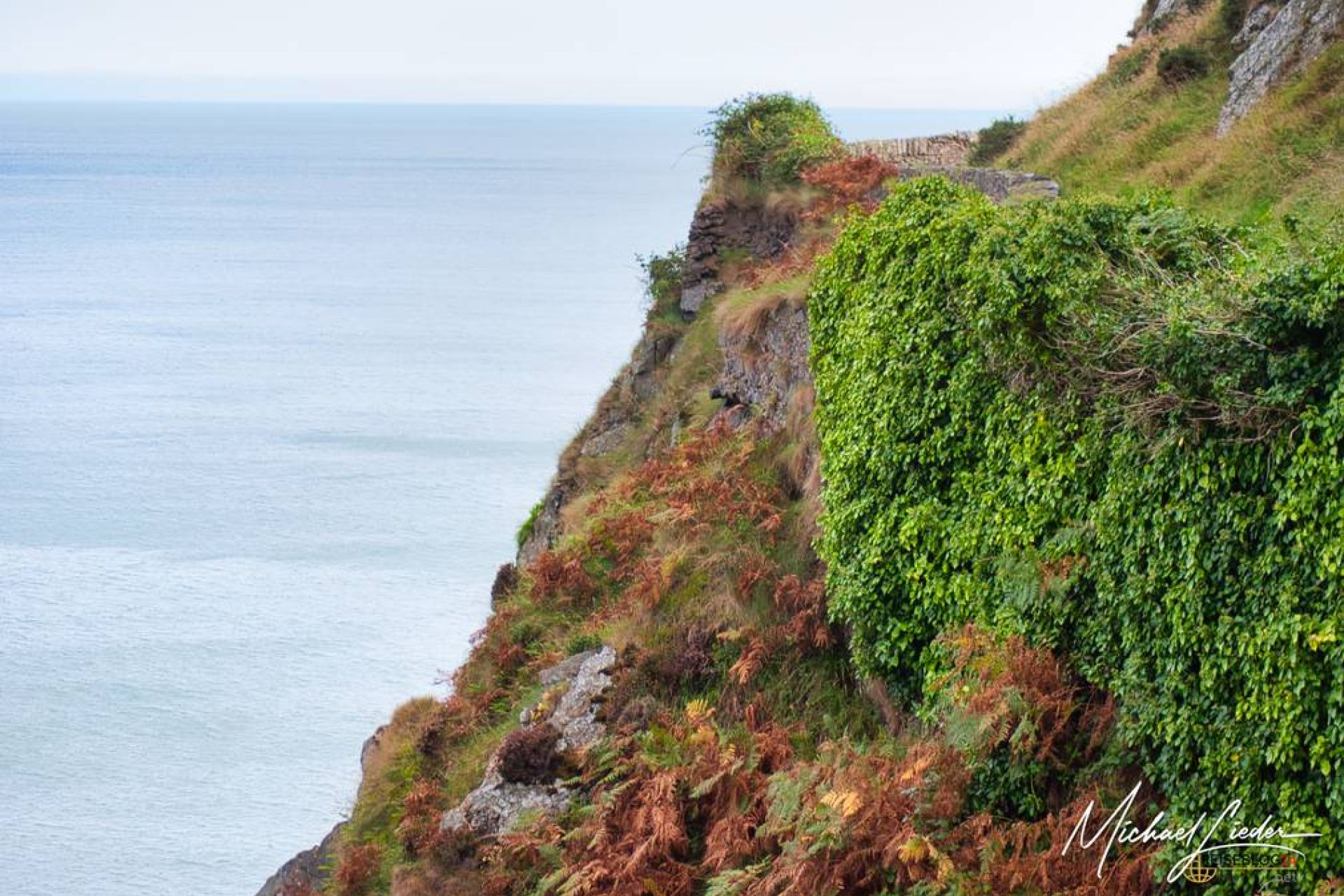 Vom Bray Head ging es nahtlos über in den eigentlichen Cliff Walk – und ab hier übernimmt die Landschaft das Kommando. Der Küstenpfad führt durch eine der schönsten Naturkulissen Irlands und verläuft größtenteils parallel zum Meer. Rechts der Atlantik, tiefblau und in ständiger Bewegung, links saftig grüne Wiesen. Es fühlte sich an, als würde ich durch eine lebendig gewordene Postkarte wandern – nur mit mehr Wind und deutlich besserer Geräuschkulisse. Der Weg selbst ist angenehm zu gehen und gut ausgeschildert. Keine technische Herausforderung, kein Kletterabenteuer – genau richtig, um das Wandern einfach zu genießen. An manchen Stellen wird der Pfad etwas schmaler, was die Sache spannender macht, ohne unangenehm zu werden. Man bleibt aufmerksam, schaut genauer hin, geht bewusster. Und genau das passt perfekt zu dieser Strecke.