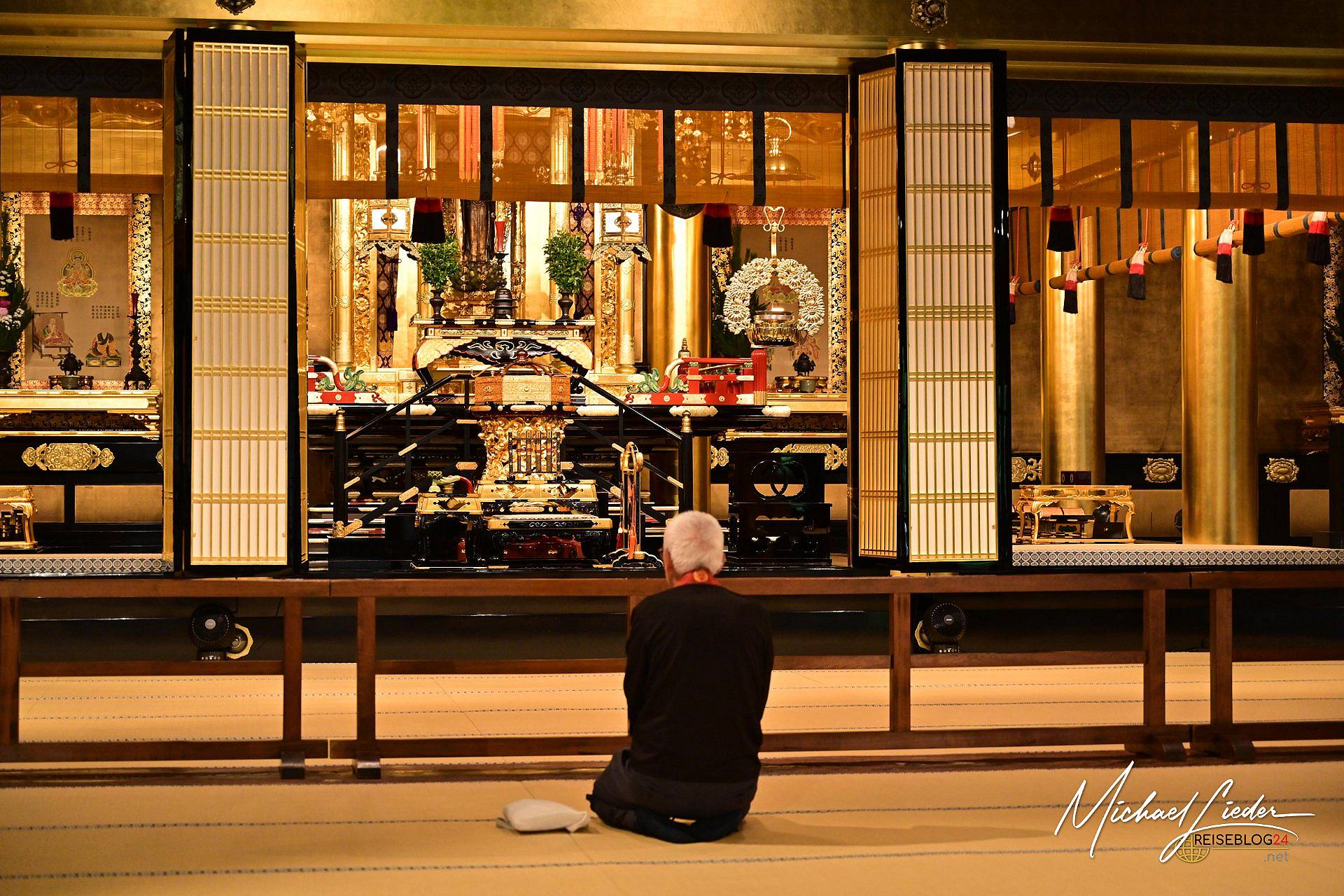 Der Higashi Hongan-ji war für uns kein Abhaken auf einer Sightseeing-Liste. Er war ein Innehalten. Ein Erinnern daran, dass Spiritualität manchmal einfach nur bedeutet, zuzuhören. Dem Raum. Sich selbst. Und vielleicht auch einem Mönch, der mit erstaunlich viel Würde einen Boden fegt, auf dem schon Generationen gegangen sind.