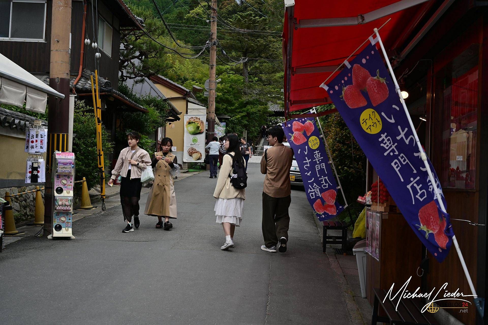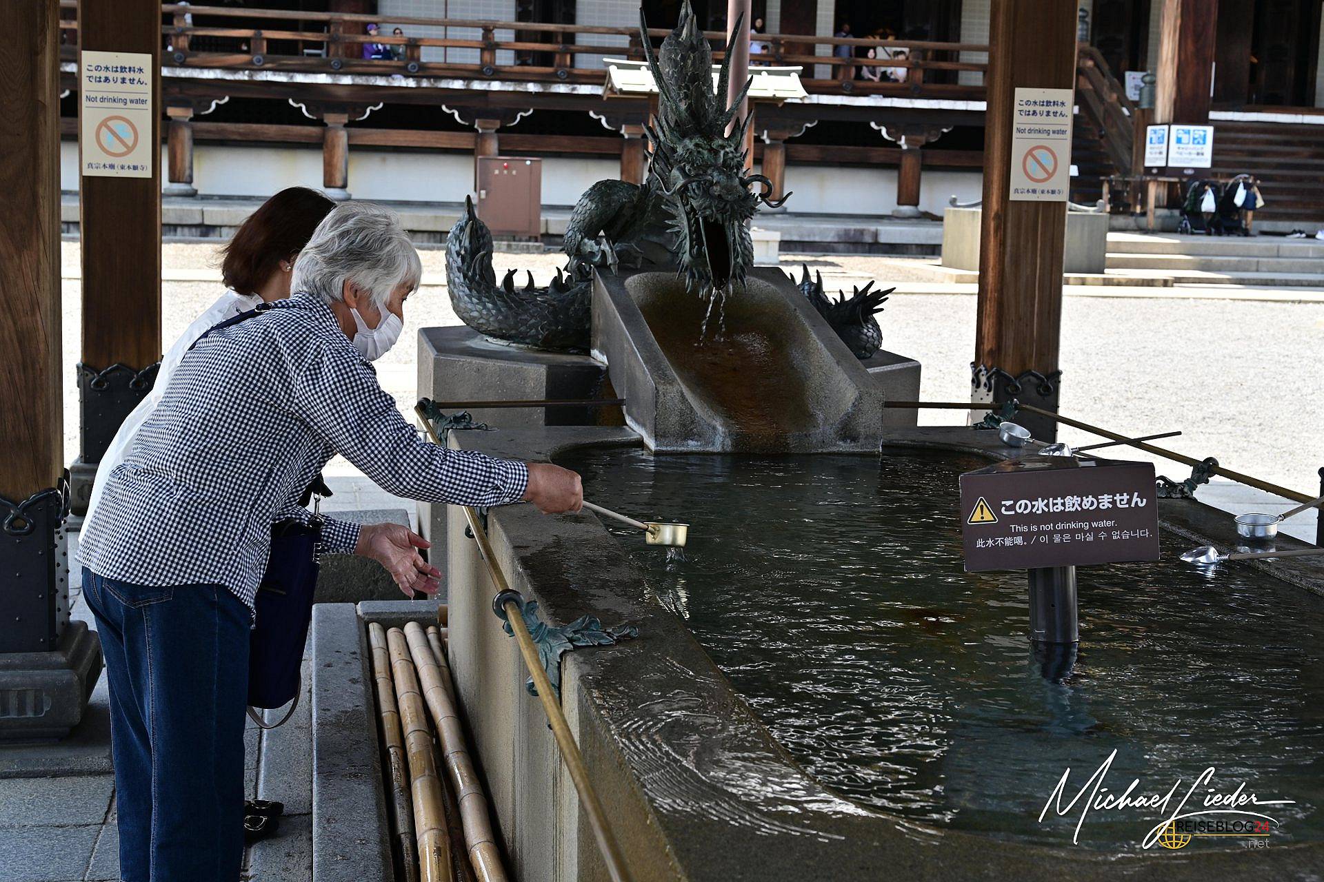 Nur leider bekommt man es nicht ohne „Beifang“. Denn während ich versuchte, ein stimmungsvolles Bild einzufangen – idealerweise ohne 27 andere Smartphones im Bildausschnitt – wurde mir freundlich, aber bestimmt klargemacht: Fotografieren verboten. Und zwar nicht im Tempel. Nein, draußen, auf öffentlichem Straßenland. Mit Schildern, die eine Strafe von 10.000 Yen androhen, sollte man sich erdreisten, eine Kamera auch nur schräg zu halten. Für jemanden wie mich, der mit Kamera reist wie andere mit Zahnbürste, fühlte sich das an wie ein Tempura mit Wasabi-Füllung: Unerwartet. Und brennend unangenehm.