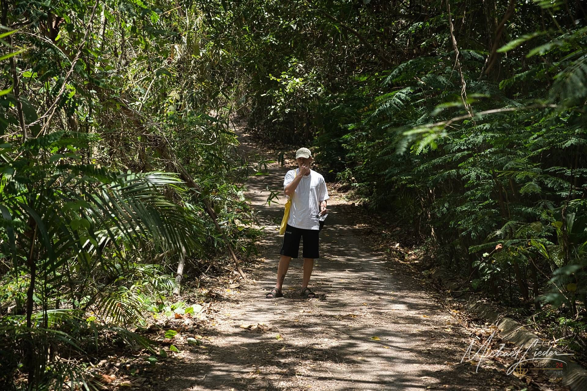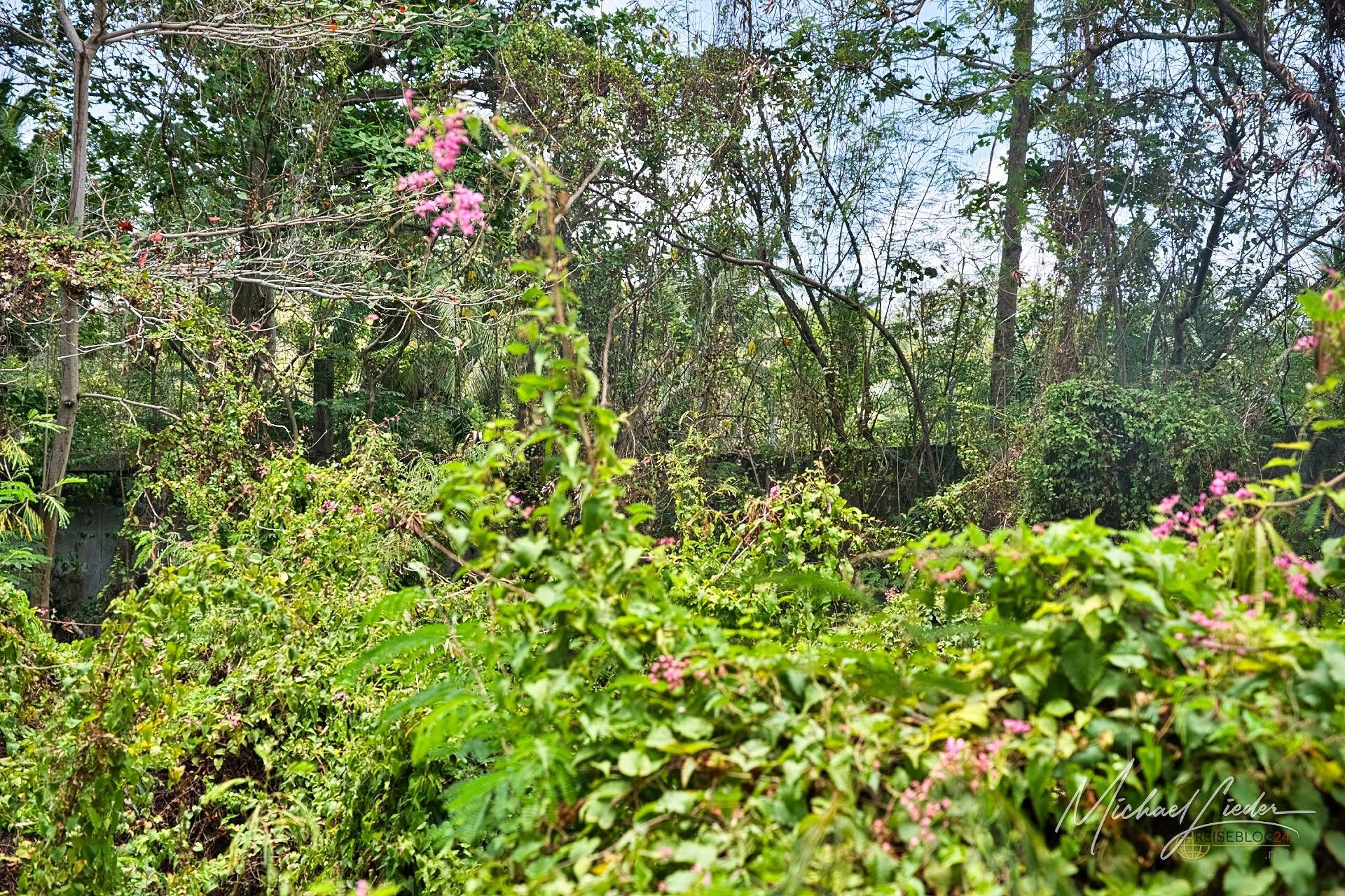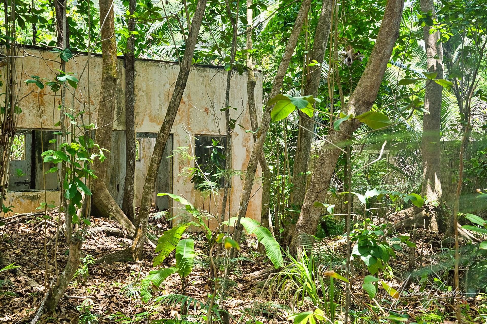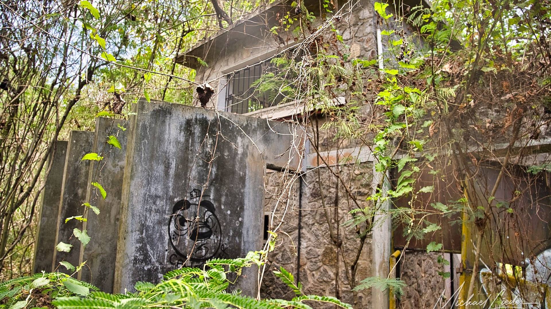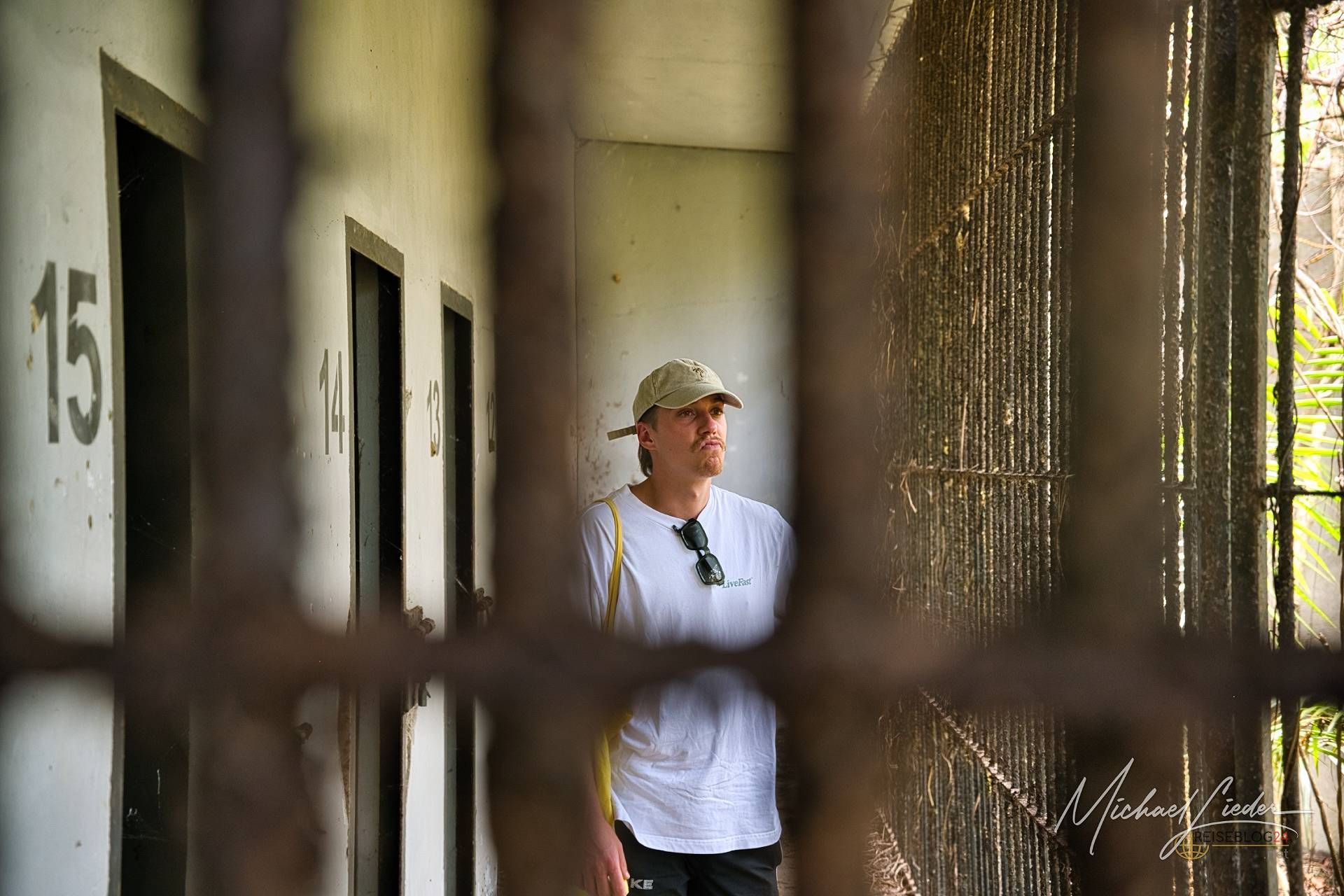 Es ist still. Nur das Zirpen der Zikaden, das leise Rauschen des Meeres in der Ferne und das gelegentliche Knacken trockener Äste. Zwischen den Bäumen ragen graue Betonwände hervor, von Lianen umschlungen, die sich um alte Gitterreste winden wie eine Naturversion von Stacheldraht. Ein kleiner Mungo huscht vorbei, schaut kurz irritiert – wahrscheinlich denkt er, wir seien die neuen Wärter – und verschwindet wieder ins Dickicht.