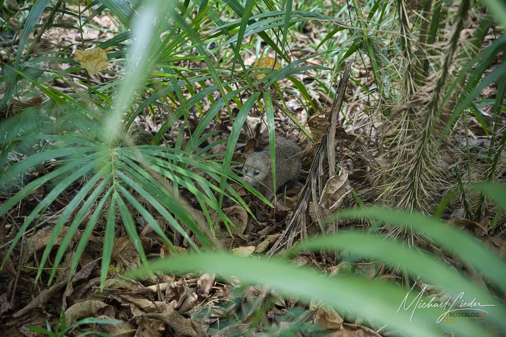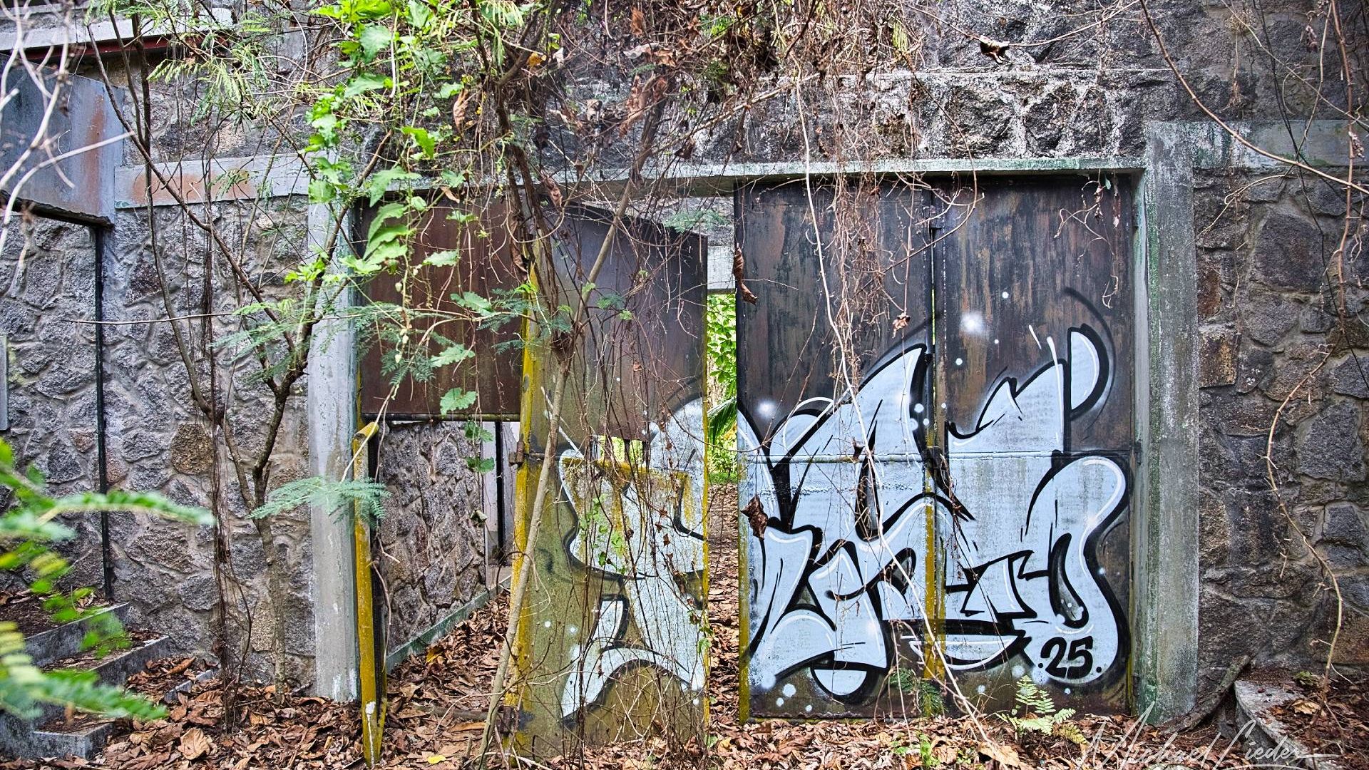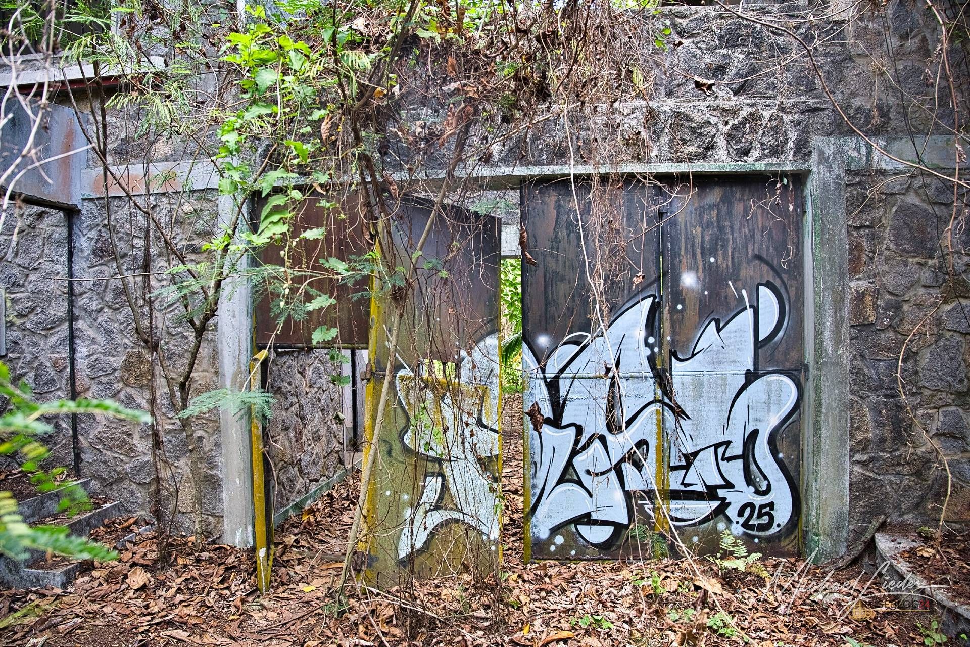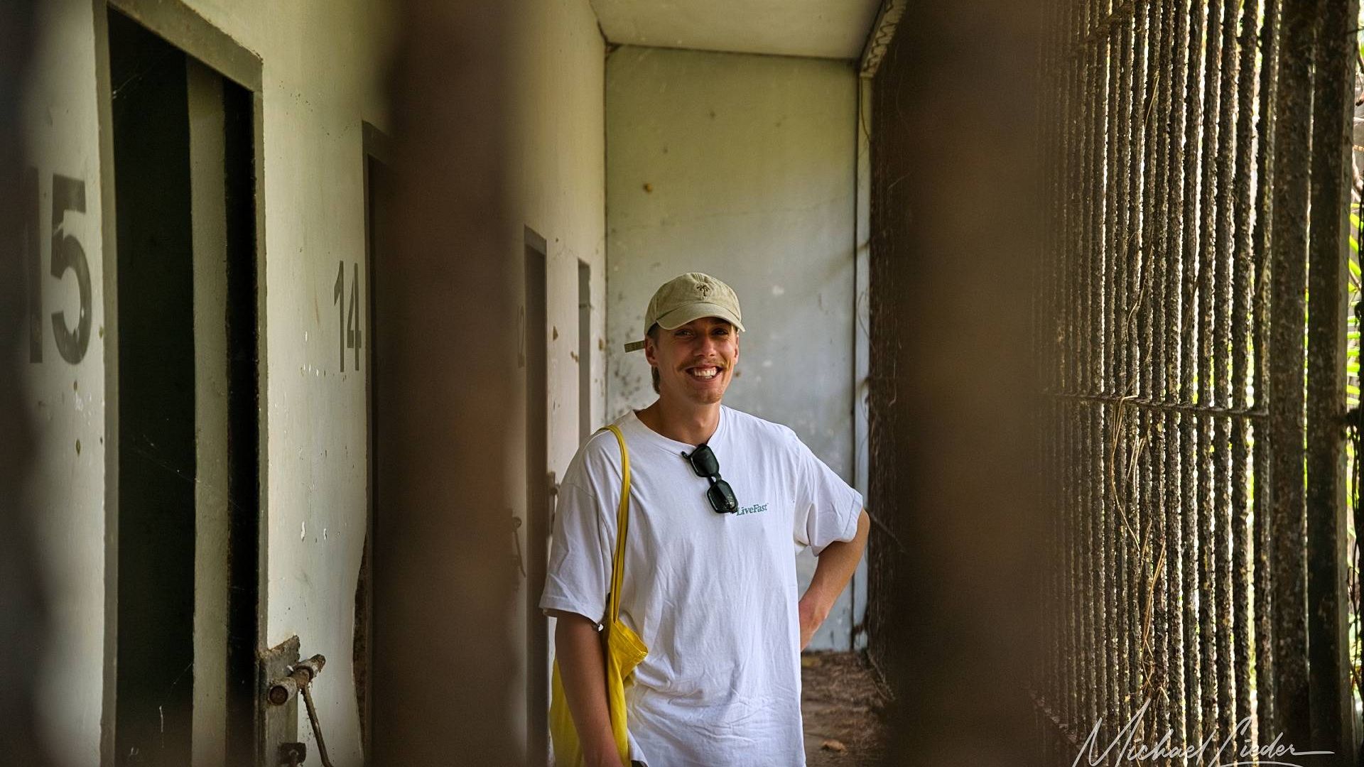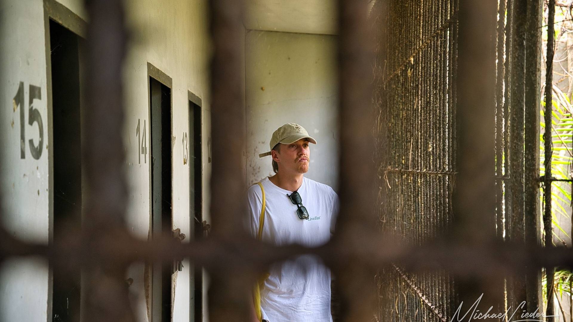 Es ist still. Nur das Zirpen der Zikaden, das leise Rauschen des Meeres in der Ferne und das gelegentliche Knacken trockener Äste. Zwischen den Bäumen ragen graue Betonwände hervor, von Lianen umschlungen, die sich um alte Gitterreste winden wie eine Naturversion von Stacheldraht. Ein kleiner Mungo huscht vorbei, schaut kurz irritiert – wahrscheinlich denkt er, wir seien die neuen Wärter – und verschwindet wieder ins Dickicht.