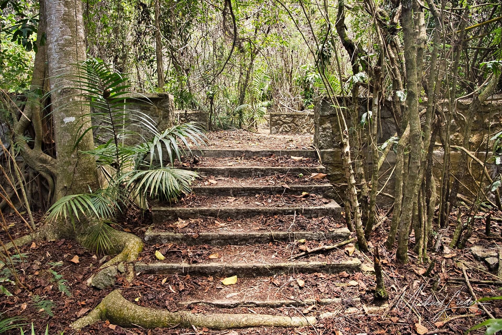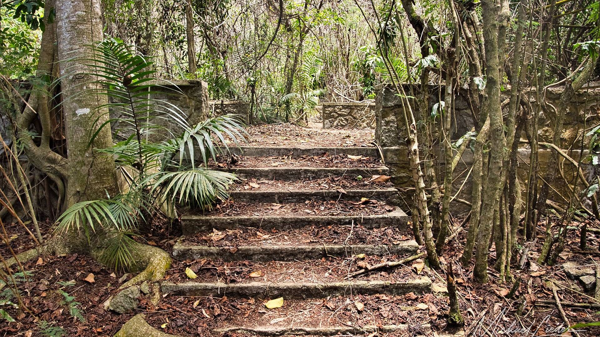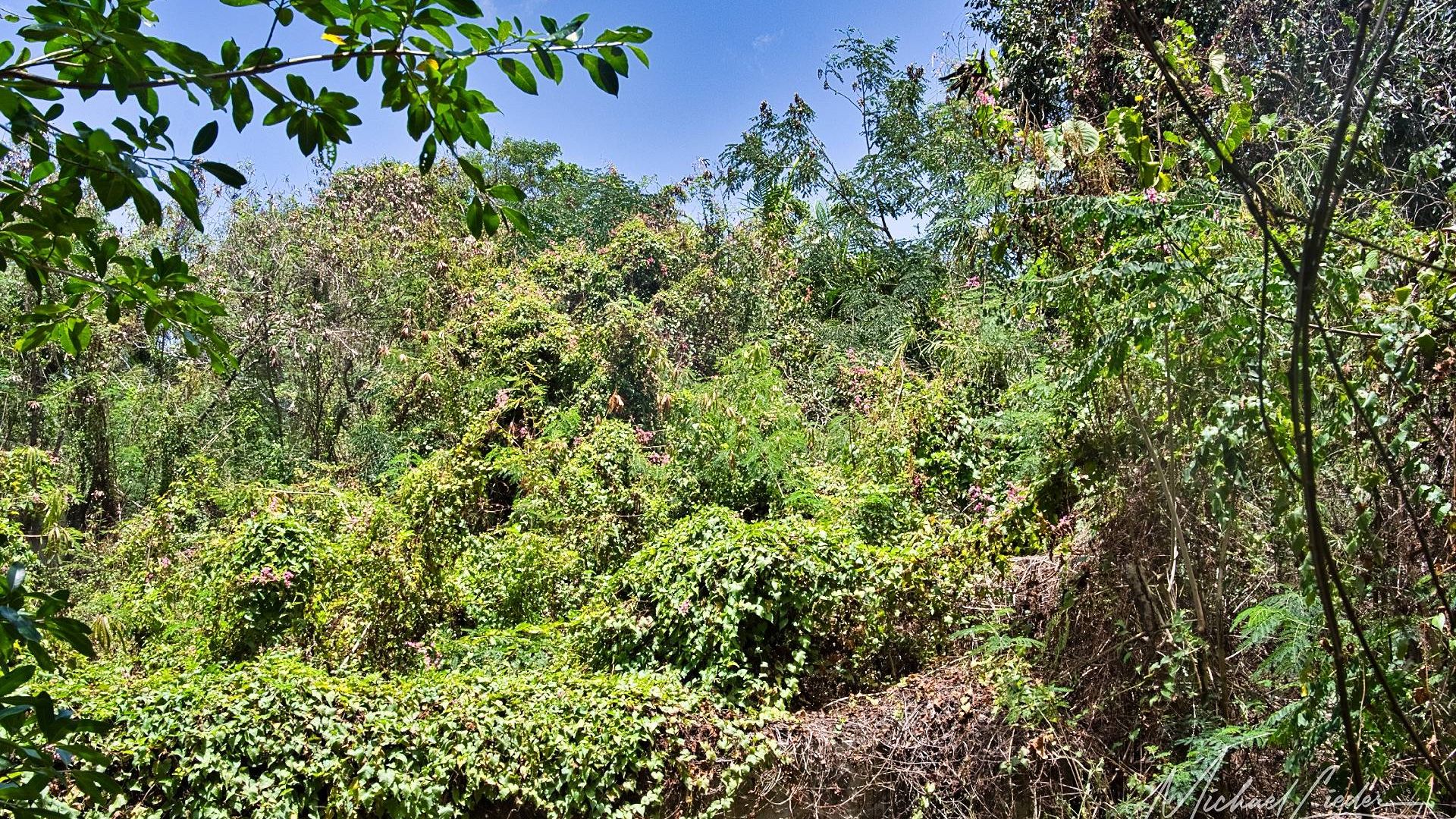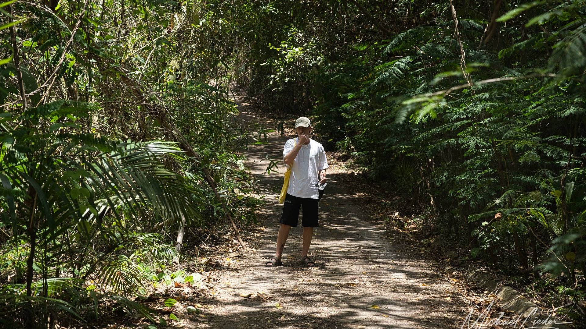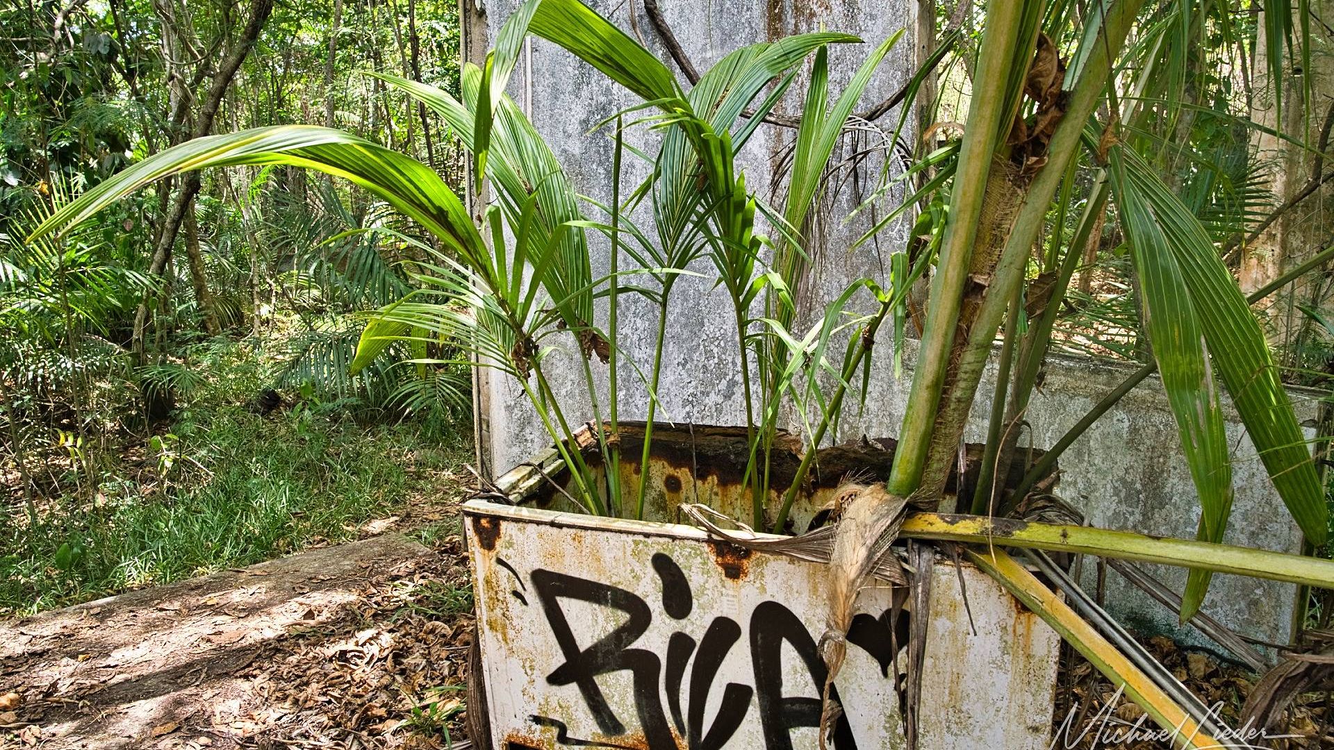 Es ist still. Nur das Zirpen der Zikaden, das leise Rauschen des Meeres in der Ferne und das gelegentliche Knacken trockener Äste. Zwischen den Bäumen ragen graue Betonwände hervor, von Lianen umschlungen, die sich um alte Gitterreste winden wie eine Naturversion von Stacheldraht. Ein kleiner Mungo huscht vorbei, schaut kurz irritiert – wahrscheinlich denkt er, wir seien die neuen Wärter – und verschwindet wieder ins Dickicht.