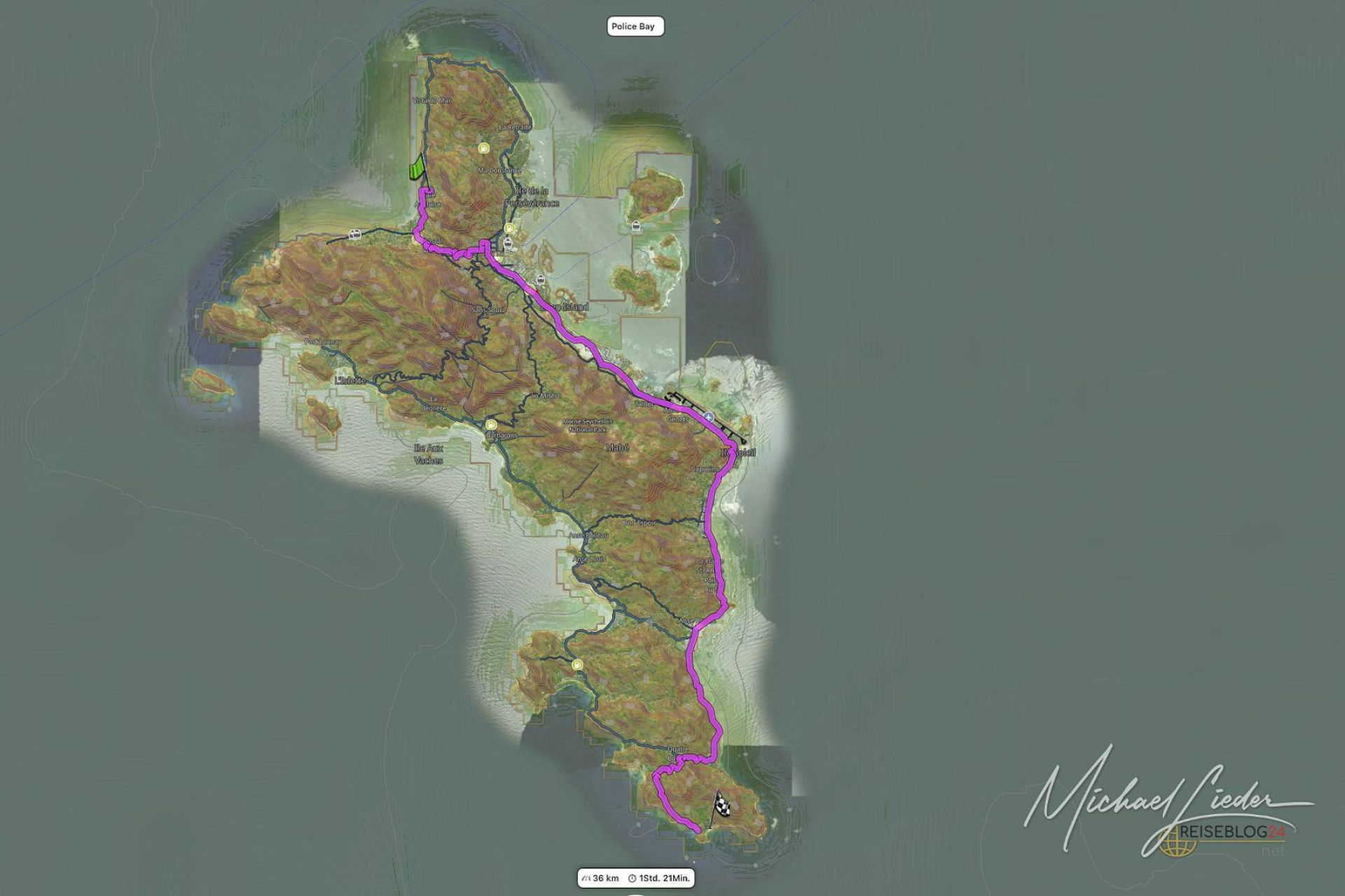Die Anfahrt von Beau Vallon über Victoria zieht sich mal wieder – für schlappe 36 Kilometer veranschlagt das Navi rund anderthalb Stunden. Und das ist, wie sich herausstellt, fast schon optimistisch. Der Weg dorthin ist schon ein kleines Abenteuer: Die Straße wird schmaler, bekommt tiefe Absätze am Straßenrand, der Asphalt bröckelt – und irgendwann hört selbst das Navi auf zu glauben, dass du weißt, was du tust. Stattdessen übernehmen Vögel, Wellenrauschen und gelegentlich ein misstrauischer Gecko die Navigation.