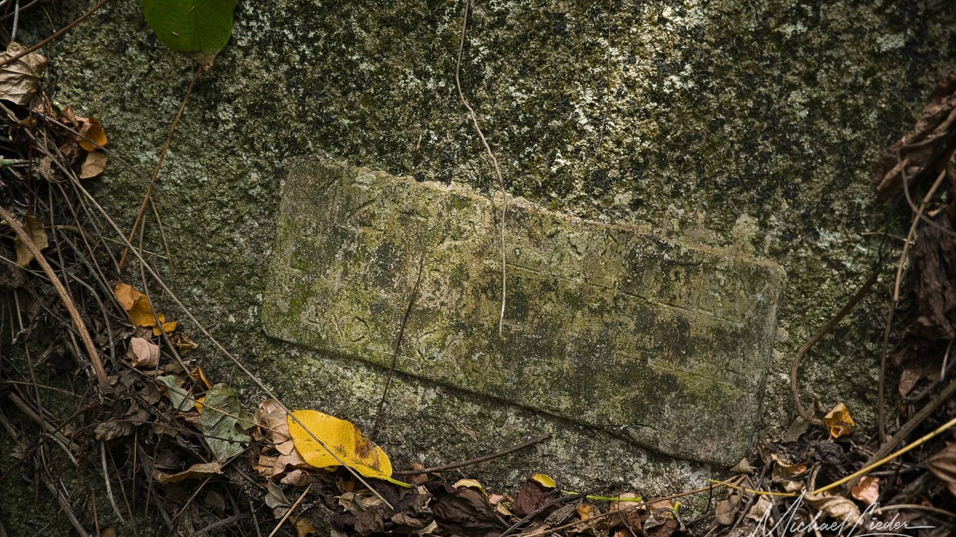 An einer Weggabelung (ich habe sie auf der Karte markiert) und dann mit unserem treuen Kwippy hinein in die grüne Wildnis, bis die Straße abrupt endet – als hätte sie selbst beschlossen, dass es hier genug sei. Keine Koordinaten, kein Schild, nur die Ahnung, dass irgendwo da draußen etwas Vergessenes liegt. Ein paar hundert Meter zurück entdecke ich links einen Felsen mit einer unscheinbaren Gedenktafel. Dahinter ein Trampelpfad – schmal, feucht, geheimnisvoll. Erst zögerlich, dann mit wachsender Abenteuerlust folgen wir ihm.