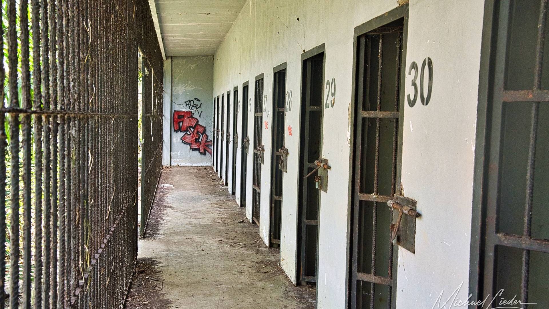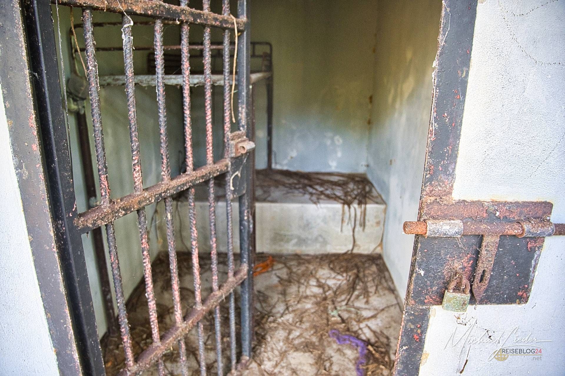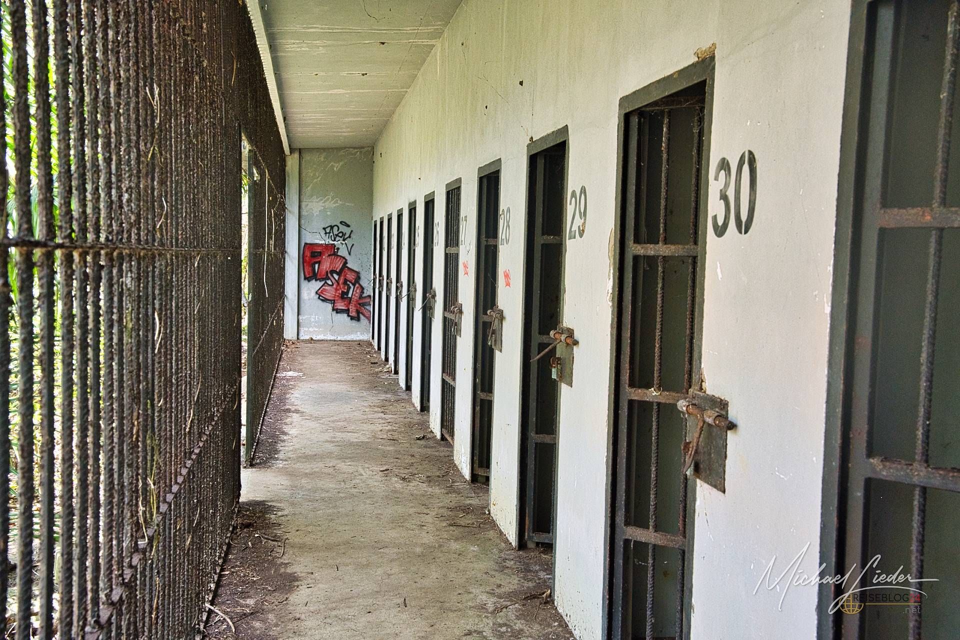 Das Gefängnis wurde in den 1960ern gebaut und nur wenige Jahre genutzt. Danach übernahm die Natur das Kommando. Heute erinnert es an einen tropischen Lost Place mit morbidem Charme und kolonialem Nachhall.