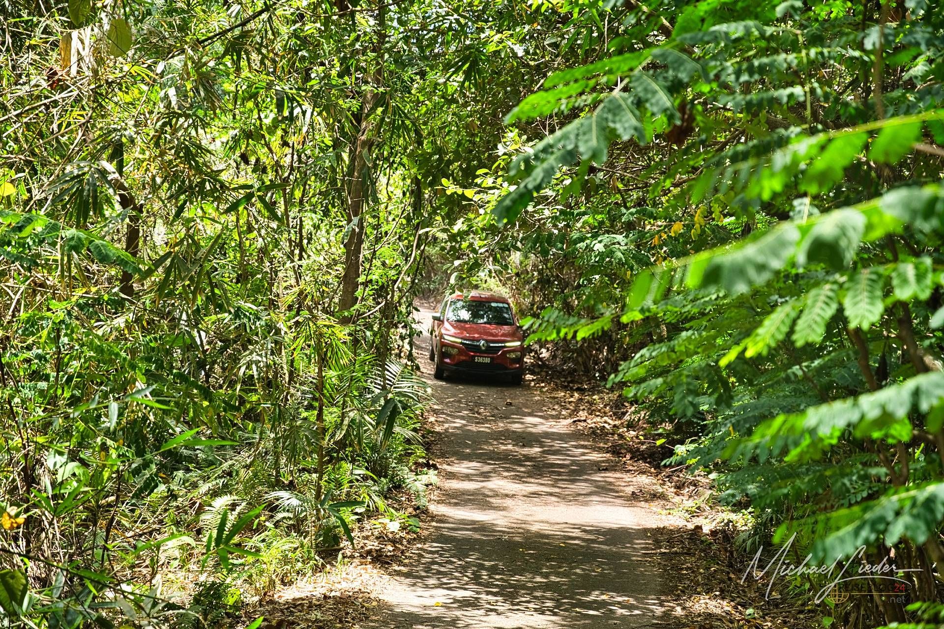 Also zurück zur Weggabelung (ja, die, die ich auf der Karte markiert habe – man weiß ja nie) und dann mit unserem tapferen, leicht klapprigen Kwippy hinein in die grüne Wildnis. Die Straße endet so abrupt, als hätte sie selbst beschlossen, dass Zivilisation ab hier überbewertet ist. Kein Schild, kein Zaun, nur ein Gefühl, dass irgendwo da draußen etwas Vergessenes liegt.