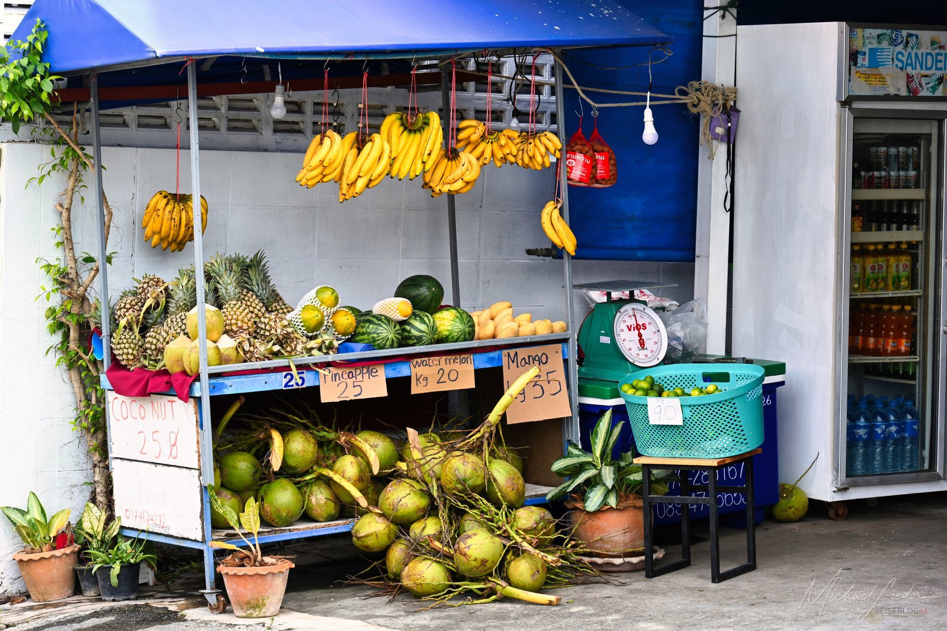 In der schwülen Hitze wird selbst Einkaufen zur kleinen Expedition. Der erste Stopp führt fast zwangsläufig zu 7‑Eleven – Thailands allgegenwärtigem Alleskönner. Gut sortiert wie ein Discounter, nur dichter, kälter und überraschend effizient. Alles Nötige ist da, plus die Option, sich das Mittagessen direkt frisch zubereiten zu lassen. Praktisch, schnell und erstaunlich gut. Also doch ein bisschen wie bei uns – nur mit Klimaanlage, warmem Essen und deutlich weniger Entscheidungsstress an der Kasse.