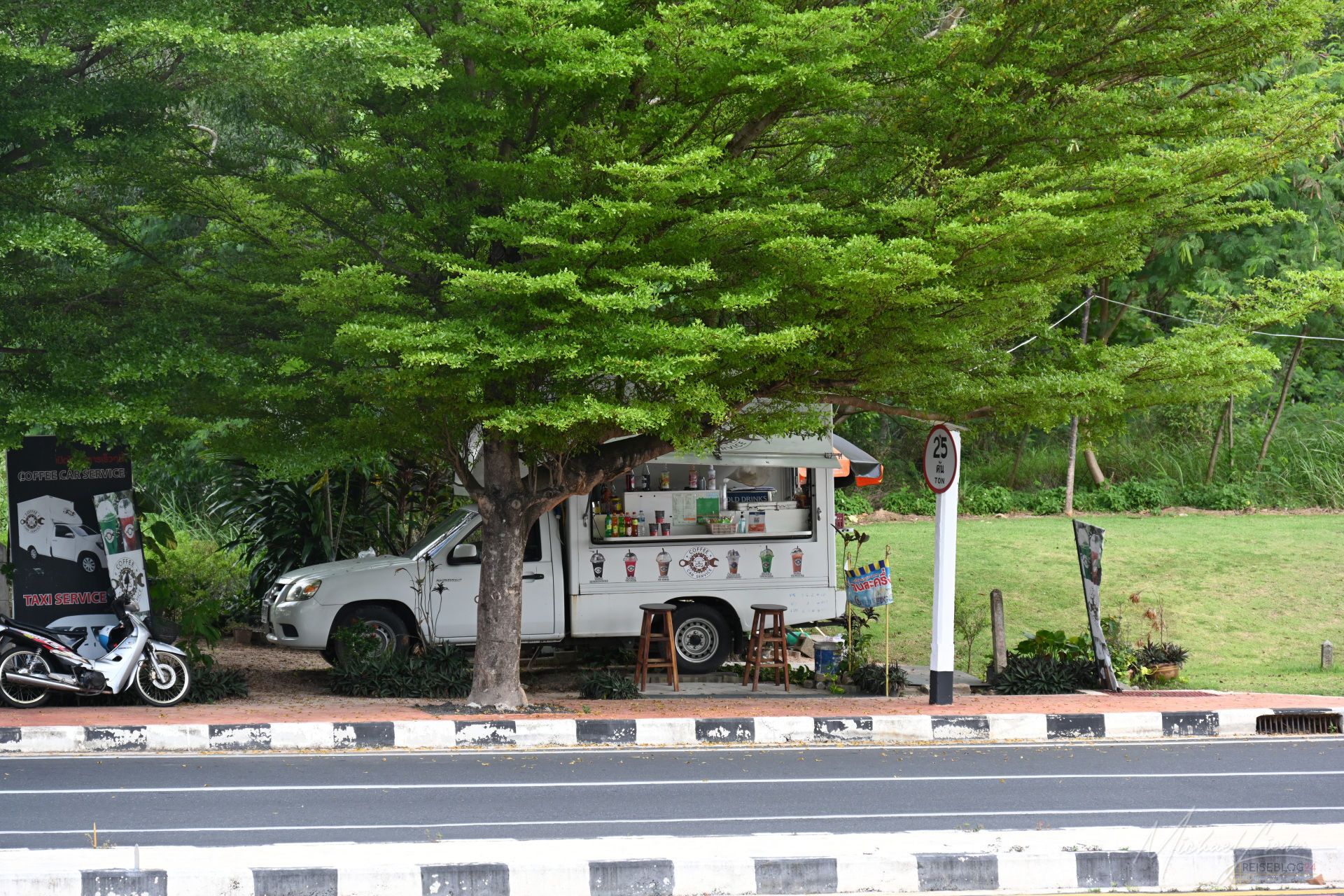 Da der Jetlag sich heute endlich geschlagen gegeben hat und ich mir den Luxus langen Schlafens gegönnt habe, startet mein Tag draußen erst am frühen Nachmittag. Ein paar kleine Besorgungen, ein Spaziergang durch die Straßen und Sträßchen von Chao Fah, kein Plan, kein Ziel. Einfach schauen, beobachten, aufnehmen. Den Alltag hier auf sich wirken lassen, ohne ihn gleich verstehen zu wollen.