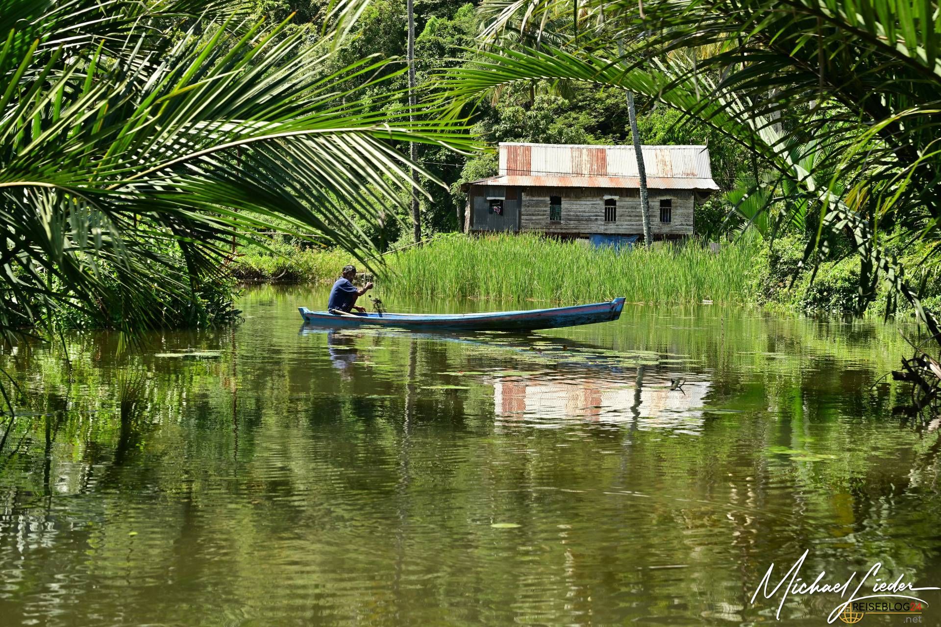 Plötzlich huscht eine riesige Echse ins Wasser – so schnell, dass wir sie nur aus dem Augenwinkel wahrnehmen. In den Reisfeldern sind Reiherartige Vögel mit dem Fischfang beschäftigt, ihre Bewegungen geschmeidig und konzentriert. Sie lassen sich nicht stören – es sei denn, wir kommen ihnen zu nahe.