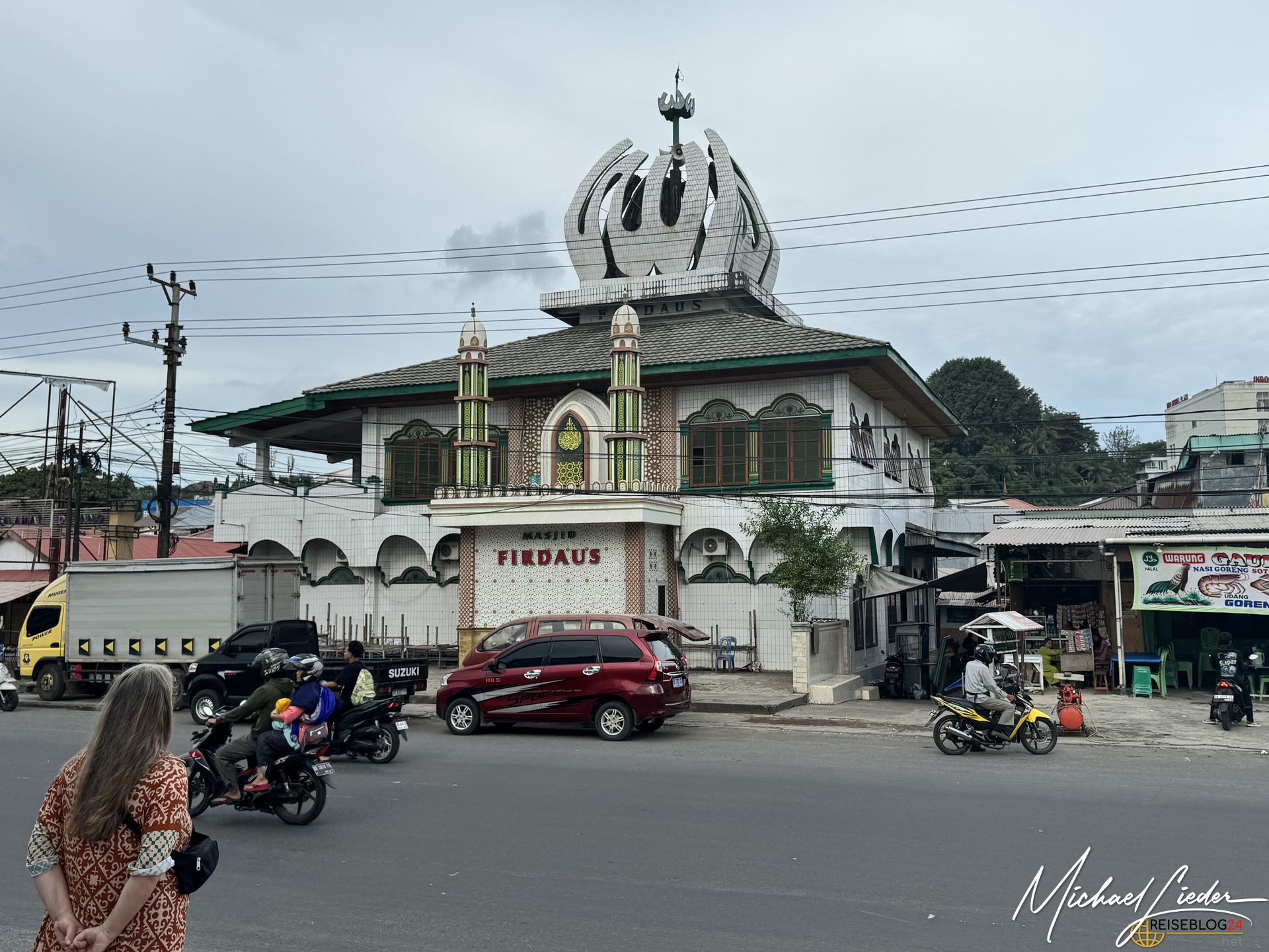 Manado, die lebendige Hauptstadt Nord-Sulawesis, zählt knapp eine halbe Million Einwohner und liegt eingerahmt zwischen grünen Bergen und dem offenen Meer. In den Randbezirken kämpft die Natur noch tapfer gegen Beton und Blech, in der Innenstadt hat der Asphalt längst gewonnen. Viel Verkehr, viel Bewegung, viel Alltag. Und doch ist Manado mehr als nur wirtschaftliches Zentrum – es ist ein Ort, der still und unaufgeregt zeigt, wie friedliches Zusammenleben aussehen kann.