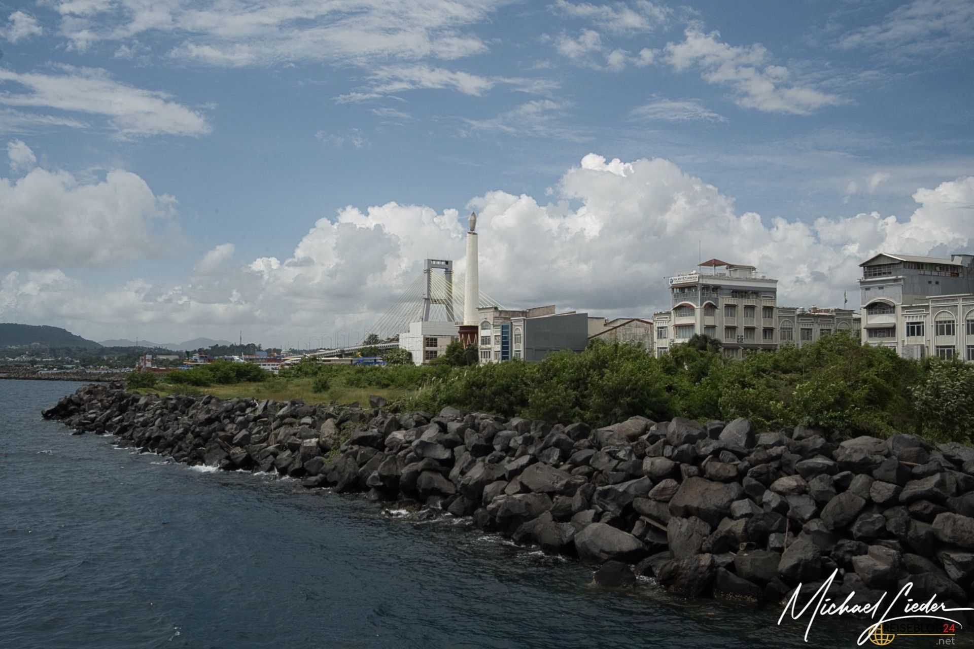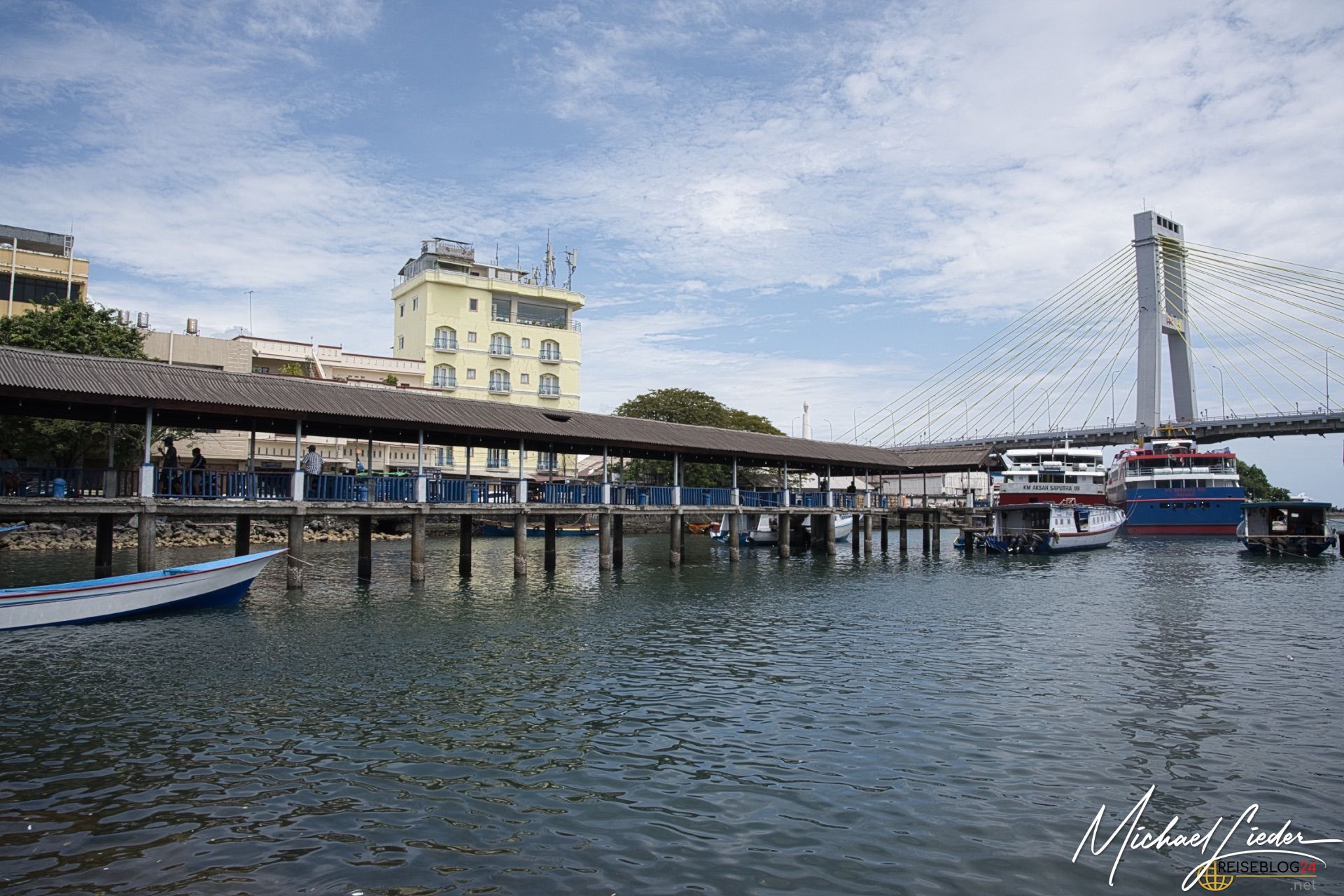 Je näher ich dem Meer komme, desto dichter wird das Leben. Die Einkaufsstraßen ziehen sich entlang der Küste bis hinunter zum Hafen. Riesige, klimatisierte Malls wechseln sich mit kleinen Läden und improvisierten Marktständen ab. Es riecht nach Essen, nach Gewürzen, nach heißem Asphalt. Zwischen Streetfood, Alltagskram und kuriosen Souvenirs könnte man Stunden verlieren – und merkt es erst, wenn die Kleidung endgültig durch ist. Was aber wirklich hängen bleibt, sind die Menschen. Immer wieder ein fröhliches „Hello Mister!“, Hände, die mir entgegengestreckt werden, Kinder, die winken und ein High Five einfordern. Jugendliche, die ein Selfie wollen. Polizisten übrigens auch. Ich falle auf, ja – aber auf eine warme, ehrliche Art. Nicht neugierig aus Distanz, sondern offen, direkt, herzlich.