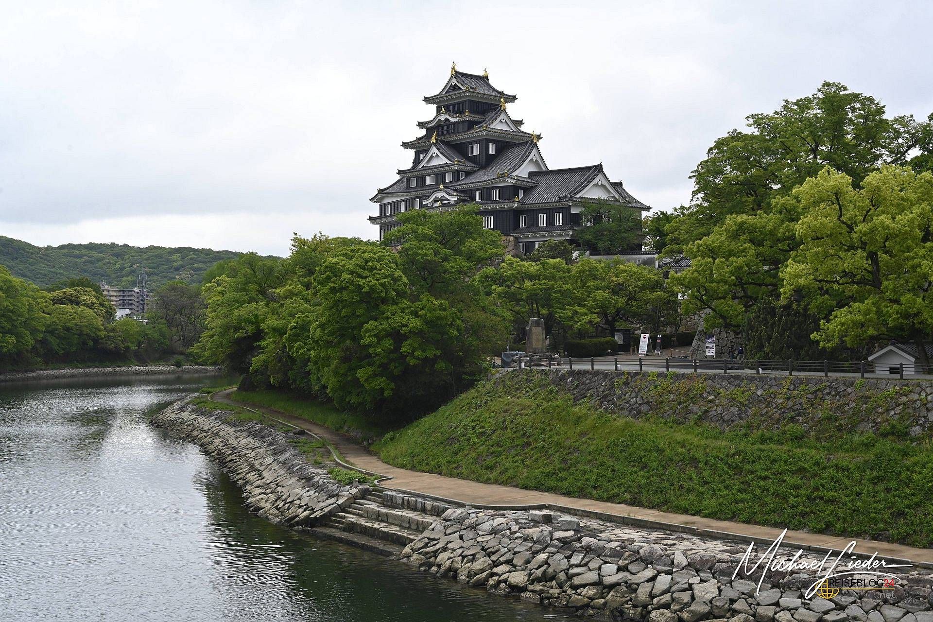Okayama Castle wird wegen ihrer dunklen Fassade auch „Krähenburg“ genannt – ähnlich wie Matsumoto Castle. Anders als viele Burgen in Japan wurde sie nach dem Krieg wieder aufgebaut, aber mit viel Liebe zum historischen Detail.