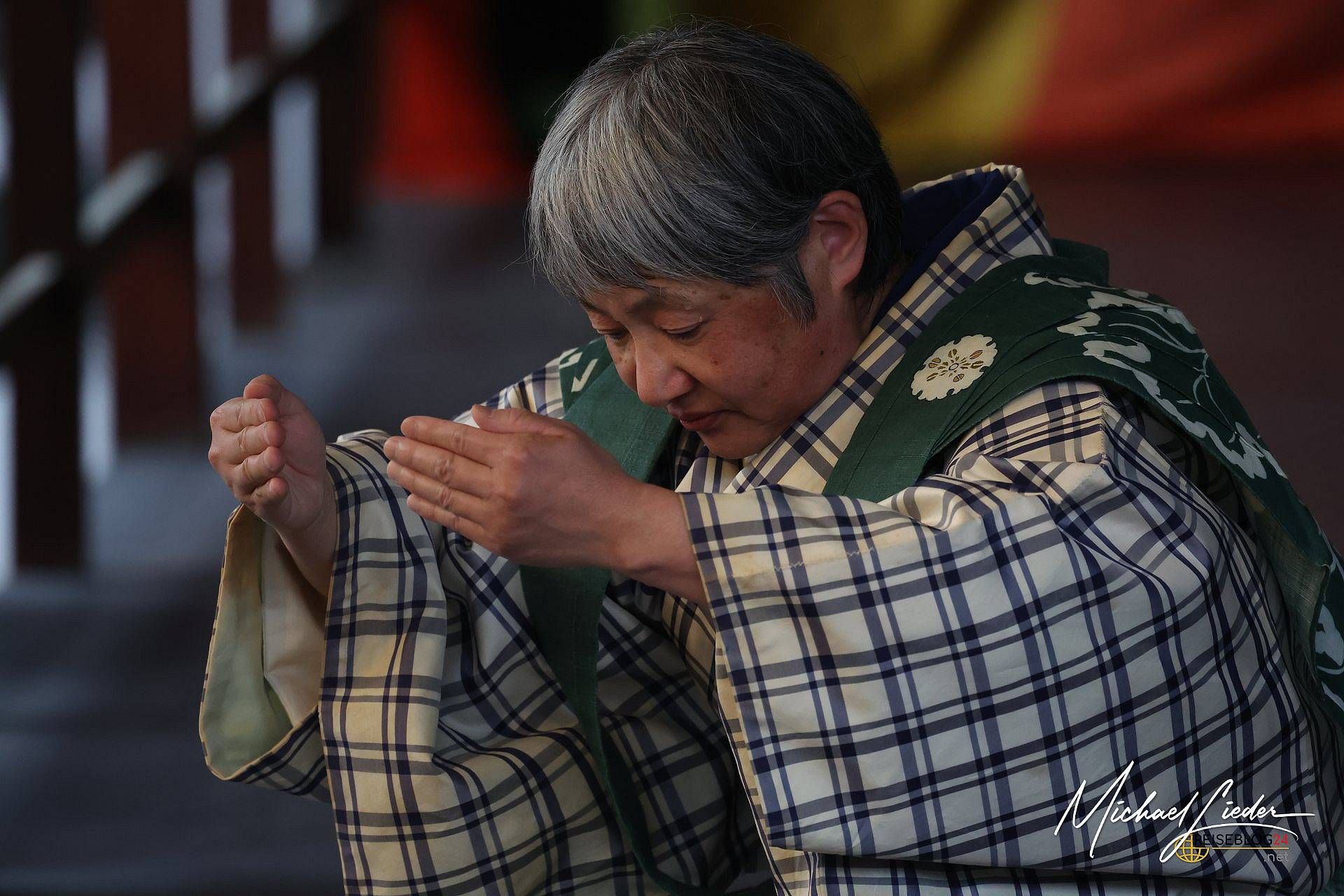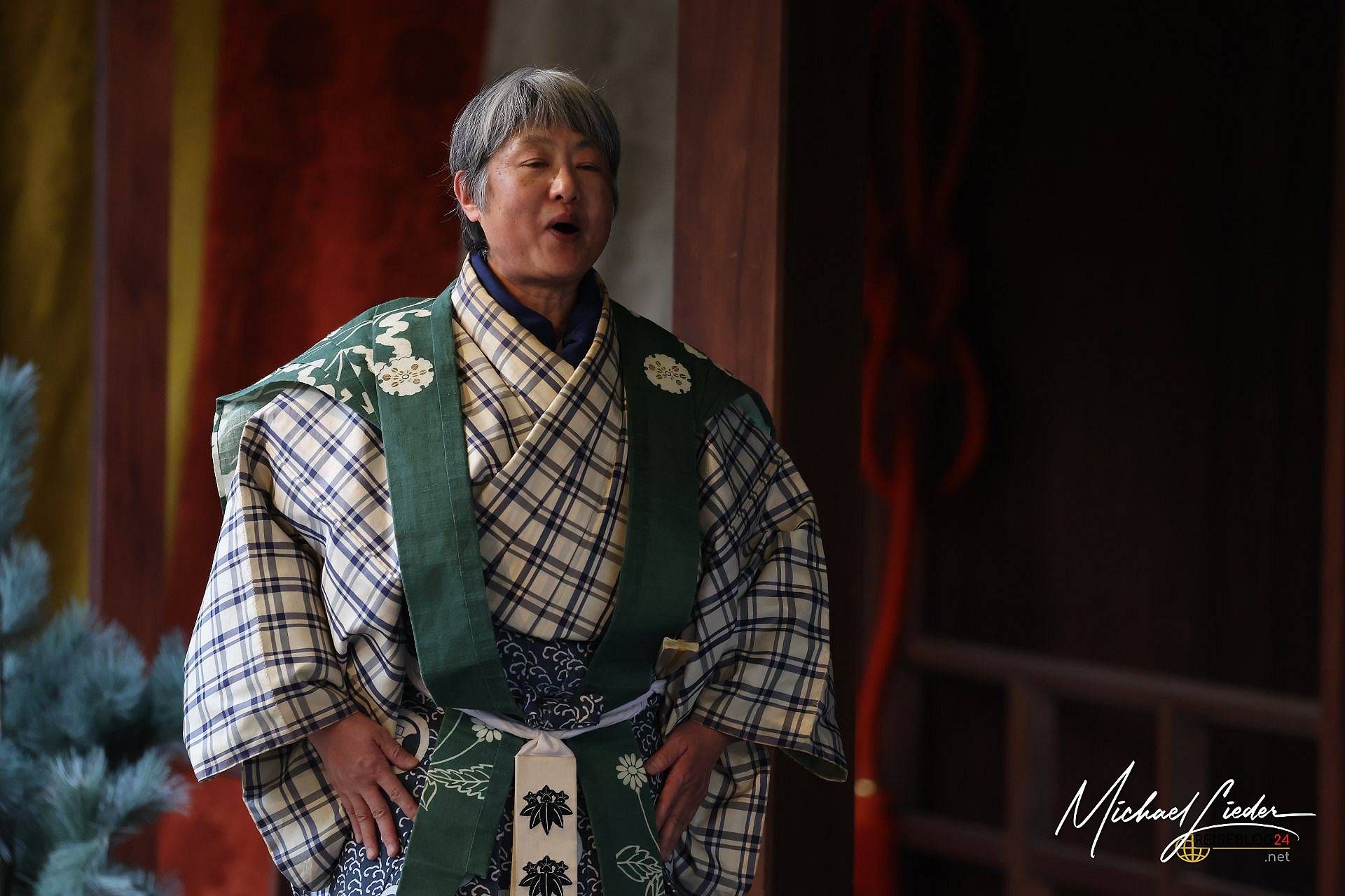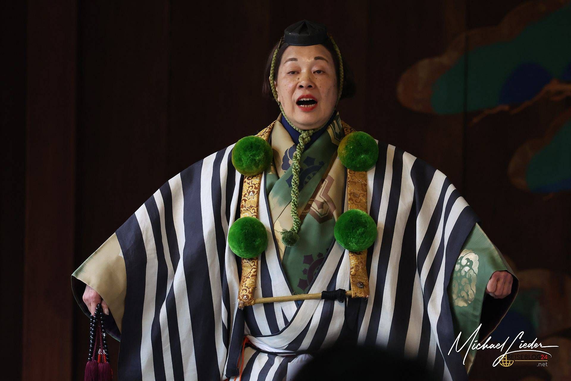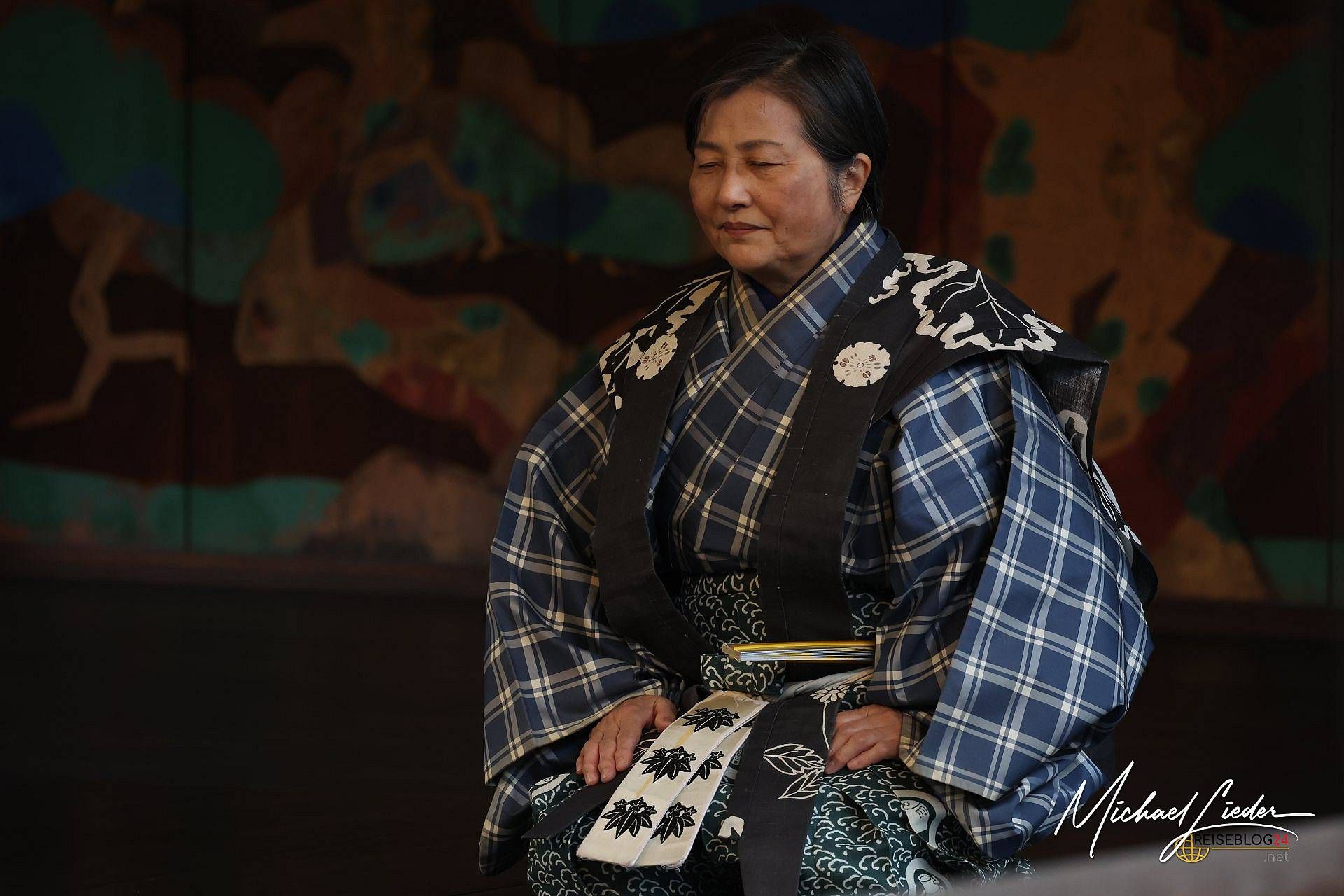 Und dann war da noch das kleine, überdachte Kabuki-Theater am Rand des Gartens – ein echtes Kuriosum. Wir hatten das Glück, eine morgendliche Probe von Laiendarstellern zu erleben. Voller Hingabe warfen sie sich in ihre Rollen, gestikulierten wild, schrien dramatisch – während am Teich ein Reiher stoisch das Schauspiel ignorierte. Es war ein Moment zwischen skurril und zauberhaft, wie ihn nur Japan bieten kann.