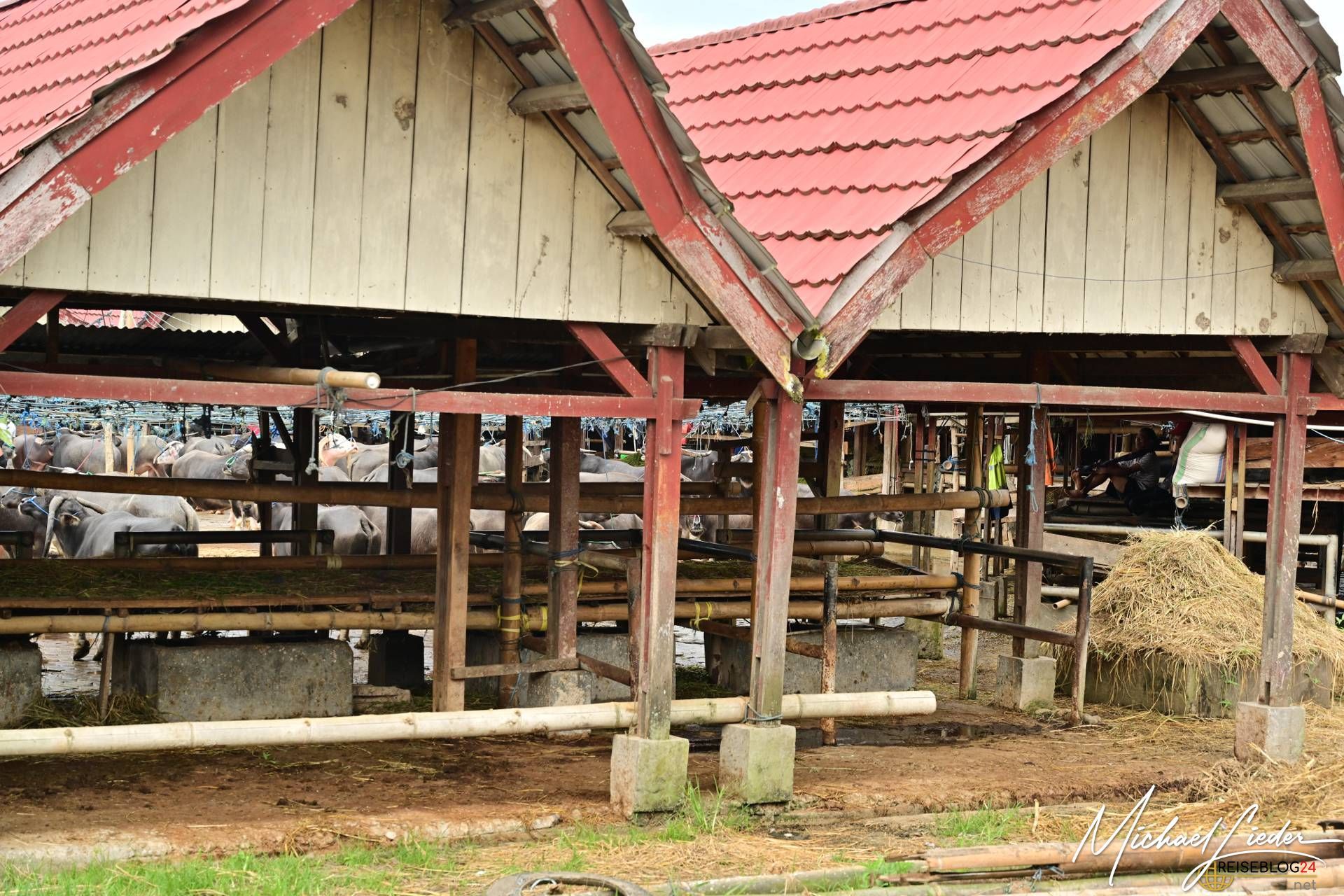 Jeden Dienstag und Sonntag erwacht dieser Platz zum Leben, wenn Händler und Viehzüchter aus der gesamten Region zusammenkommen, um Büffel, Schweine und andere Tiere zu kaufen und zu verkaufen.