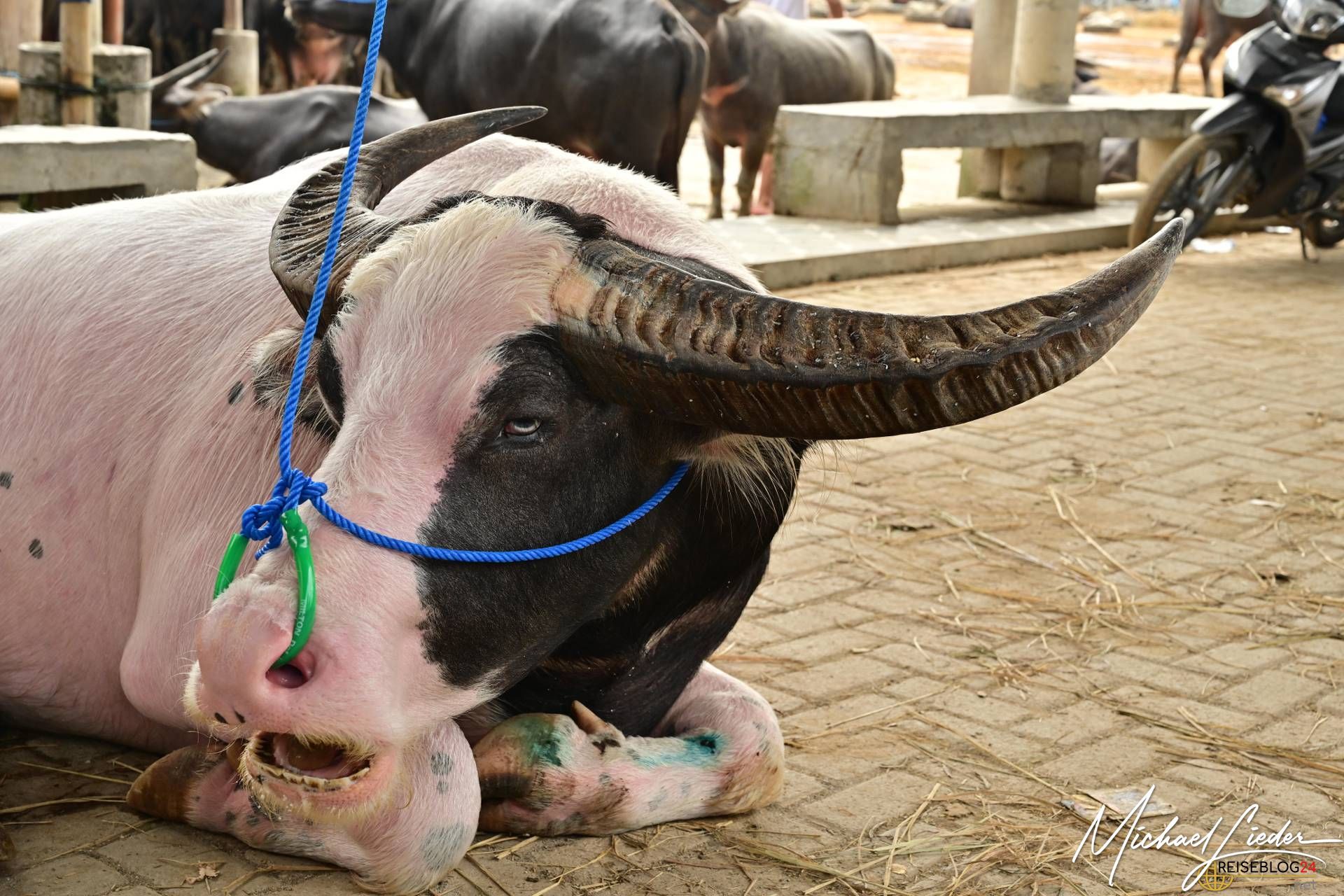 Je exotischer ein Büffel aussieht, je größer das Horn ausfällt oder je mehr Masse der Wasserbüffel auf die Waage bringt, umso wertvoller sind diese Tiere. Es ist wirklich interessant und lohnenswert sich das Treiben im Pasar Bolu anzusehen und auf sich wirken zu lassen.