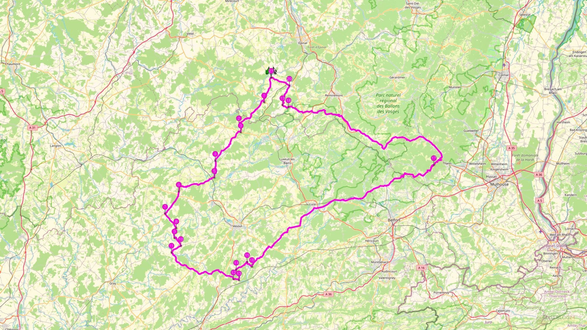 Da habe ich es doch einfacher, mit meinem Tiger merke ich doch schnell, dass der Pass weder besonders lang noch schwierig zu fahren ist. Wir Motorradfahrer haben auf der kurvenreichen Strecke dennoch Spaß: Es ist kurvig auf das auf weniger als mittelmäßigem Straßenbelag. Ein Halt lohnt sich am Scheitel an der Auberge de la Fourmi. Neben lukullischen Stärkungen beeindrucken vorwiegend die traumhaften Aussichten auf die Ausläufer des Elsass und des südlich davon liegenden Burgunds. Wer danach noch Lust auf weitere Kurven hat, nutzt den Col du Hundsruck als Verbindungspass zu dem nordwestlich gelegenen Ballon d Alsace mit der Routes des Crêtes und dem Grand Ballon.