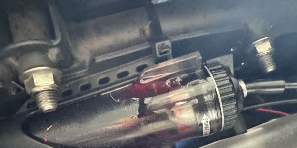 Das vSystem von Scottoiler ist ein weitverbreitetes Modell, das durch seine einfache Funktionsweise und seine Zuverlässigkeit besticht. Dieses System wird an den Unterdruck des Motors angeschlossen. Diese Verbindung ist entscheidend, da sie das Ein- und Ausschalten des Systems automatisch regelt: Das vSystem arbeitet nur dann, wenn der Motor läuft. Wenn der Motor startet, erzeugt er einen Unterdruck, der eine Membran im Scottoiler anhebt. Diese Membran öffnet ein Ventil, durch das das Öl aus dem Reservoir in den Förderschlauch fließt. Dank der Schwerkraft gelangt das Öl schließlich über das hintere Kettenrad direkt auf die Kette, wo es die nötige Schmierung sicherstellt.